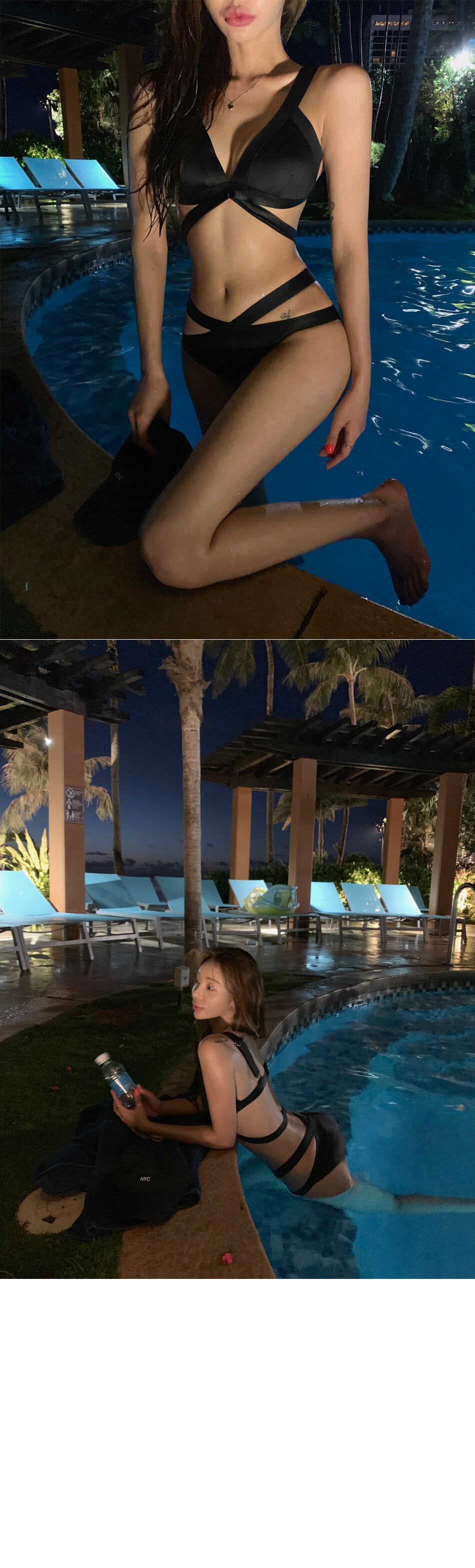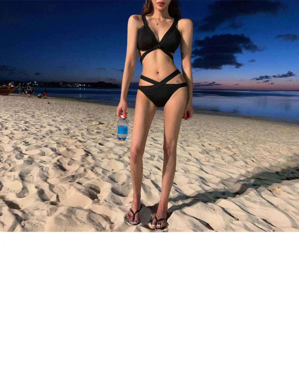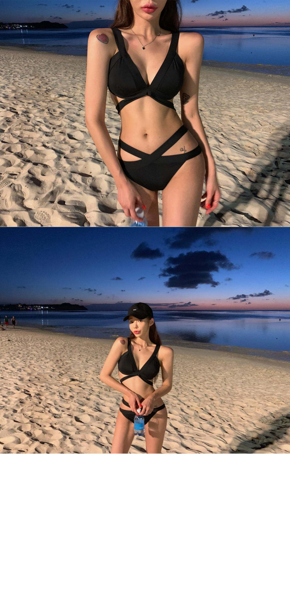 Kebo (KEBO) new swimsuit female Internet celebrity vacation sexy bikini two-piece set black strap art test swimsuit black L