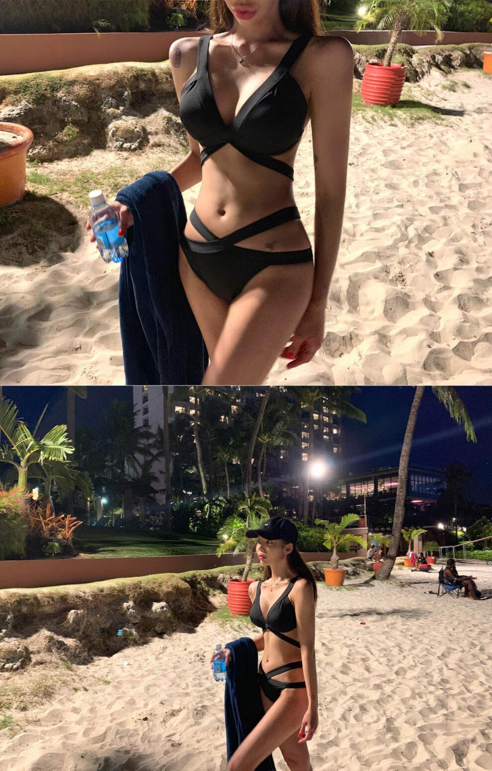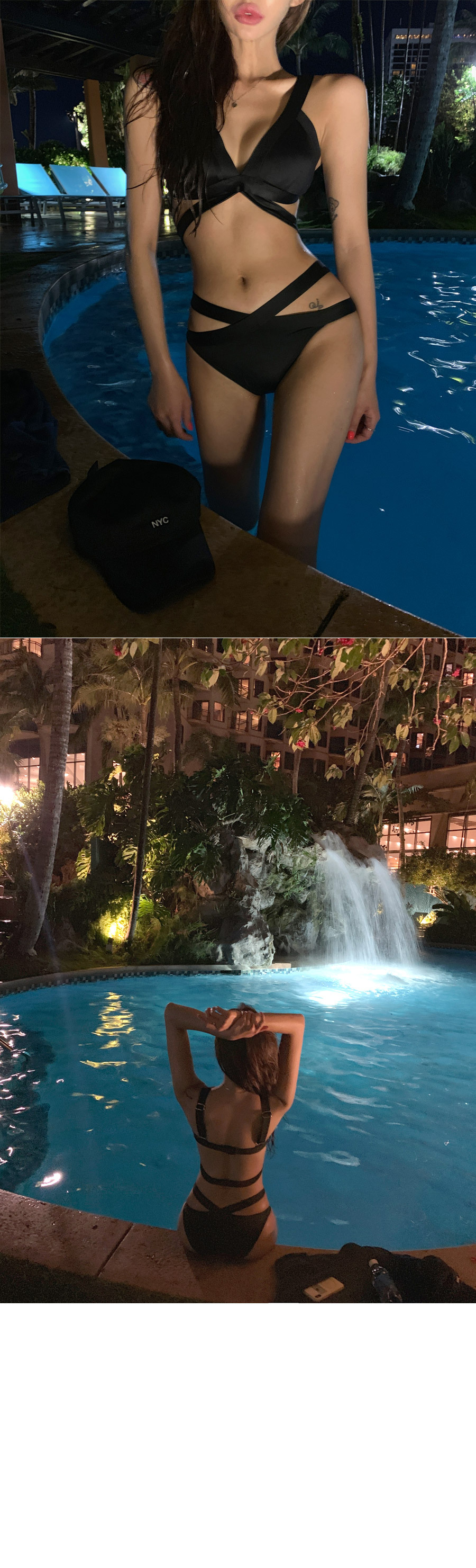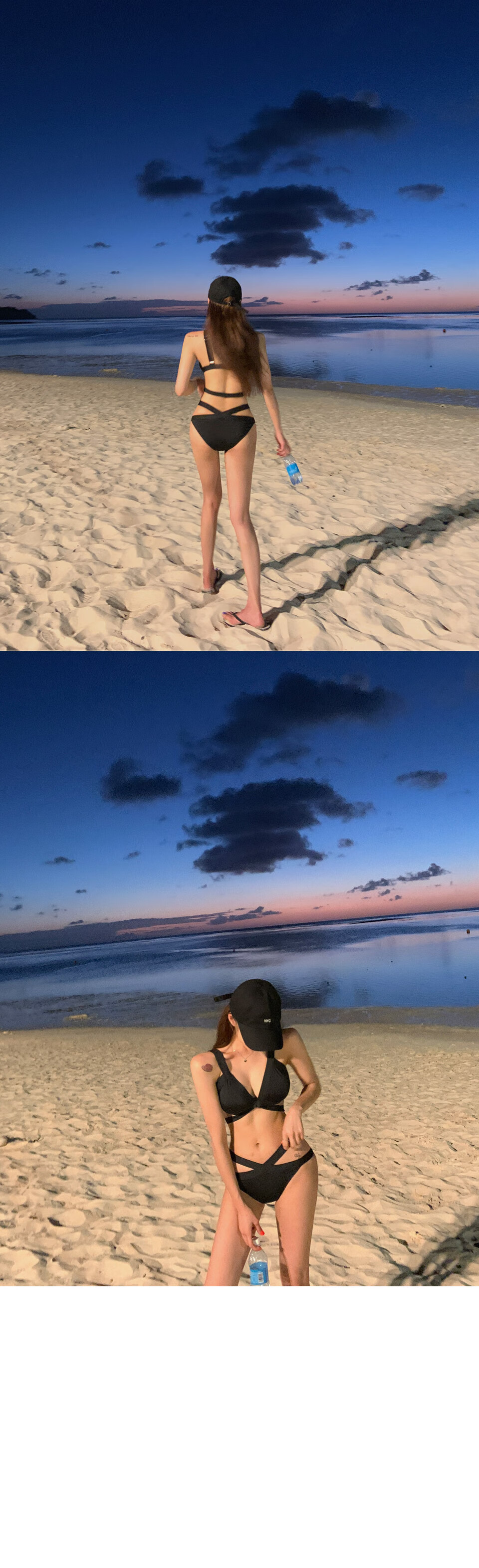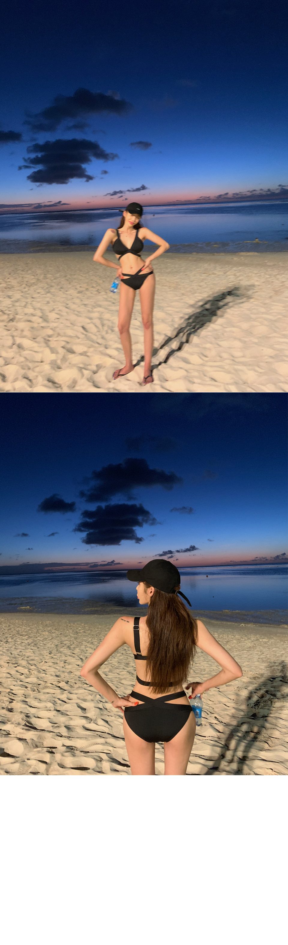 Kebo (KEBO) new swimsuit female Internet celebrity vacation sexy bikini two-piece set black strap art test swimsuit black L
