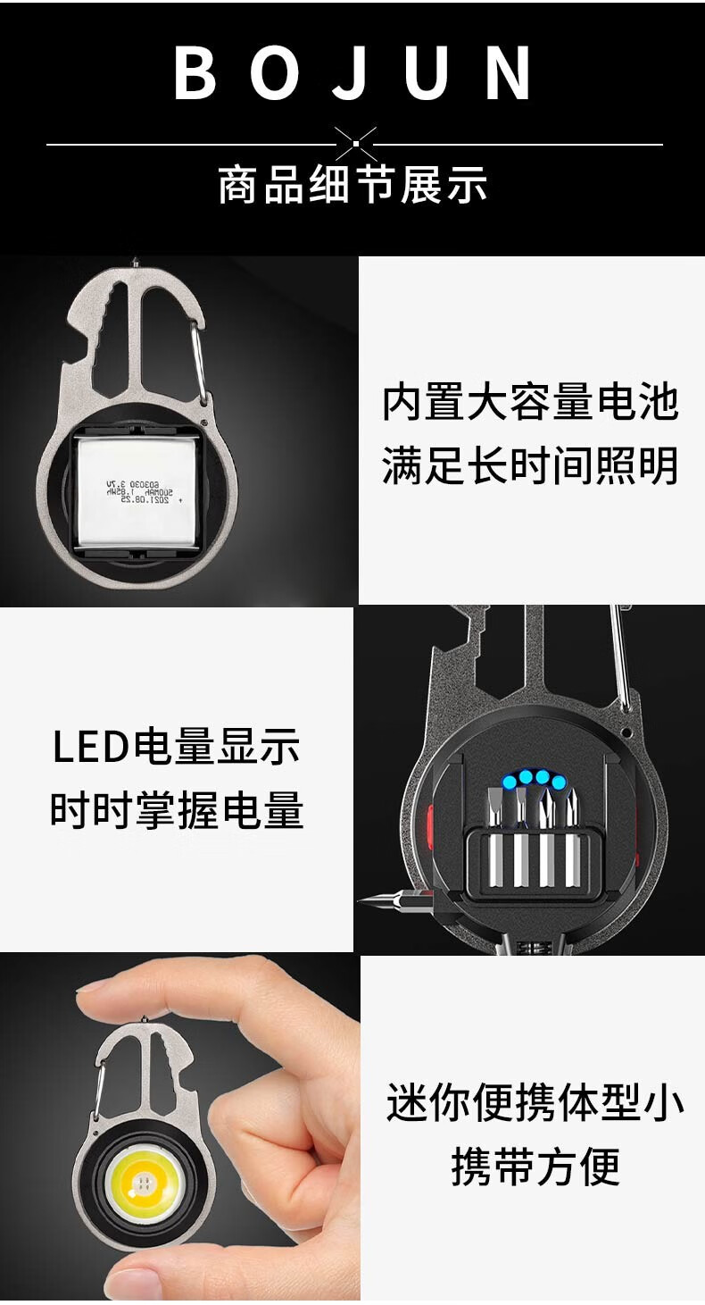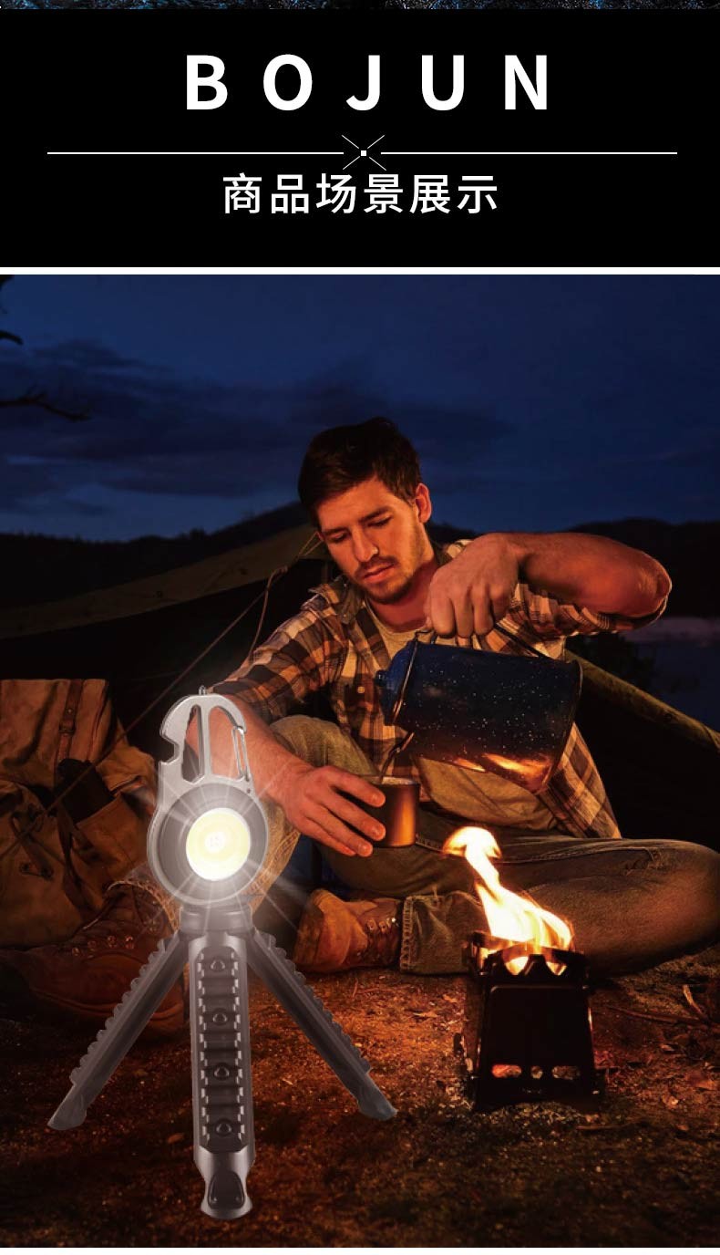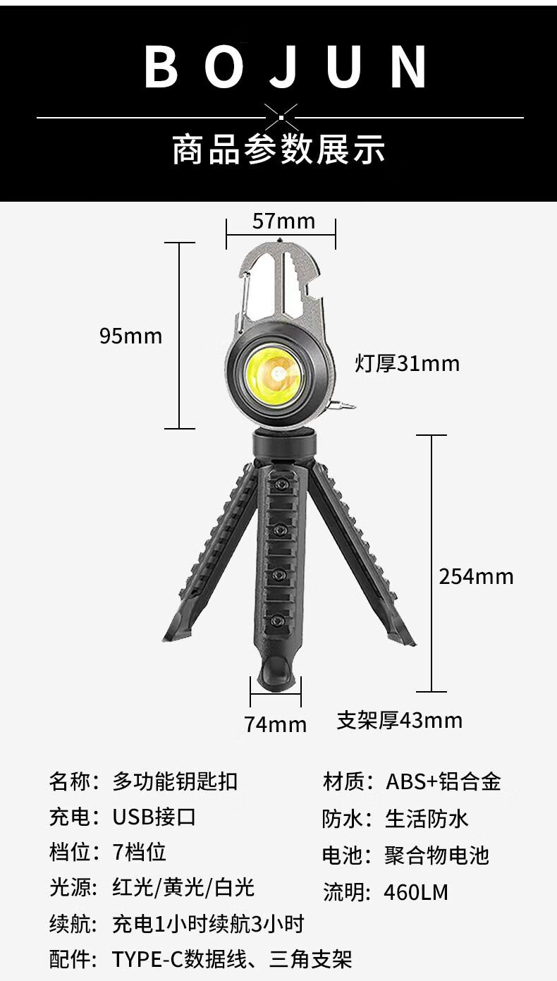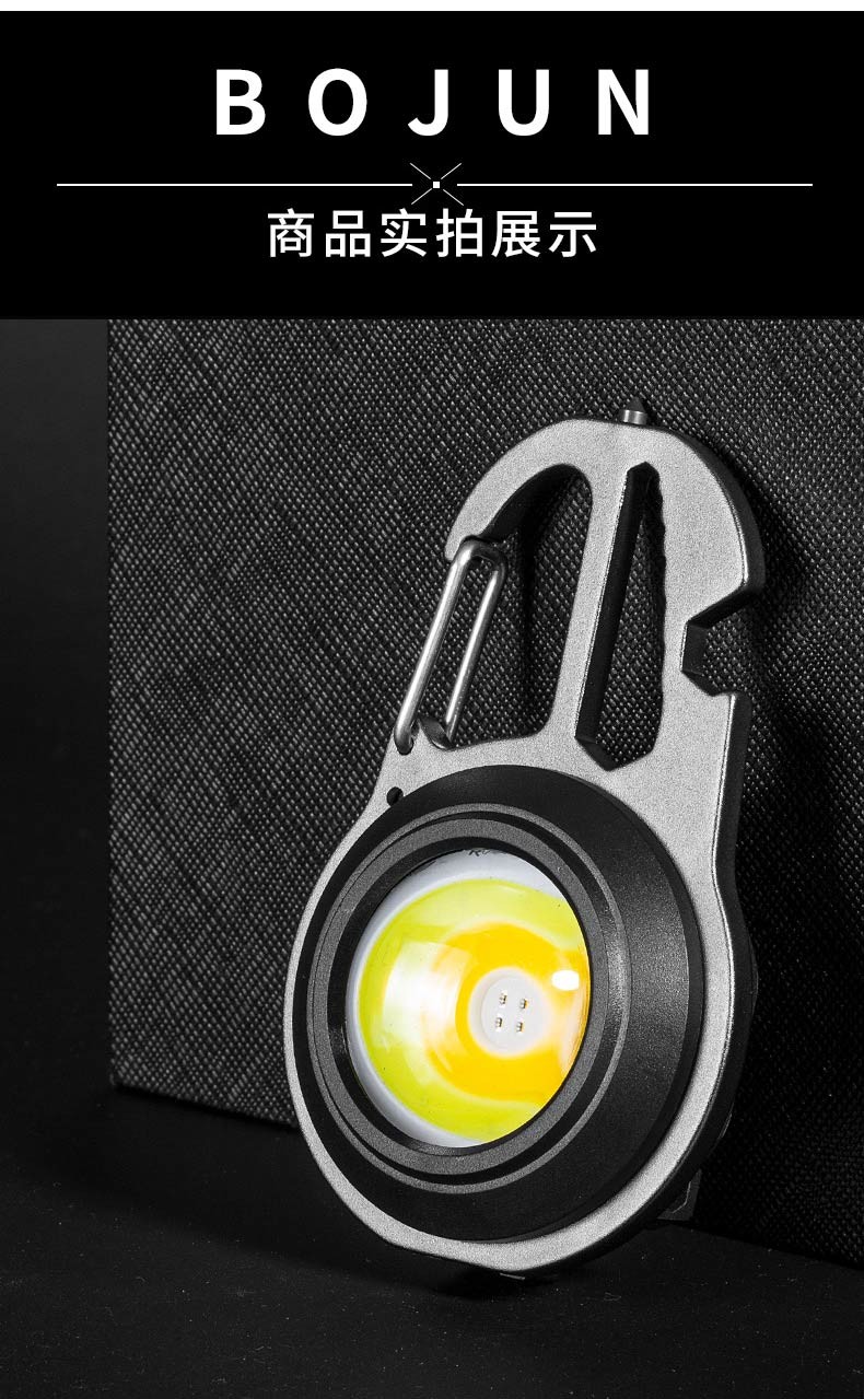 Bojun multifunctional camping light keychain flashlight portable light mini rechargeable outdoor high-bright emergency portable light cob wick + 7-level light source