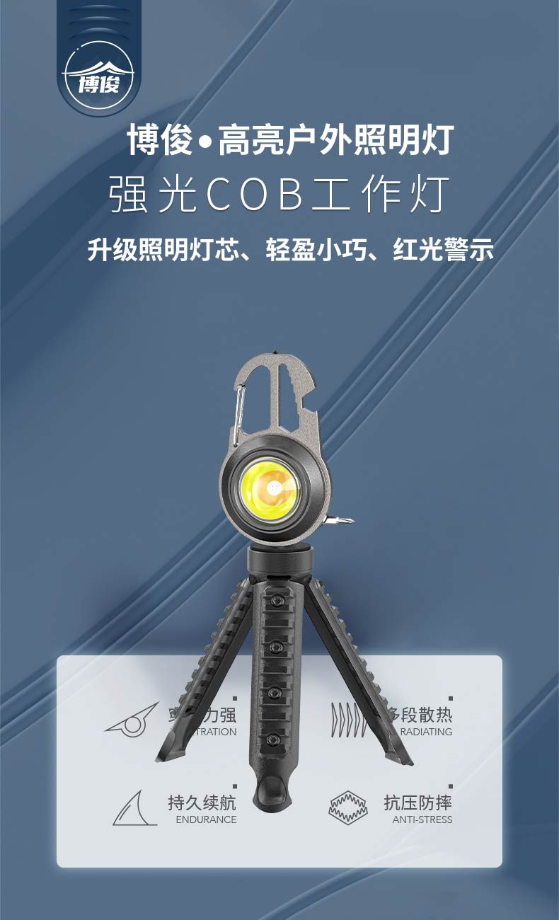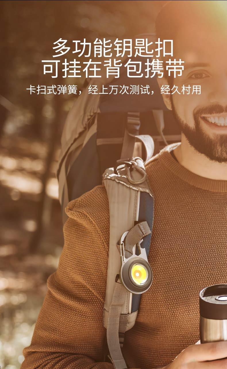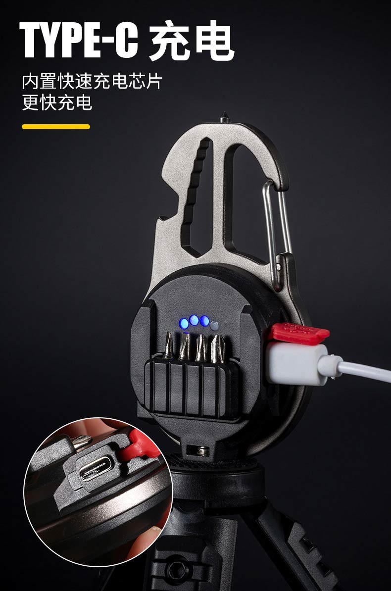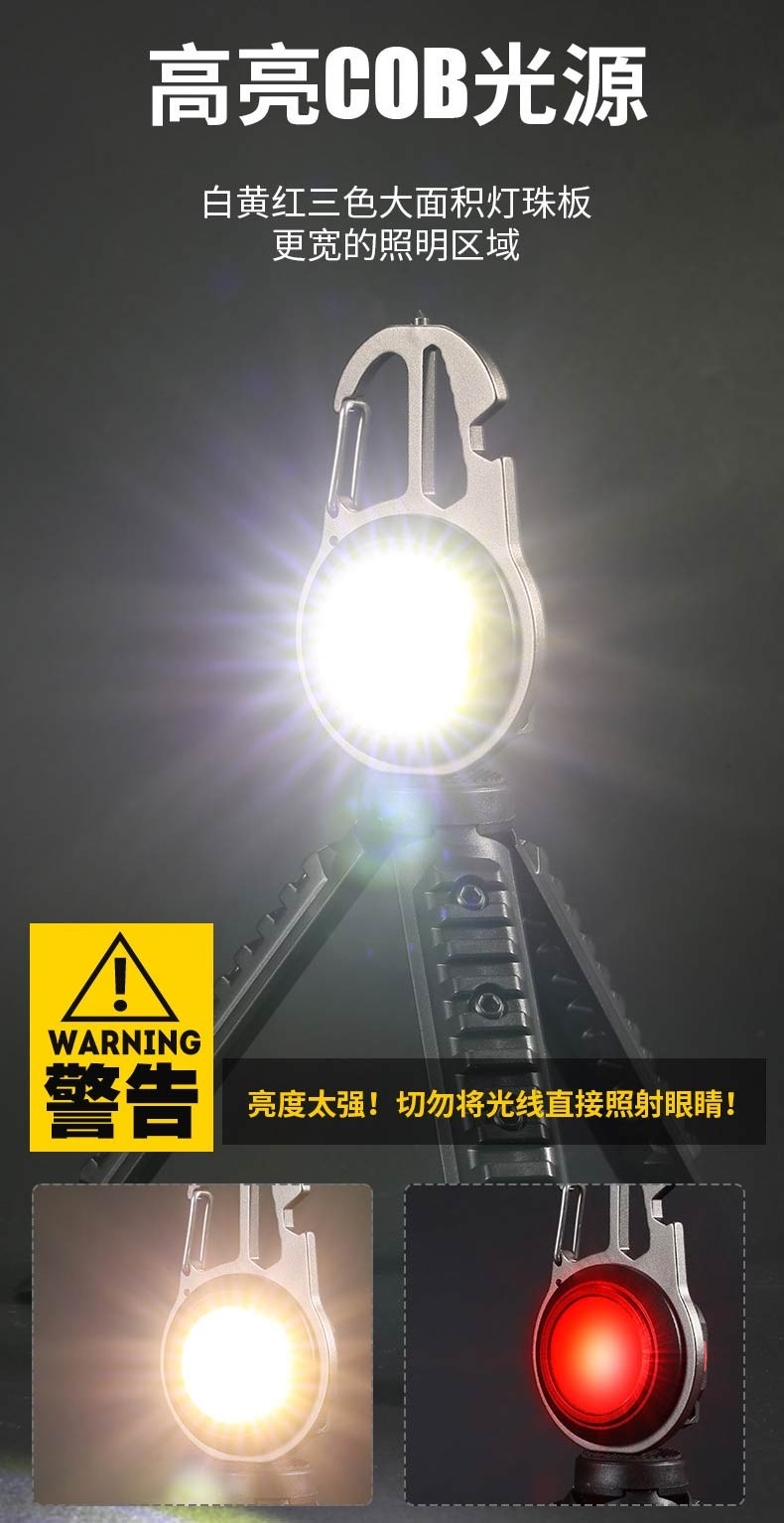 Bojun multifunctional camping light keychain flashlight portable light mini rechargeable outdoor high-bright emergency portable light cob wick + 7-level light source