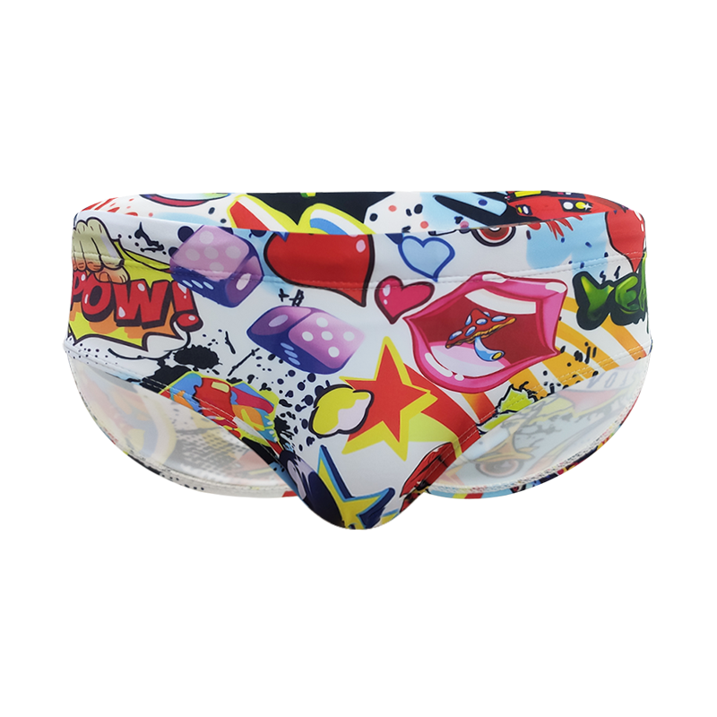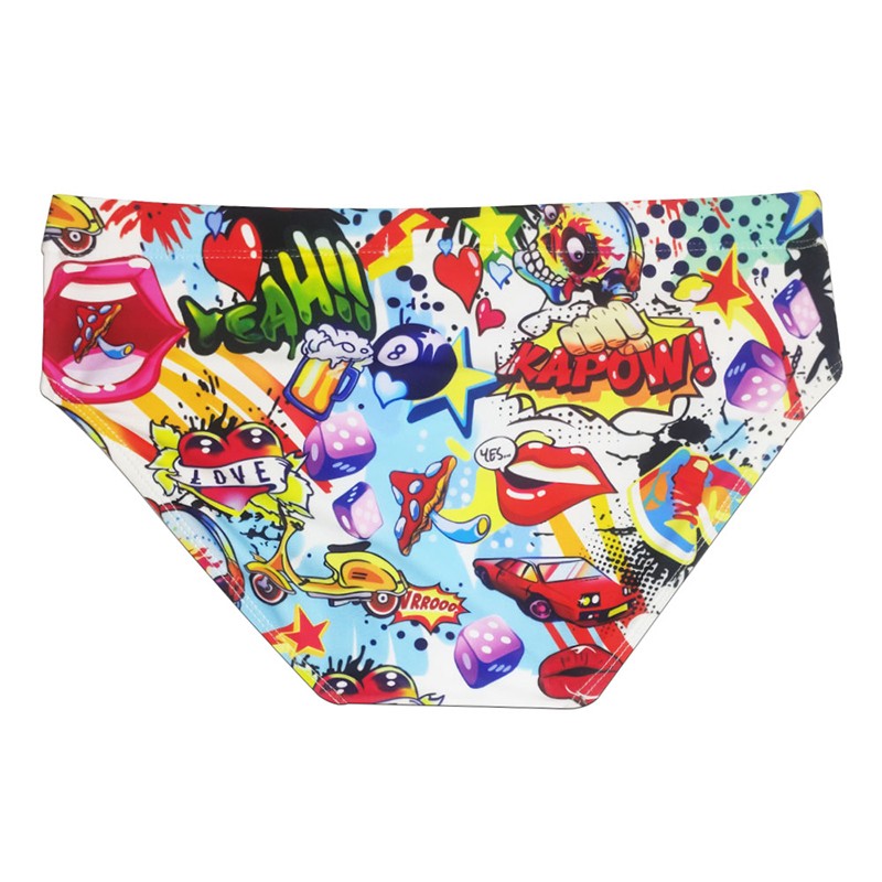 UXH Men's Anime Personalized Fashion Printed Swimming Briefs Comfortable and Close-fitting Beach Youth Swimming Pool Beach Equipment White L