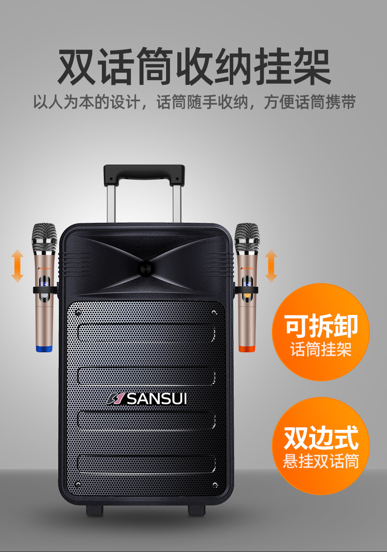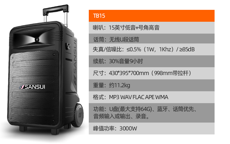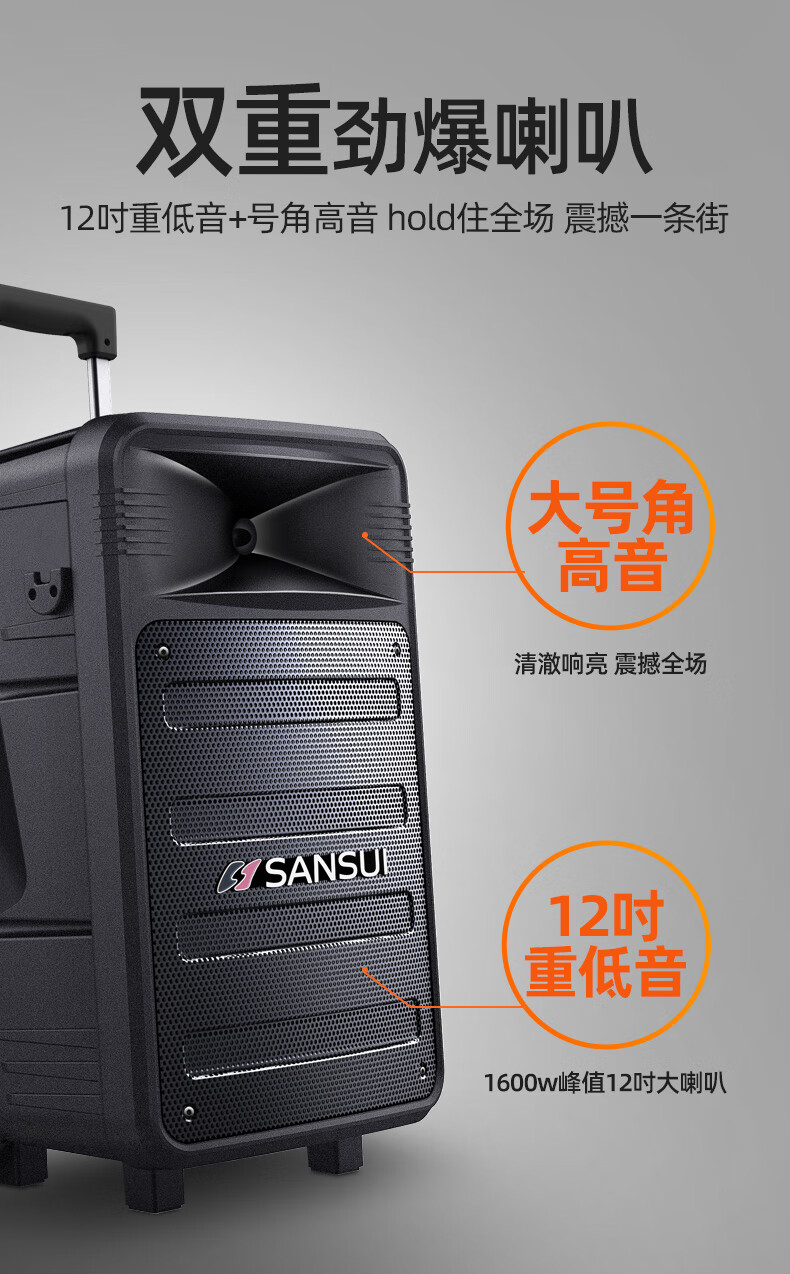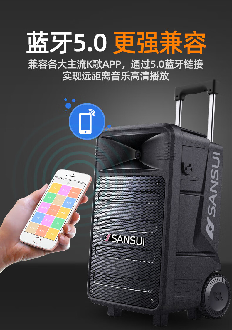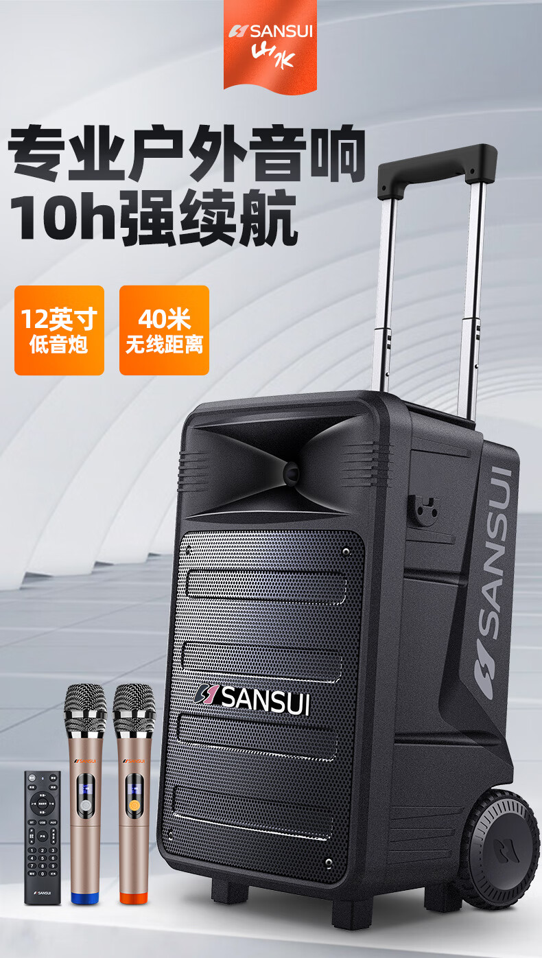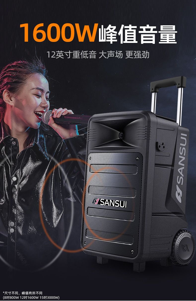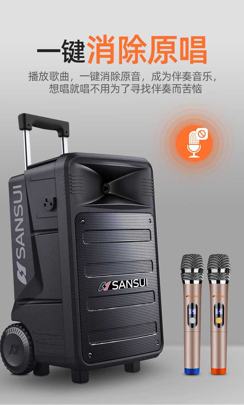 SANSUI square dance audio outdoor karaoke rod speaker Bluetooth indoor and outdoor performance camping singing and dancing all-in-one high-power wireless microphone subwoofer TB15 flagship version 15-inch dual microphone