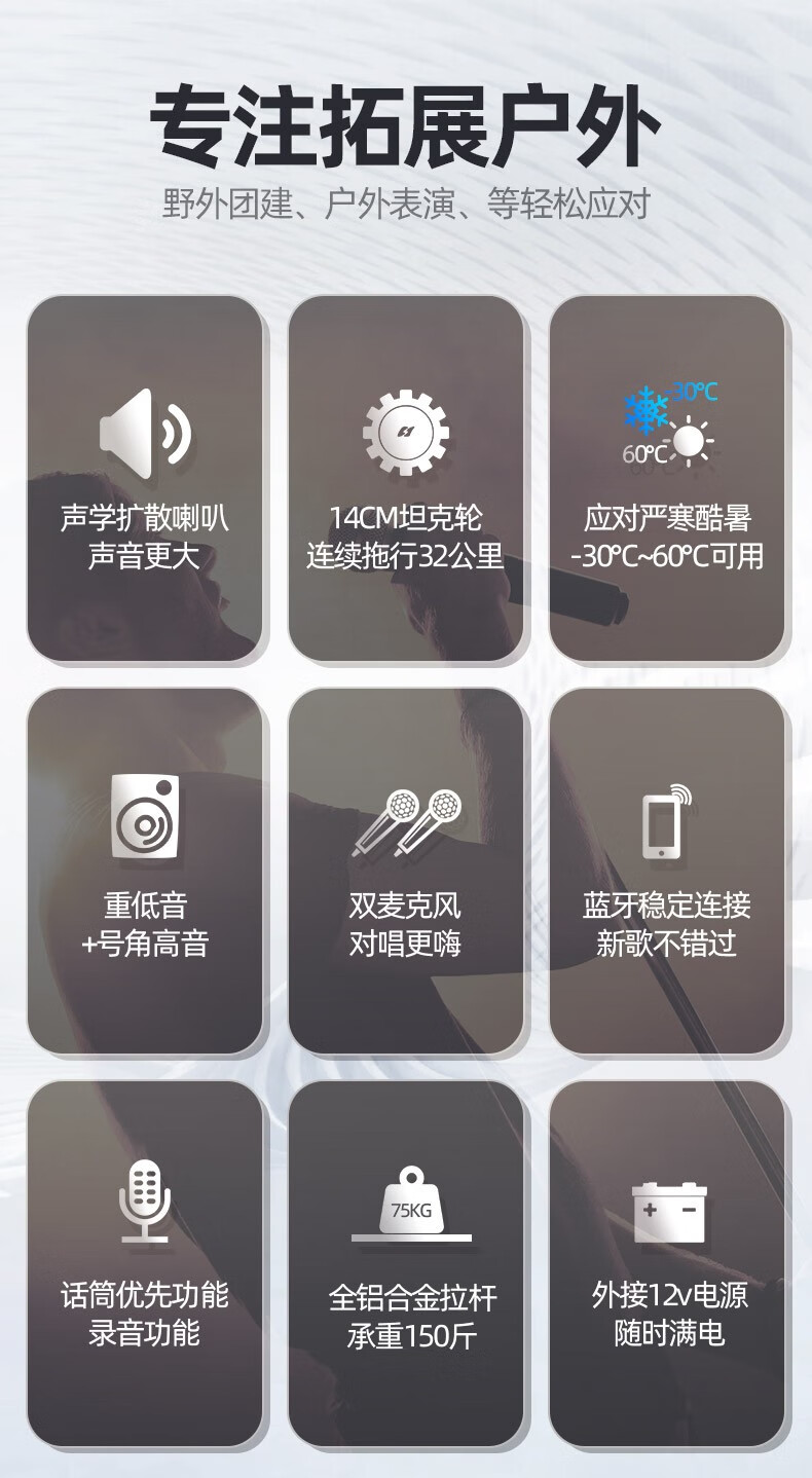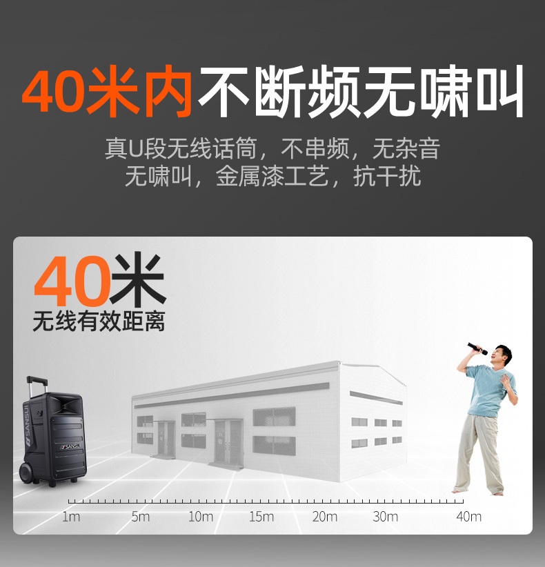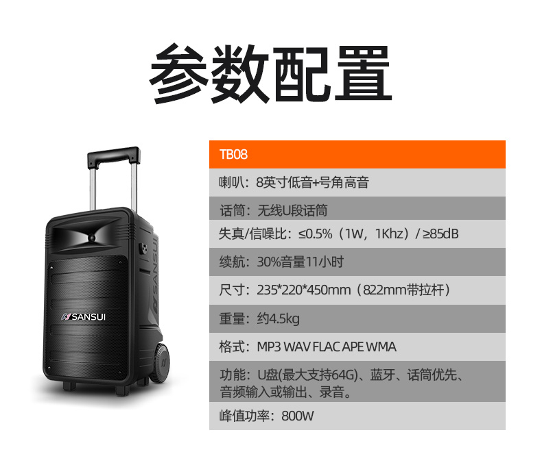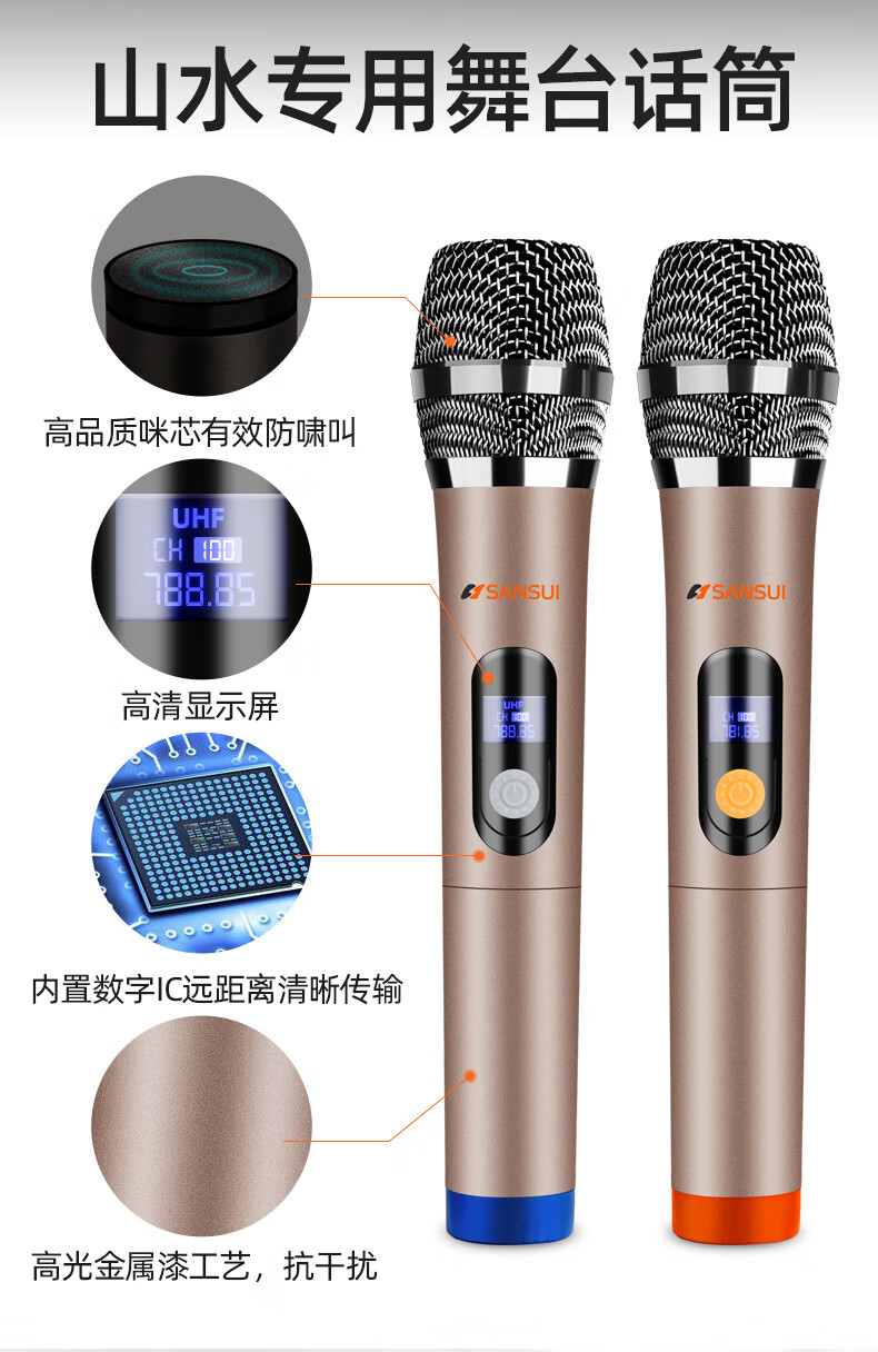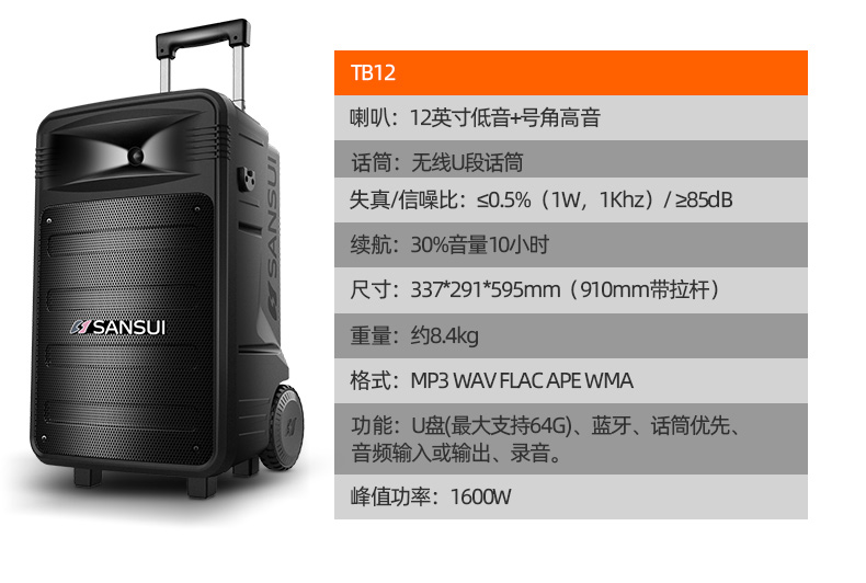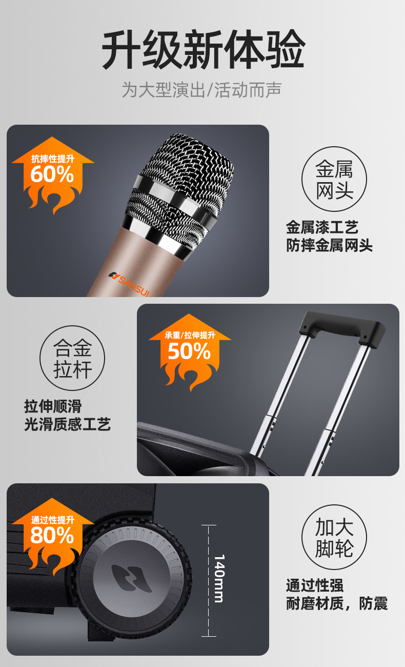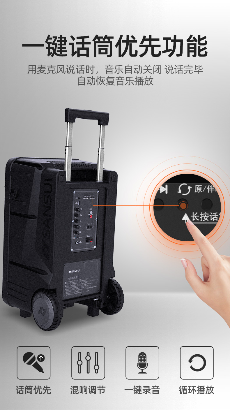 SANSUI square dance audio outdoor karaoke rod speaker Bluetooth indoor and outdoor performance camping singing and dancing all-in-one high-power wireless microphone subwoofer TB15 flagship version 15-inch dual microphone