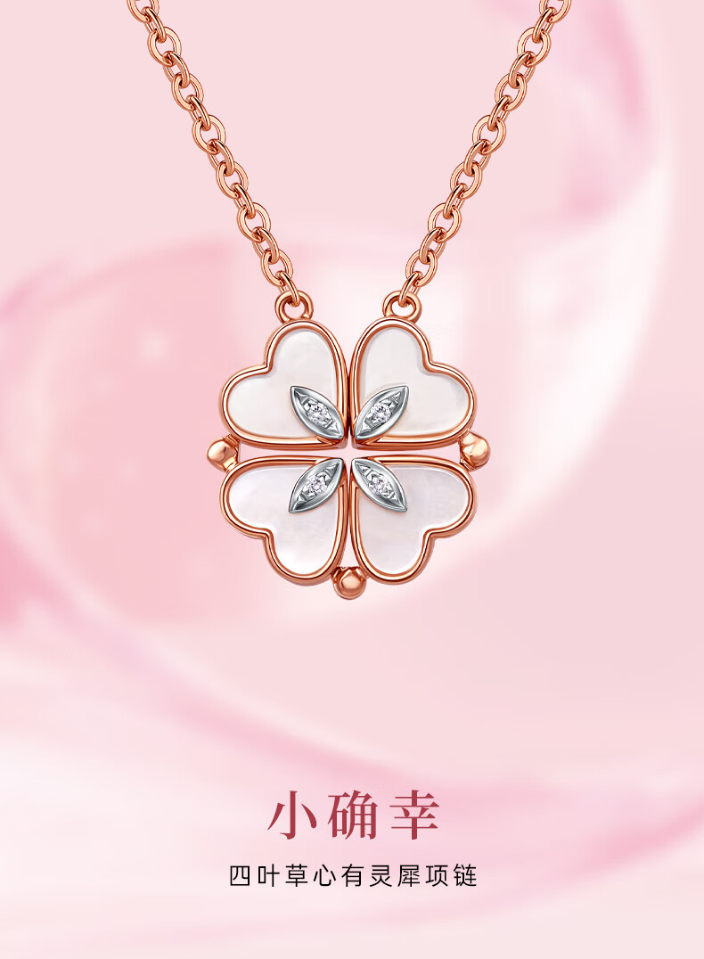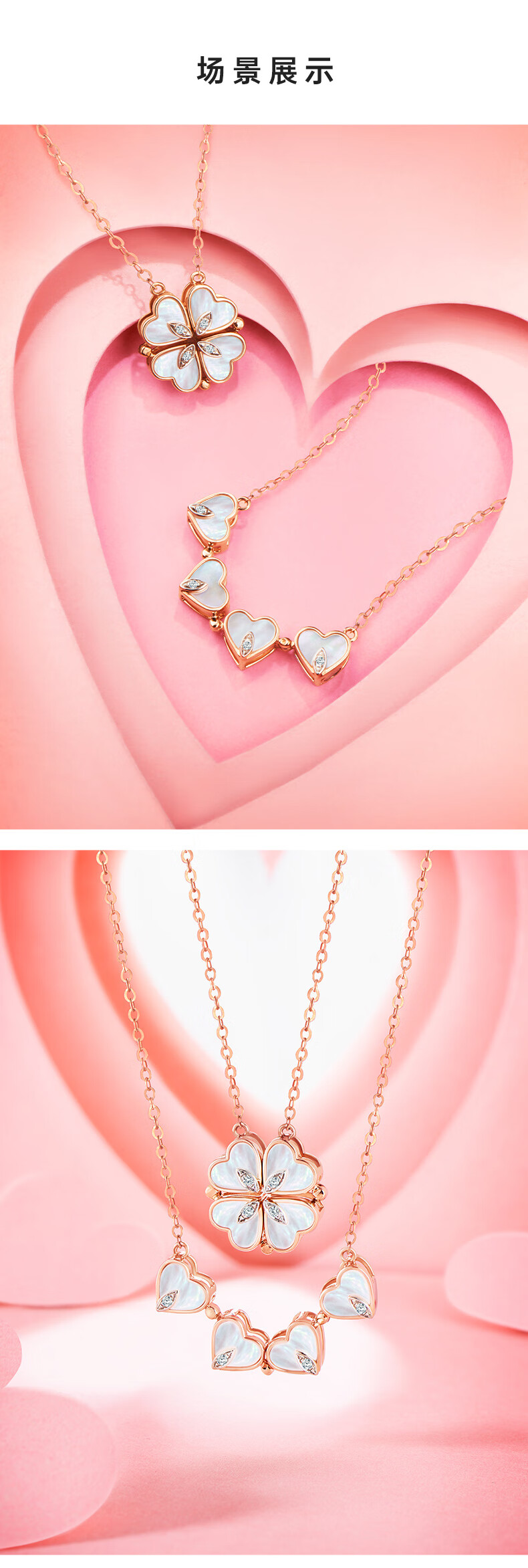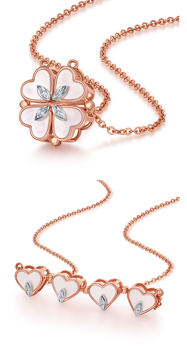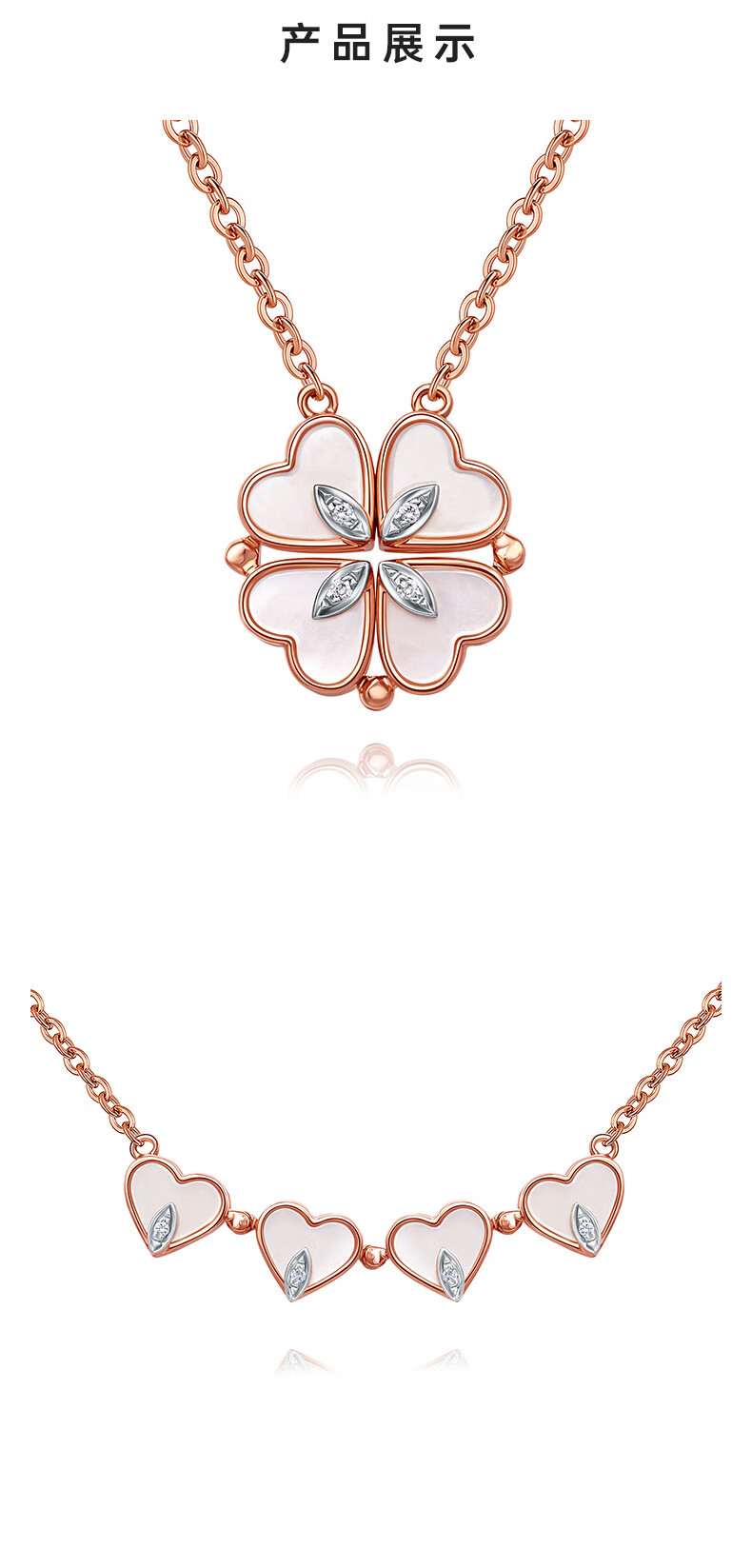 Chao Acer Heart-to-heart four-leaf clover 18K gold shell diamond necklace women's set chain birthday gift YD set chain, chain length about 40cm + tail chain
