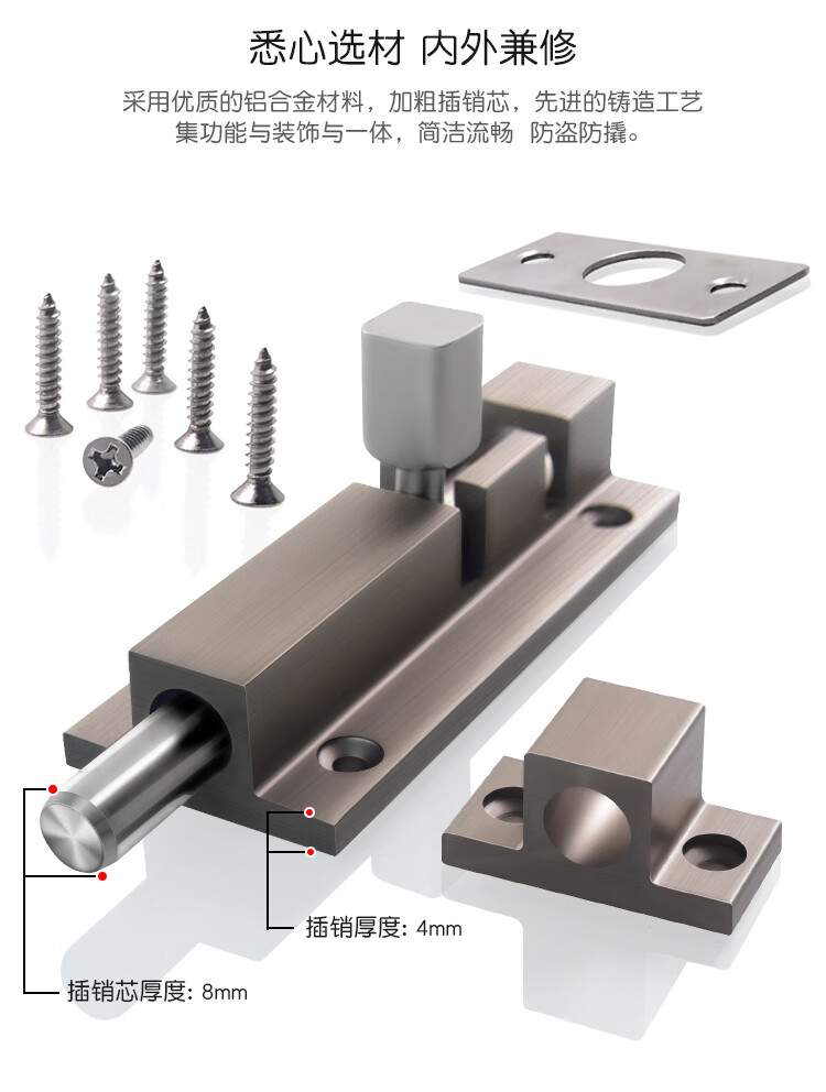 Hongcan Jiazhuo latch door lock door latch door buckle anti-theft door latch lock thickened bathroom wooden door latch door latch door pin aluminum alloy aluminum alloy latch 2 inches (6.5cm)