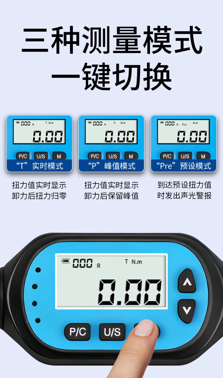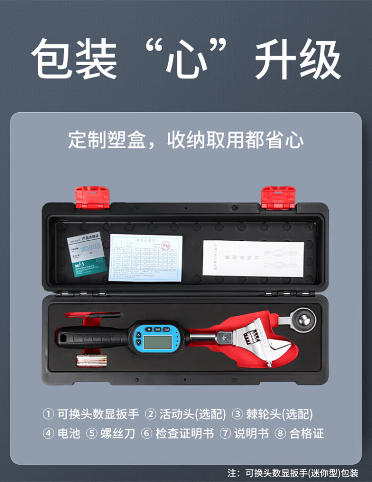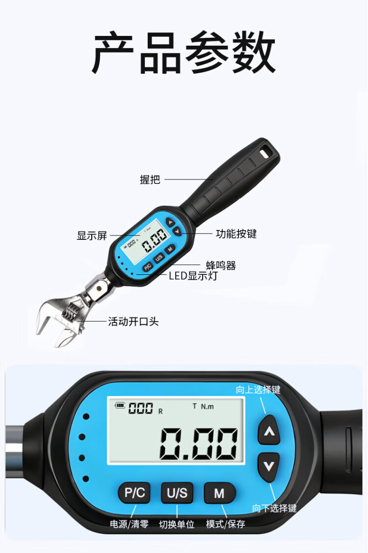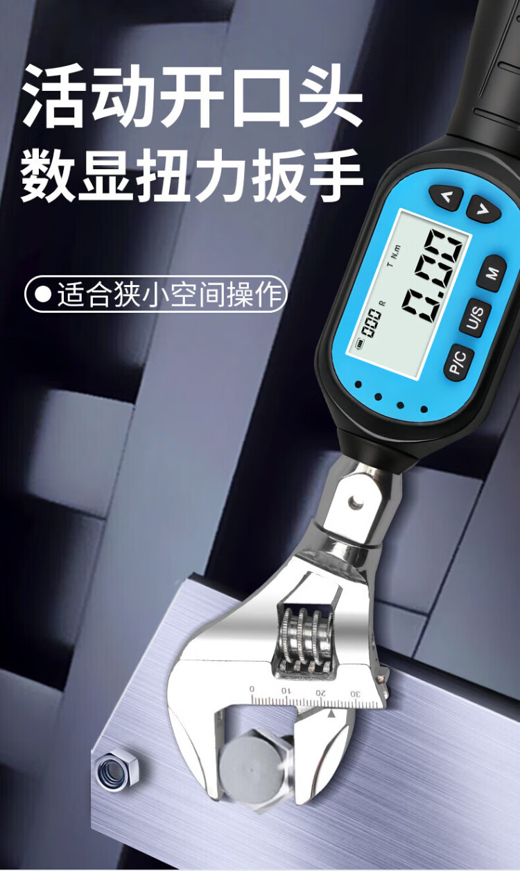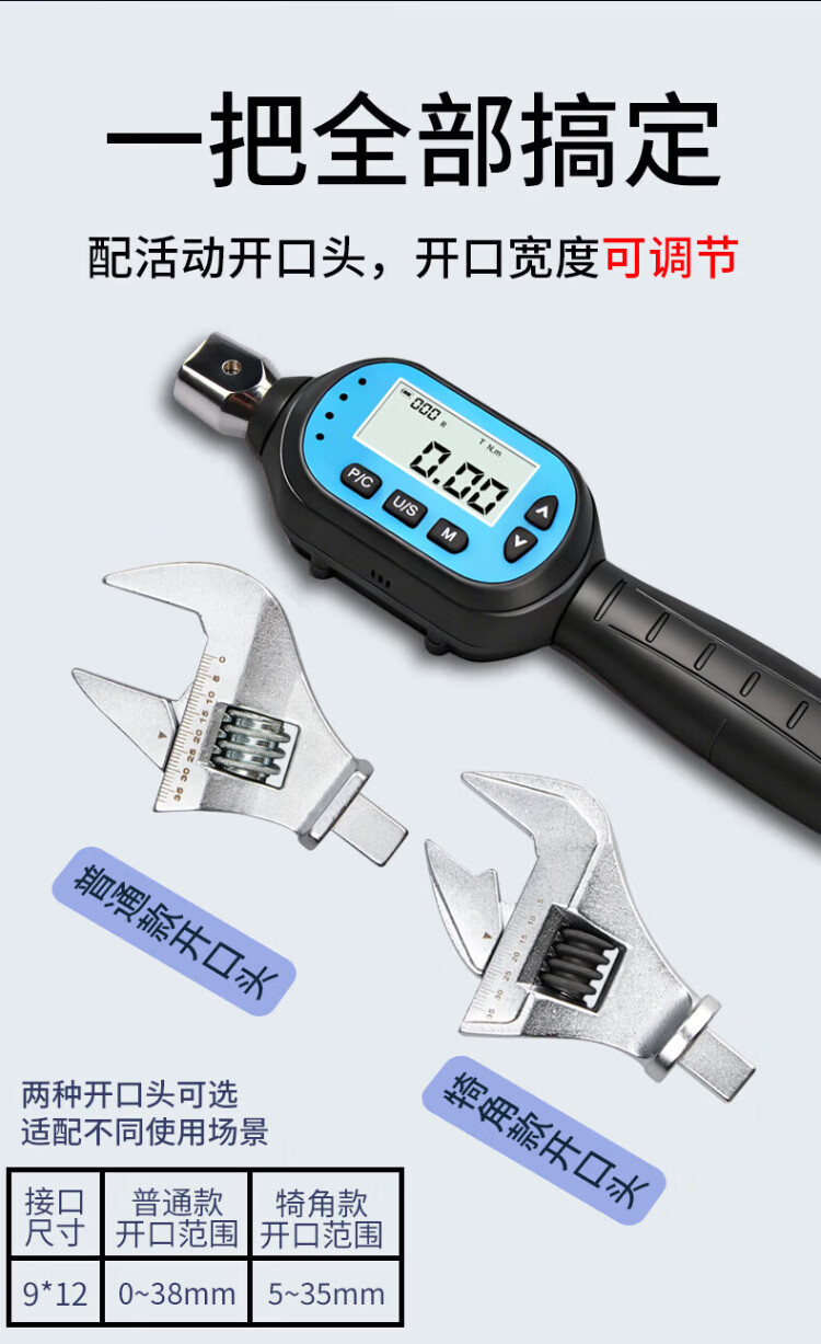Weidu (WD) movable open head torque wrench, digital display, adjustable torque, exchangeable head, air conditioning tool, square hole torque tester, torque 0.3-10N.m with 0-38mm open head