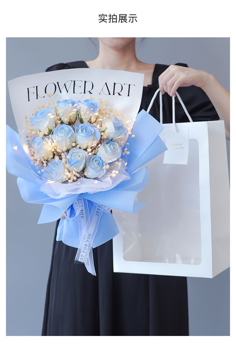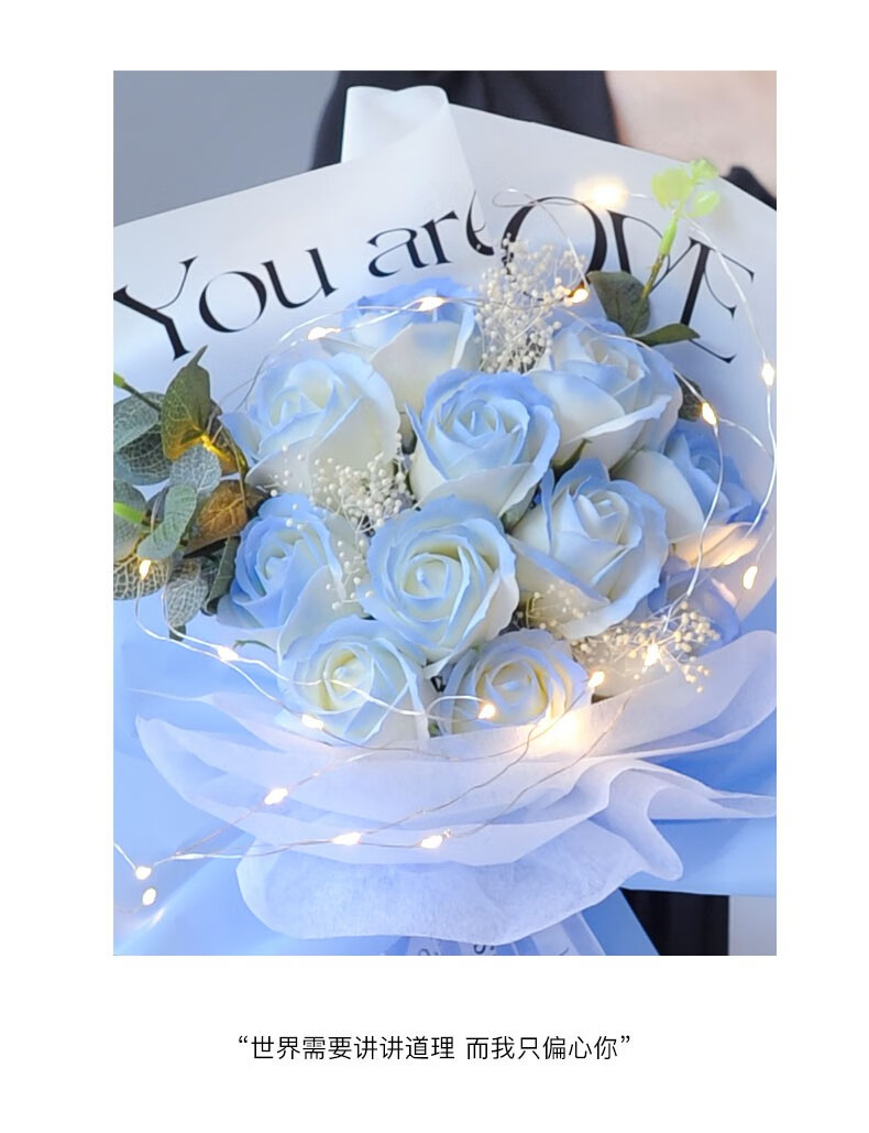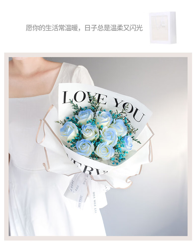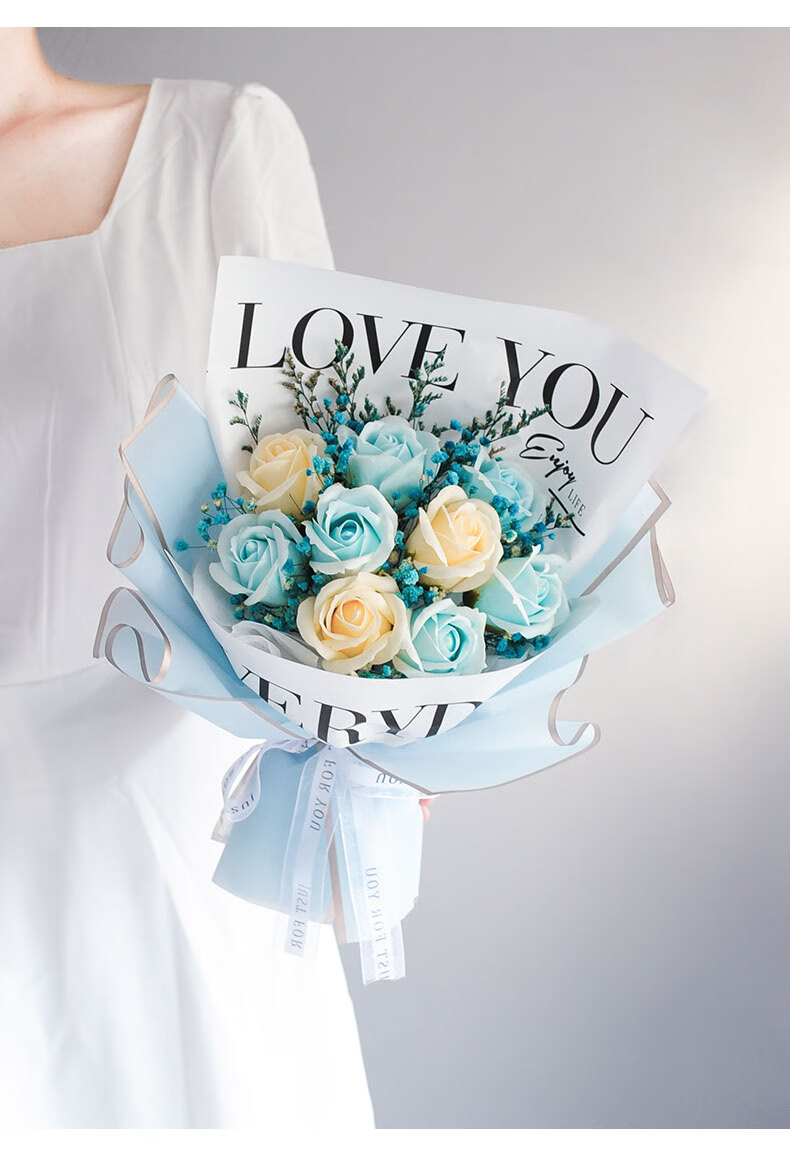 Spend time crushed ice blue roses dried bouquet immortal flowers artificial flowers for girlfriend to express love 214 Valentine's Day birthday gift 11 crushed ice blue roses + eucalyptus