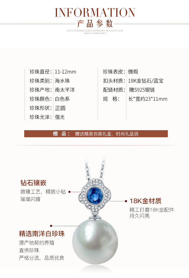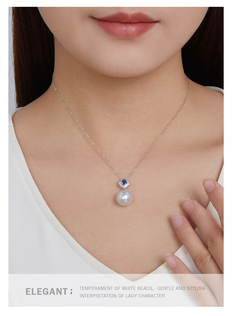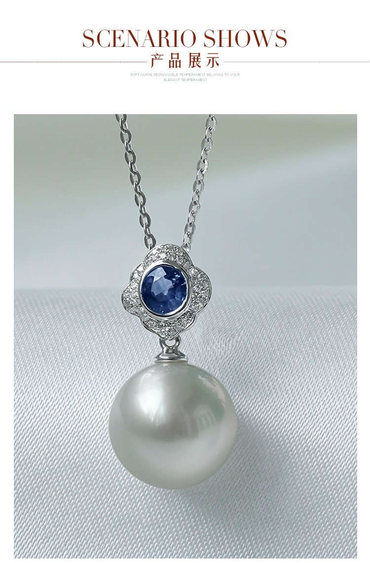 Queen of Pearls 18K gold sapphire Australian white pearl pendant 11-12mm seawater pearl necklace as a birthday gift for girlfriend