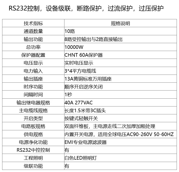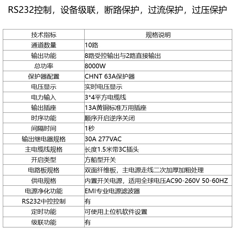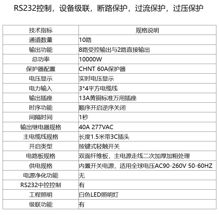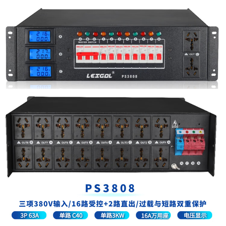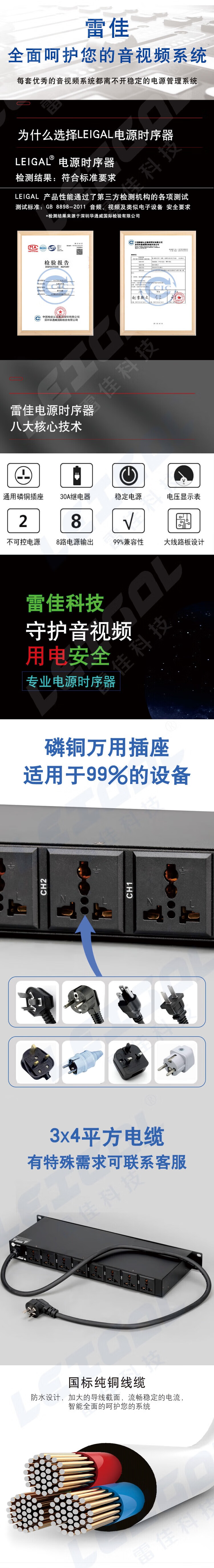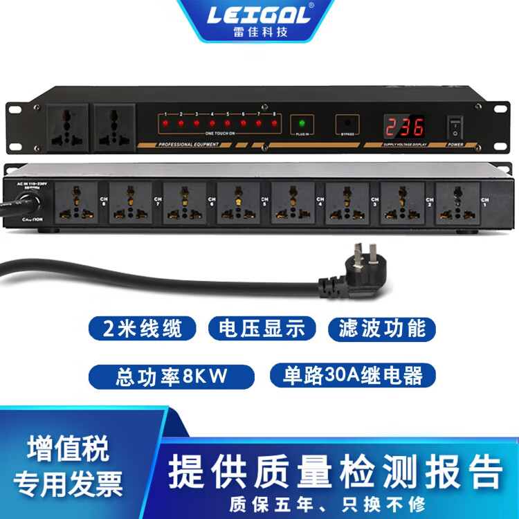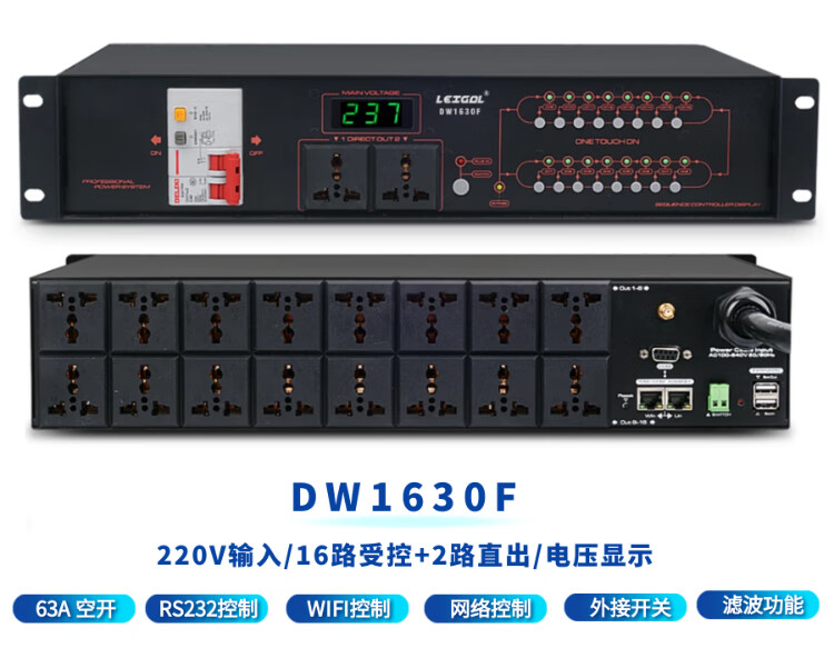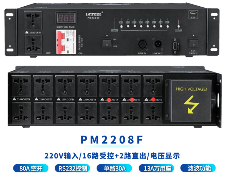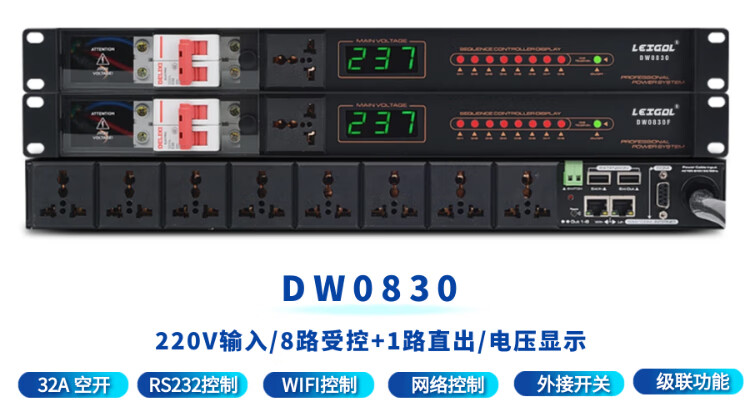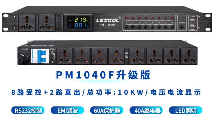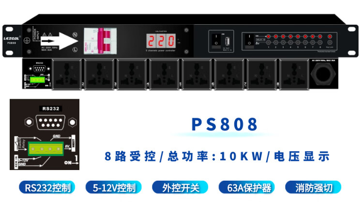 LEIGAL sequential power manager filtered high-power 220V with air switch voltage display KTV stage villa household power protection controller power sequencer 10-way 8KW power sequencer with air switch can be independently controlled and filtered.