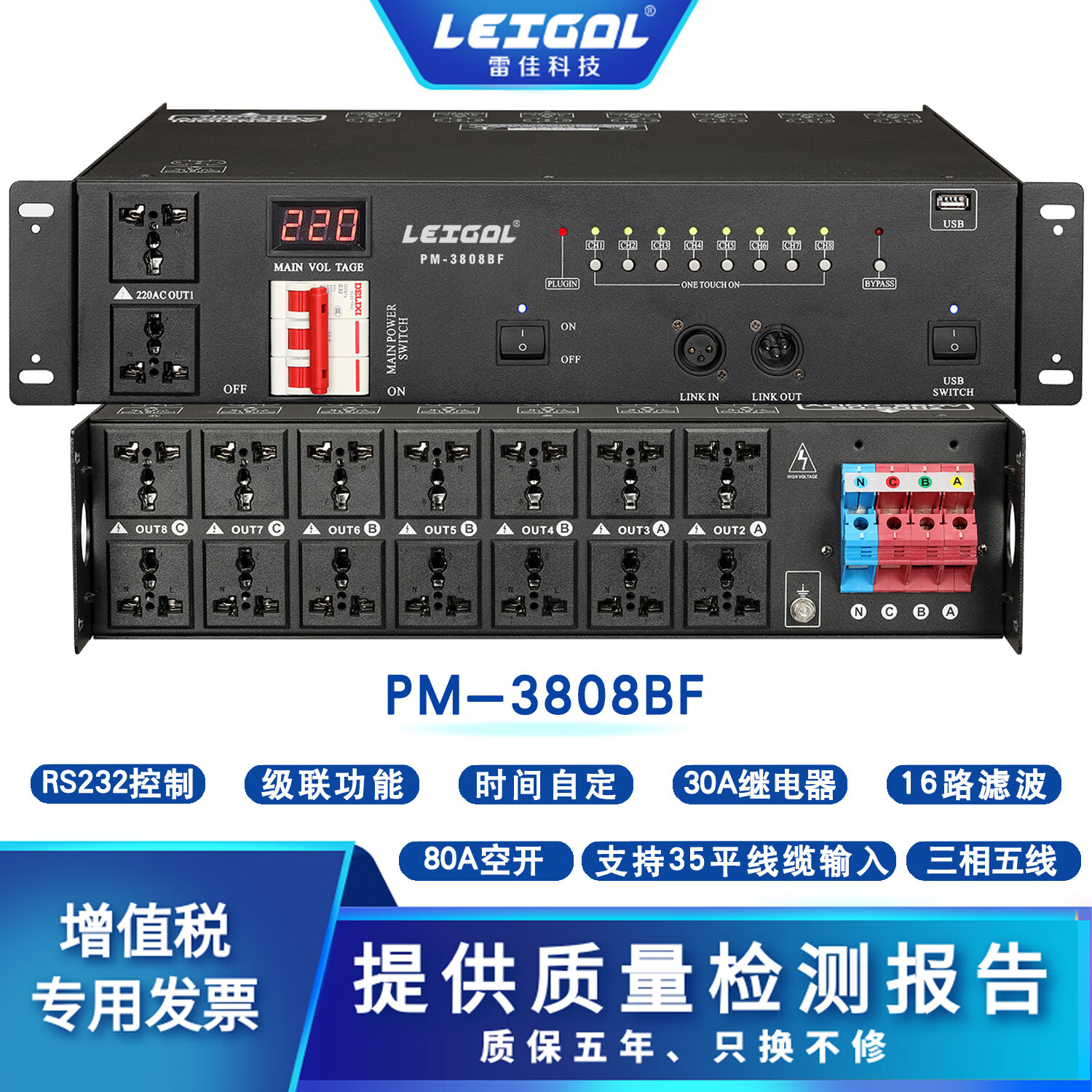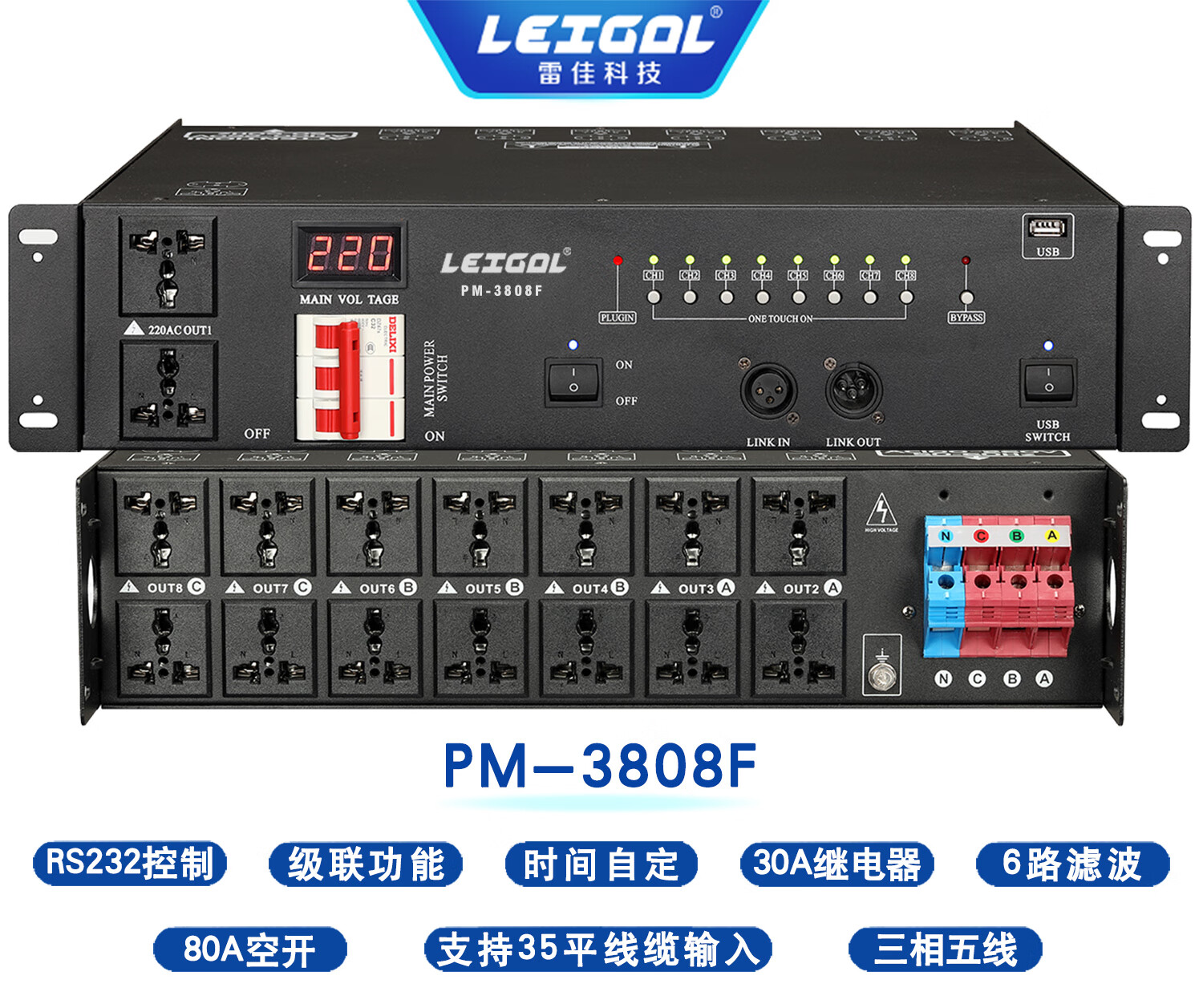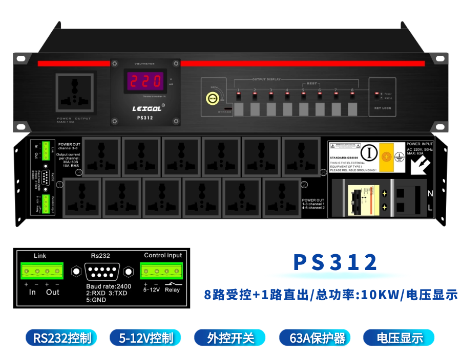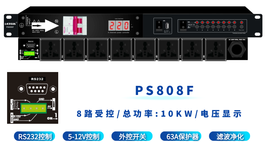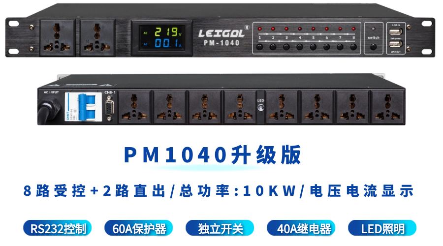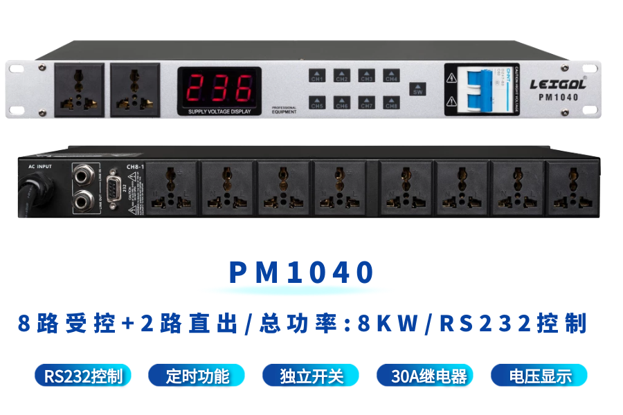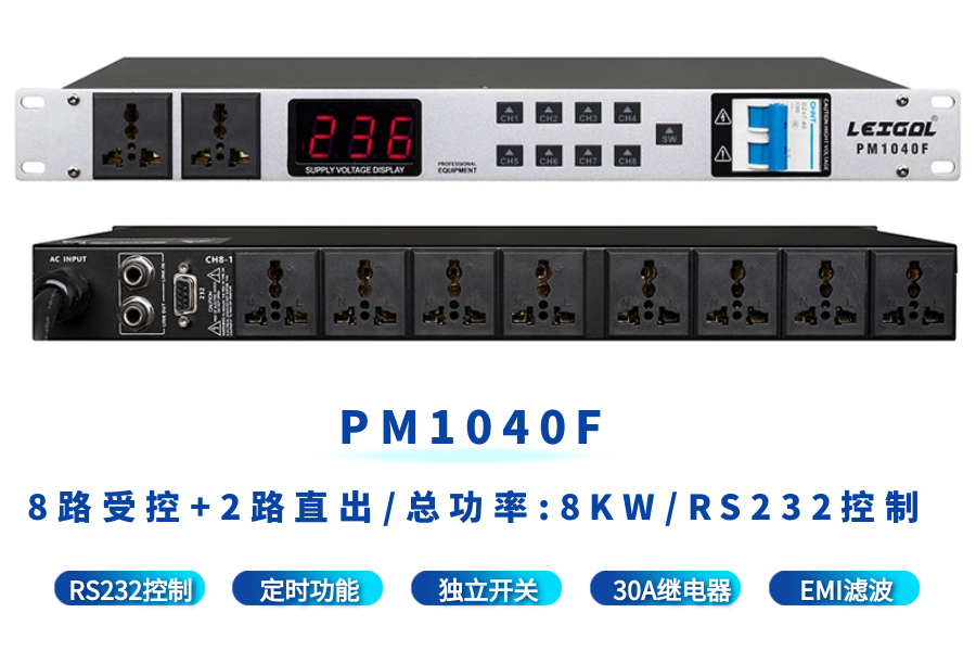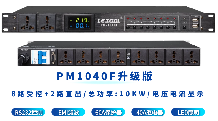 LEIGAL sequential power manager filter timing central control RS232 computer network switch intelligent power sequencer 10-way 10KW power sequencer with filter PM1040F,