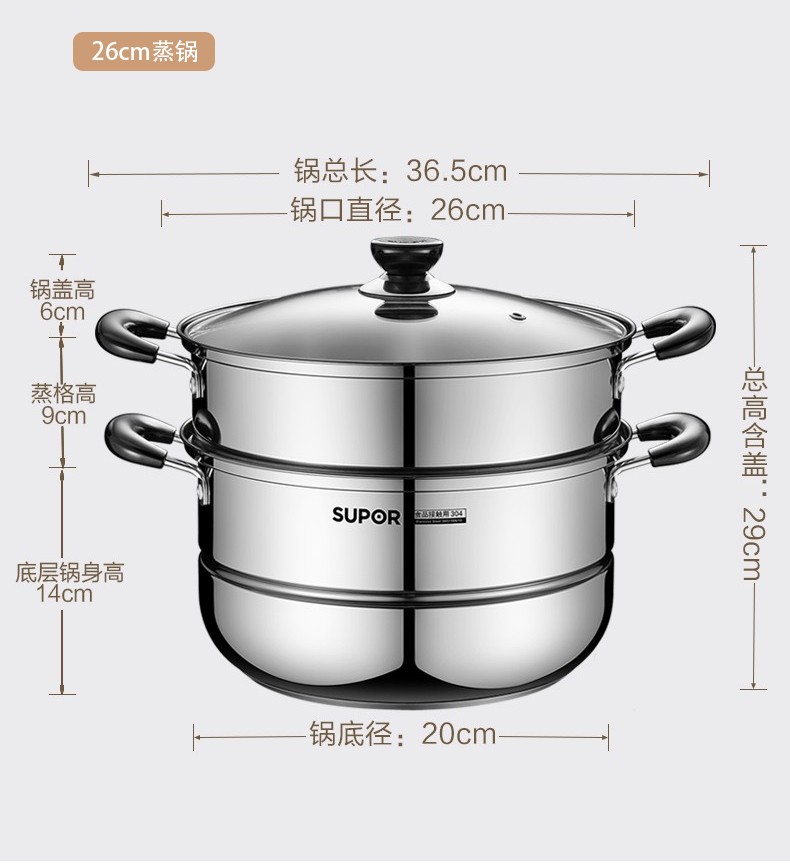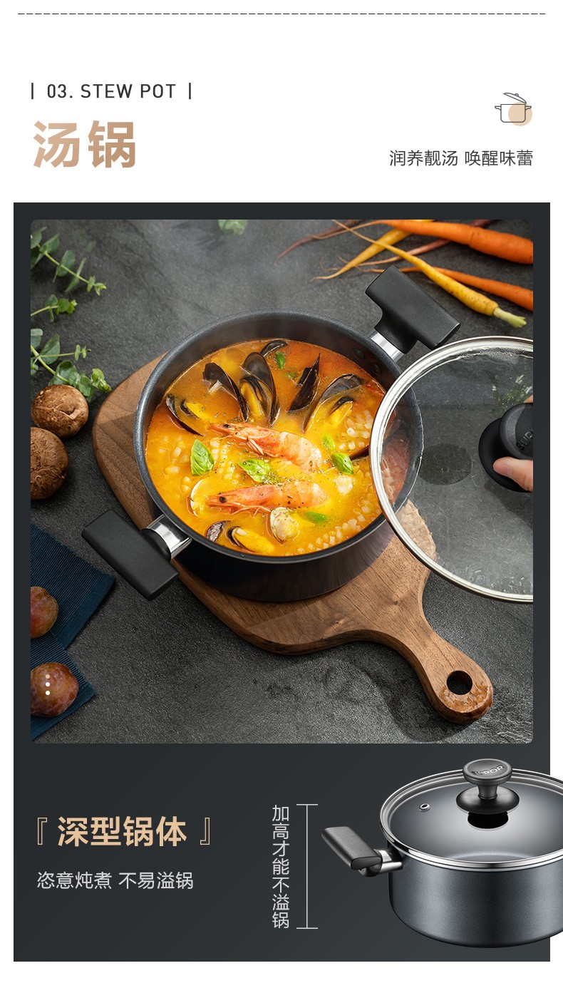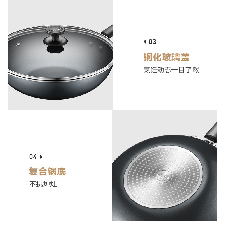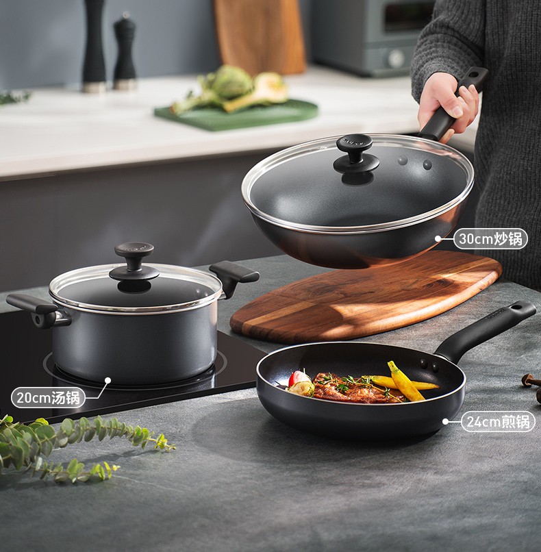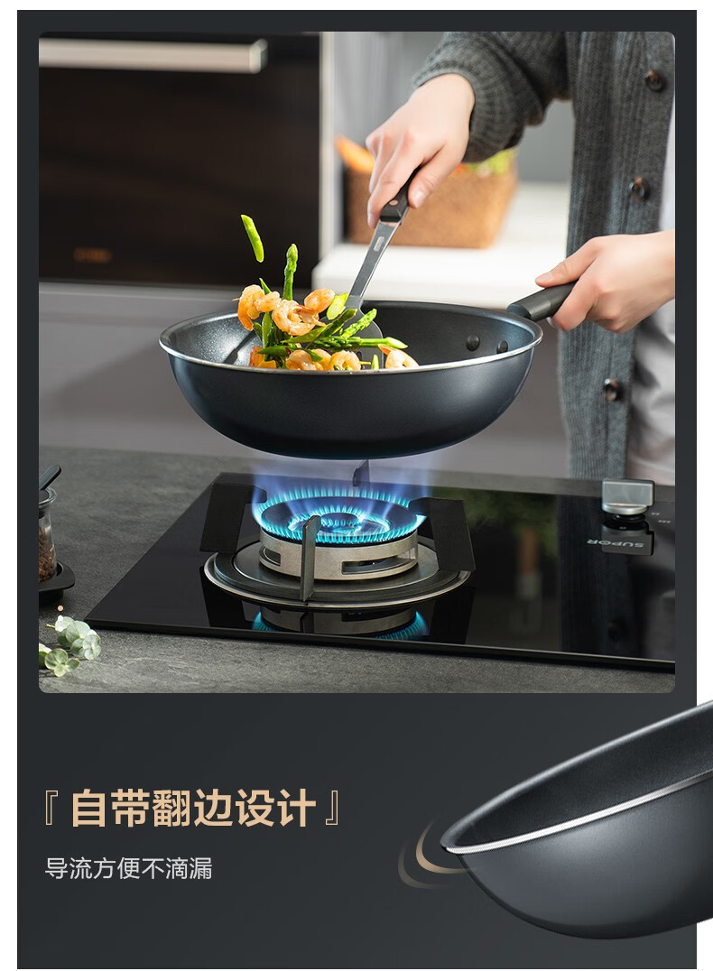 SUPOR pot set kitchen non-stick frying pan flat-bottomed frying pan soup pot household set pot combination gas induction cooker universal four-piece set wok + frying pan + soup pot + steamer