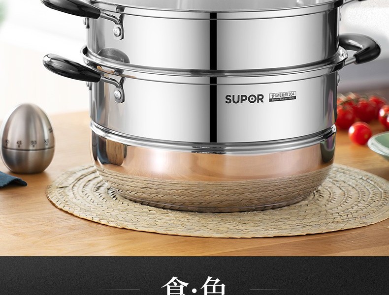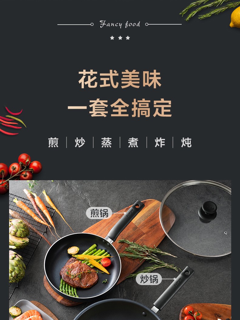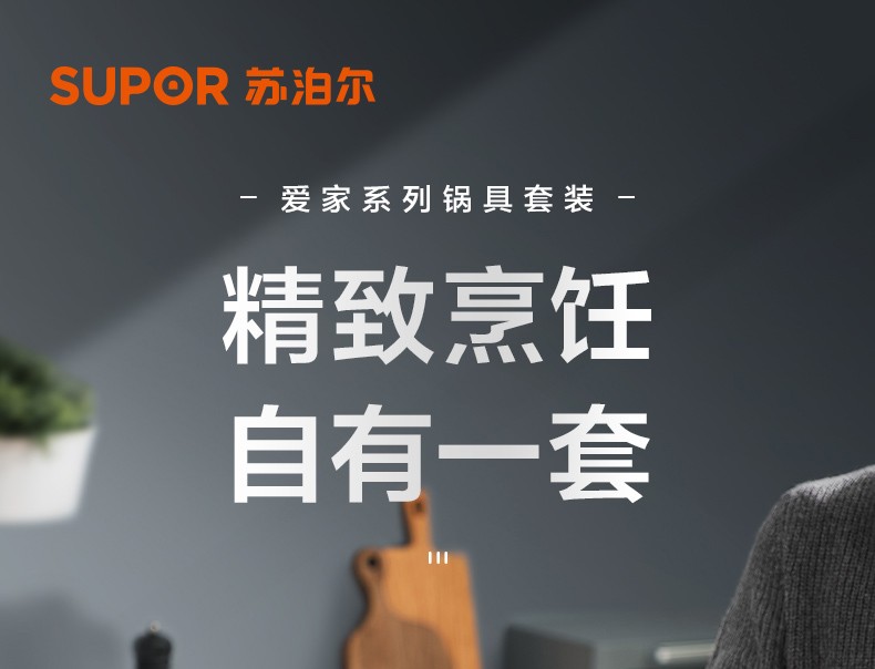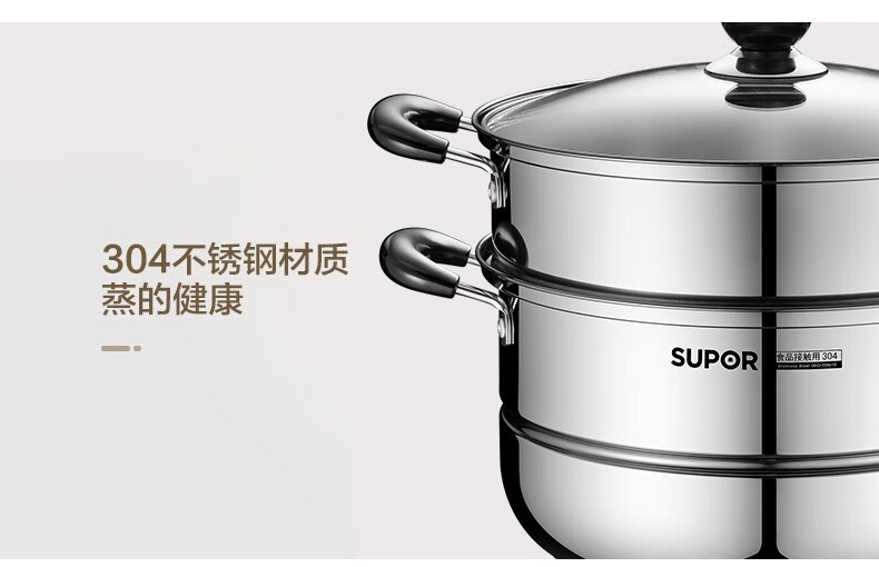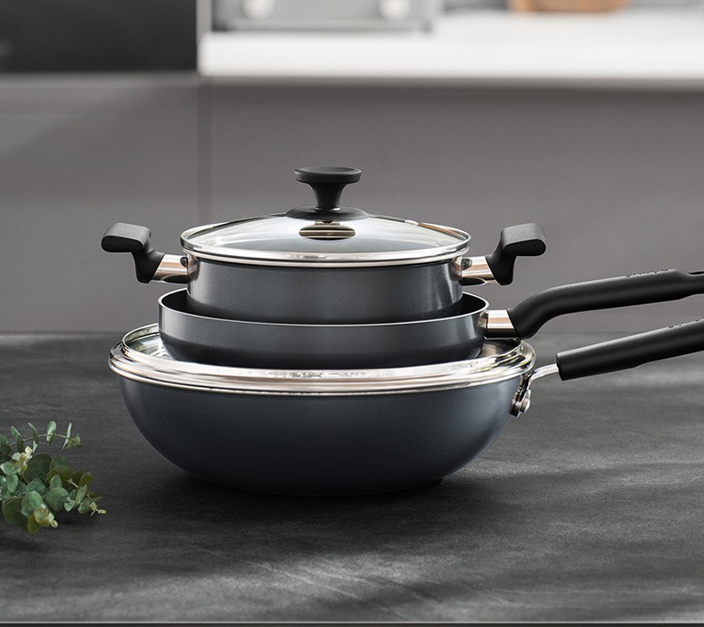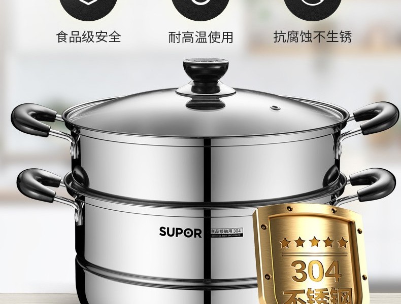 SUPOR pot set kitchen non-stick frying pan flat-bottomed frying pan soup pot household set pot combination gas induction cooker universal four-piece set wok + frying pan + soup pot + steamer