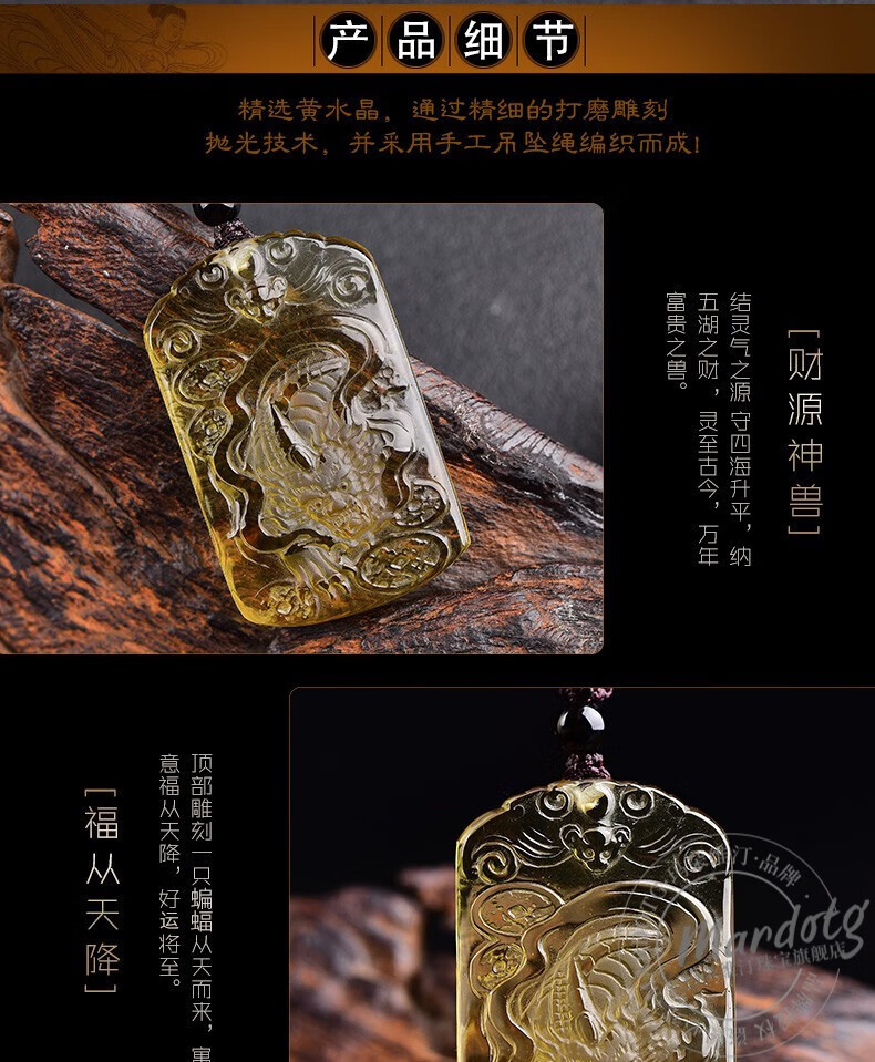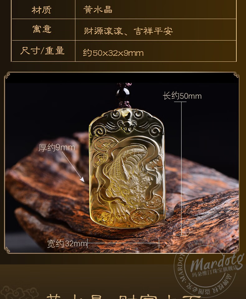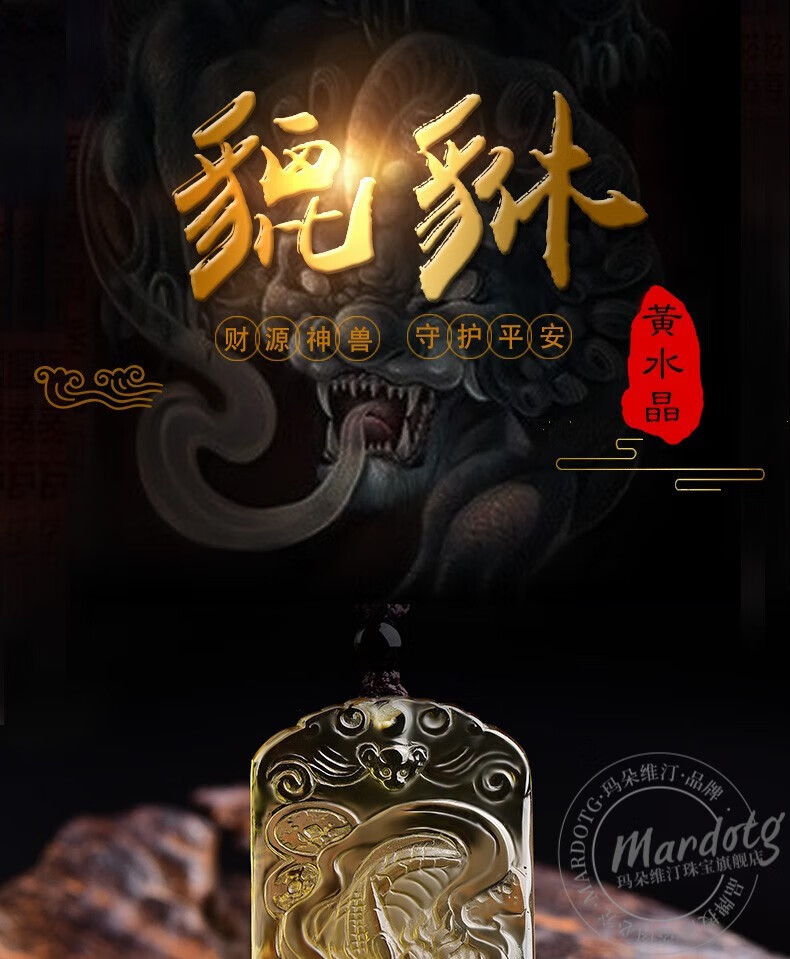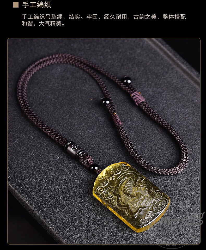 MARDOTG Citrine Pixiu Pendant Wushi Brand Amulet Pendant Wealth Pixiu Crystal Necklace Gift