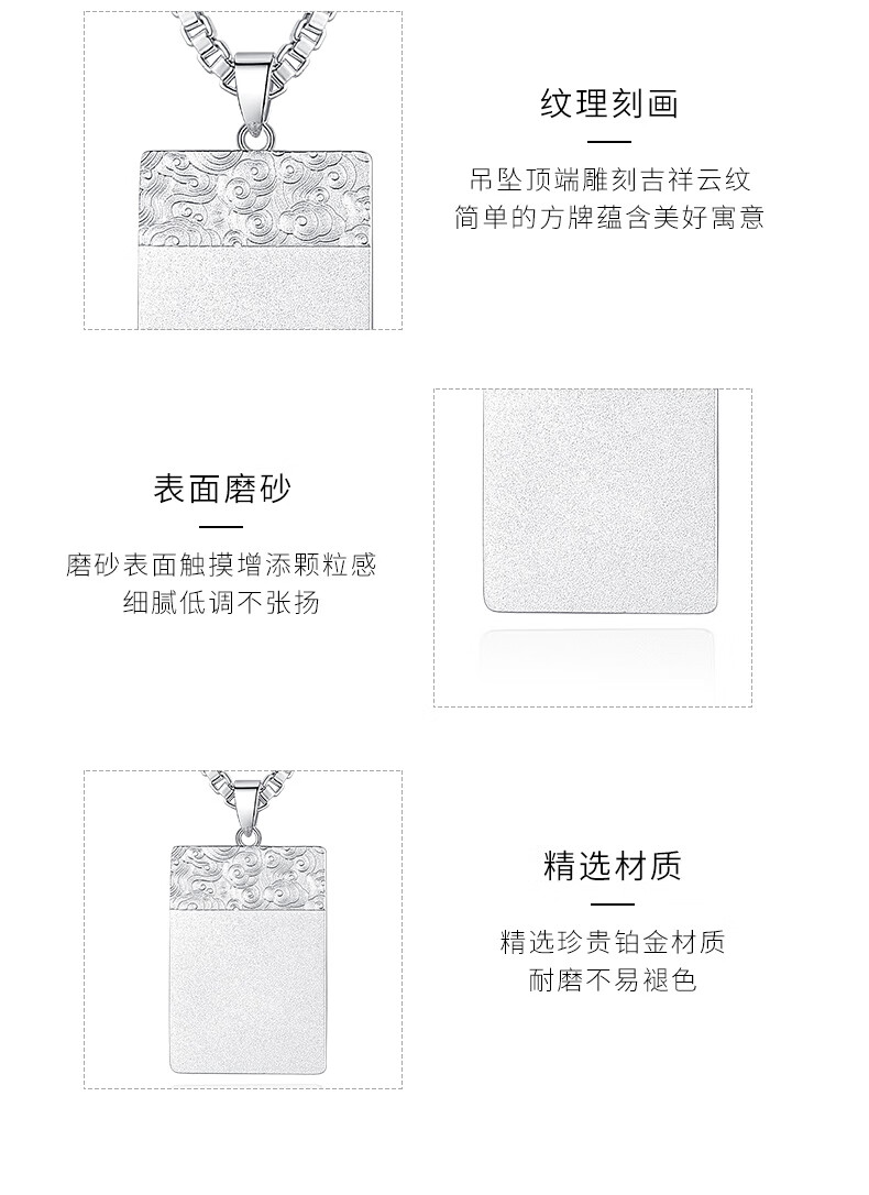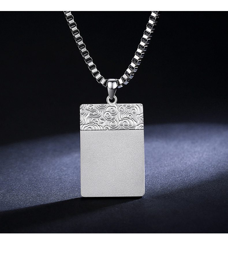 Miss JuJu pt950 platinum pendant men's platinum pendant large tag personalized square auspicious clouds safe and sound pendant small version weight 14.18g height 29mm width 20mm