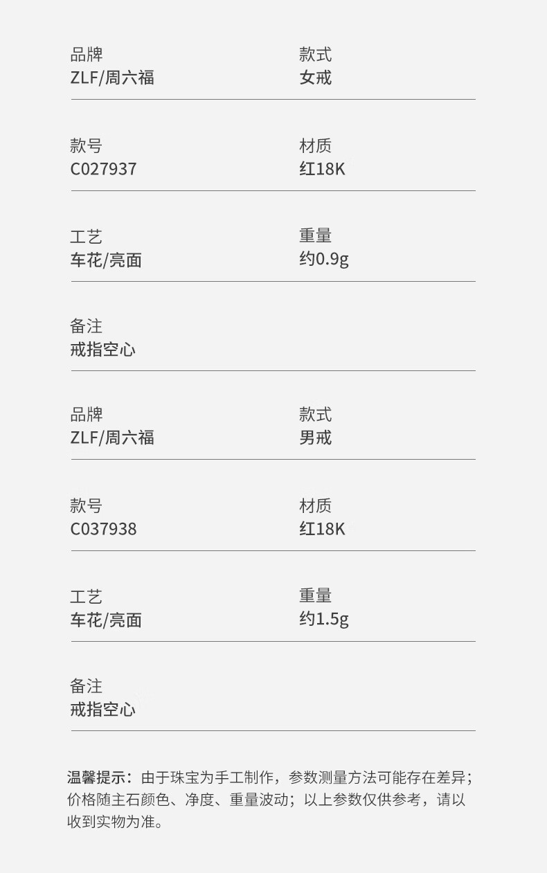 Saturday Fortune (ZLF) 18K gold ring female gold closed ring couple ring for girls anniversary 17th - men's ring