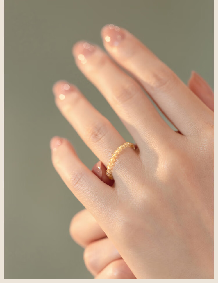 Hazel Orange Ultra-fine 2mm Citrine Ring for Women Fashionable Design Transfer Bead Tail Ring Index Finger Ring Small Fresh Holiday Gift 2mm Citrine Ring (One Size) R14