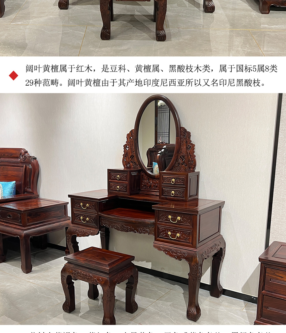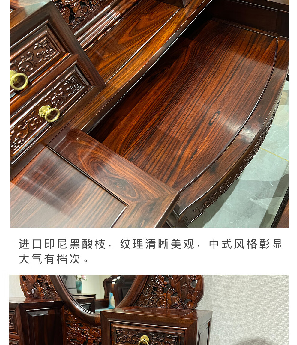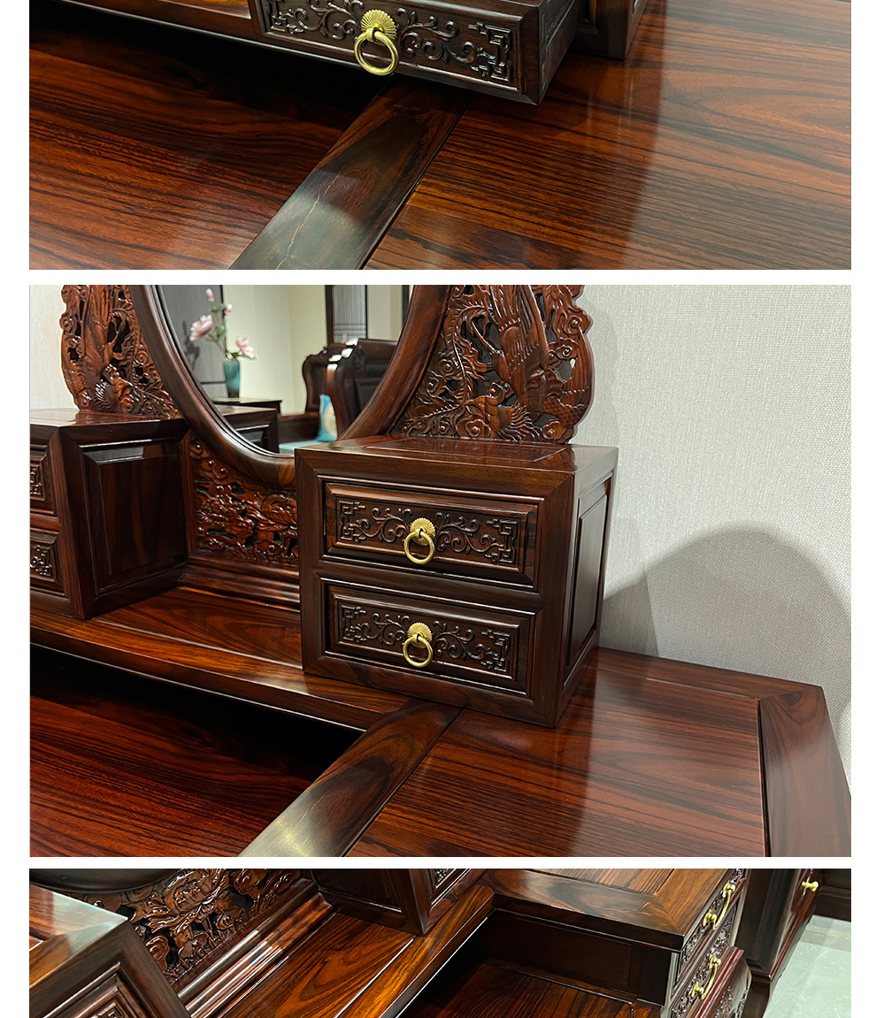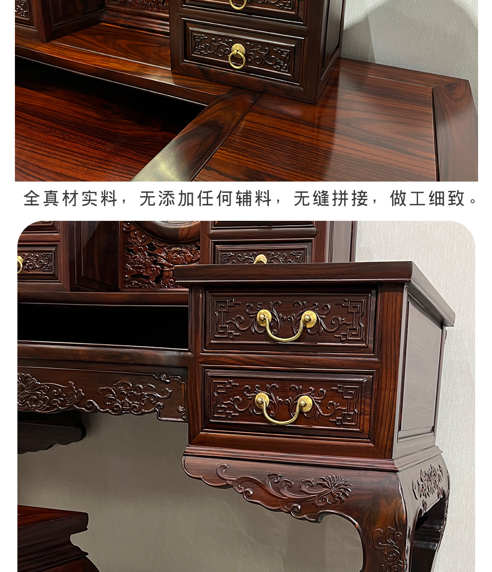 Jimeige mahogany furniture Indonesian black rosewood (scientific name: broad-leaf rosewood) dressing table bedroom solid wood dressing table dressing table Chinese carved dressing table stool mirror carved dressing table with stools