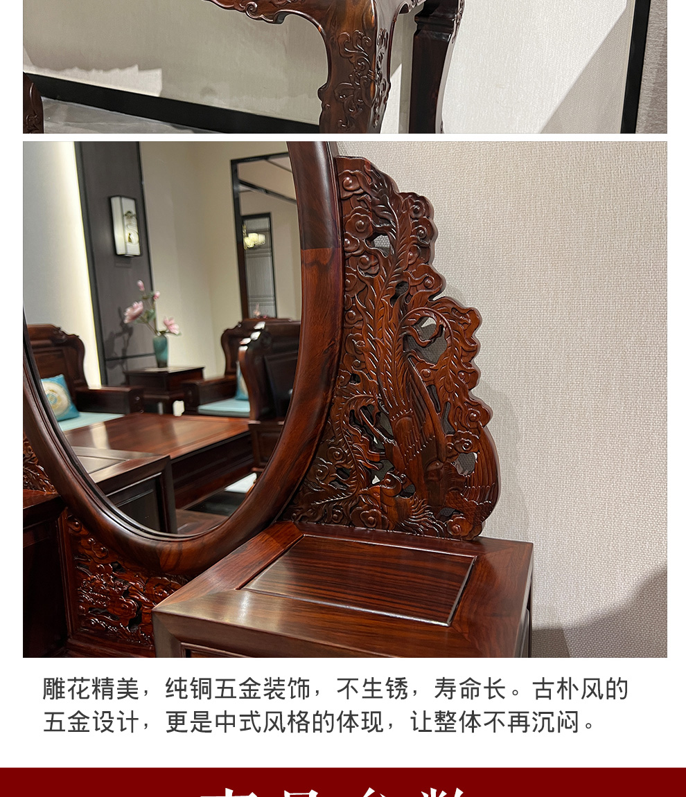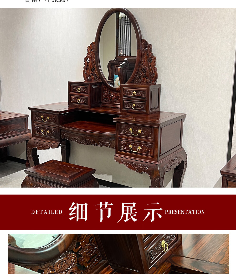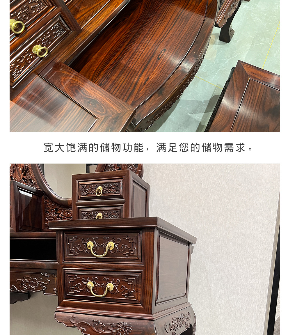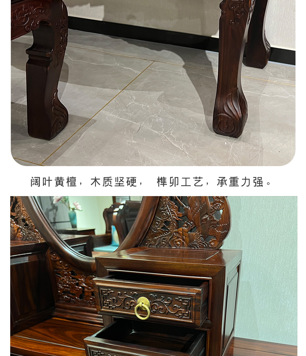 Jimeige mahogany furniture Indonesian black rosewood (scientific name: broad-leaf rosewood) dressing table bedroom solid wood dressing table dressing table Chinese carved dressing table stool mirror carved dressing table with stools