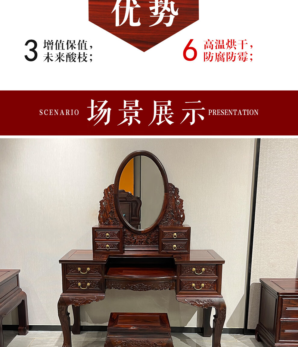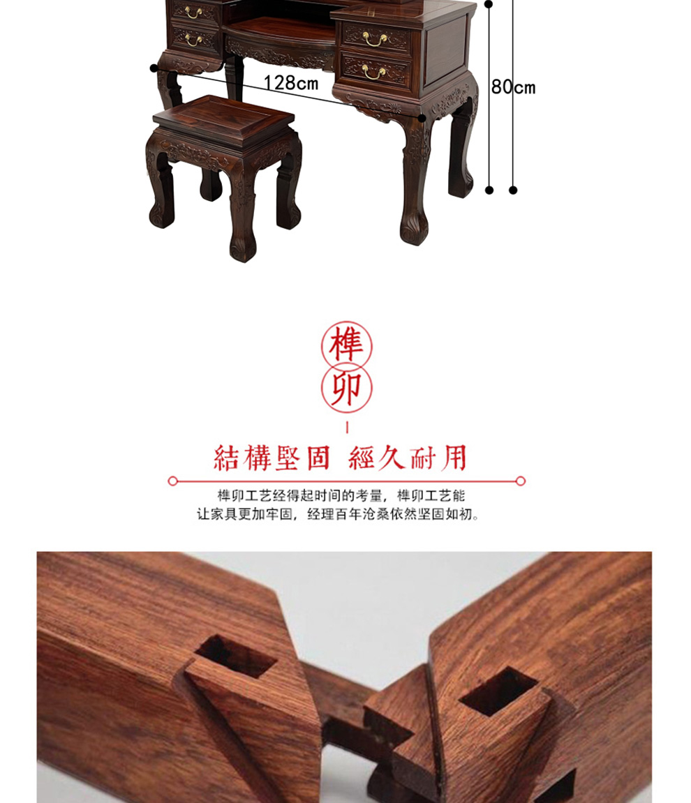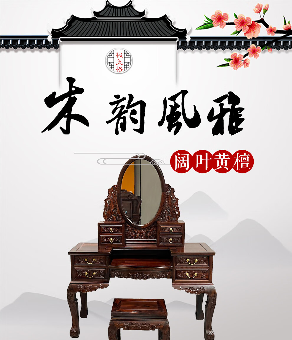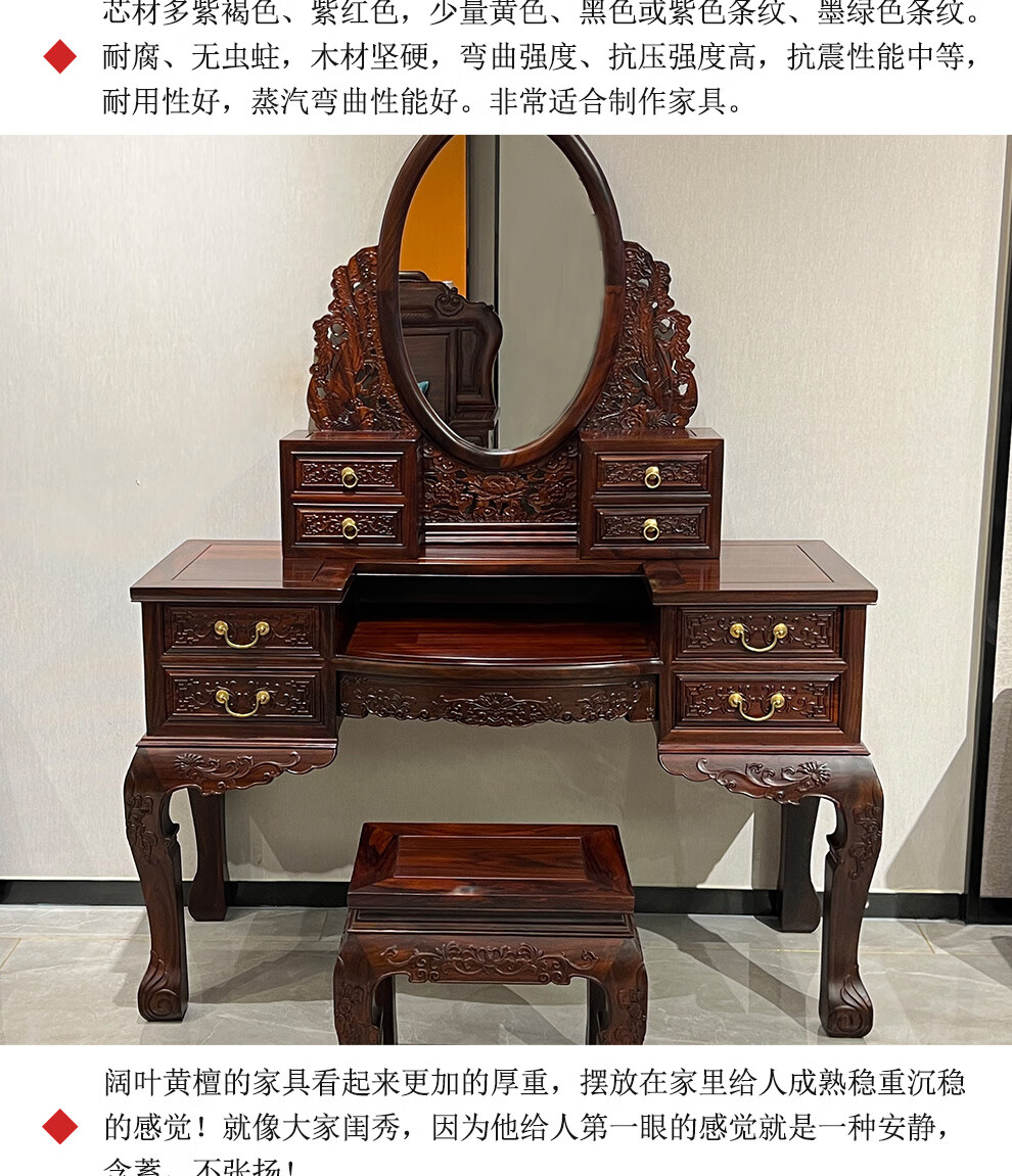 Jimeige mahogany furniture Indonesian black rosewood (scientific name: broad-leaf rosewood) dressing table bedroom solid wood dressing table dressing table Chinese carved dressing table stool mirror carved dressing table with stools