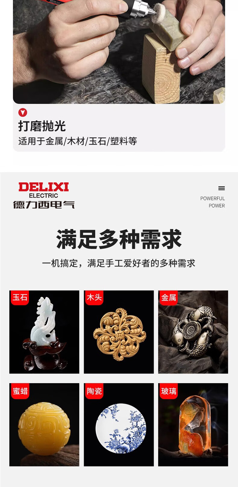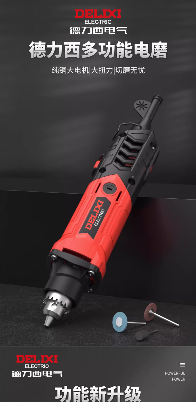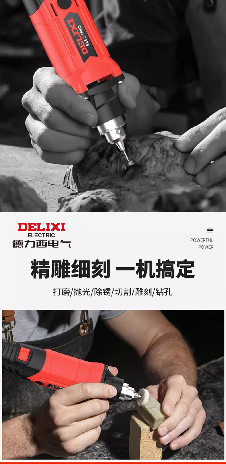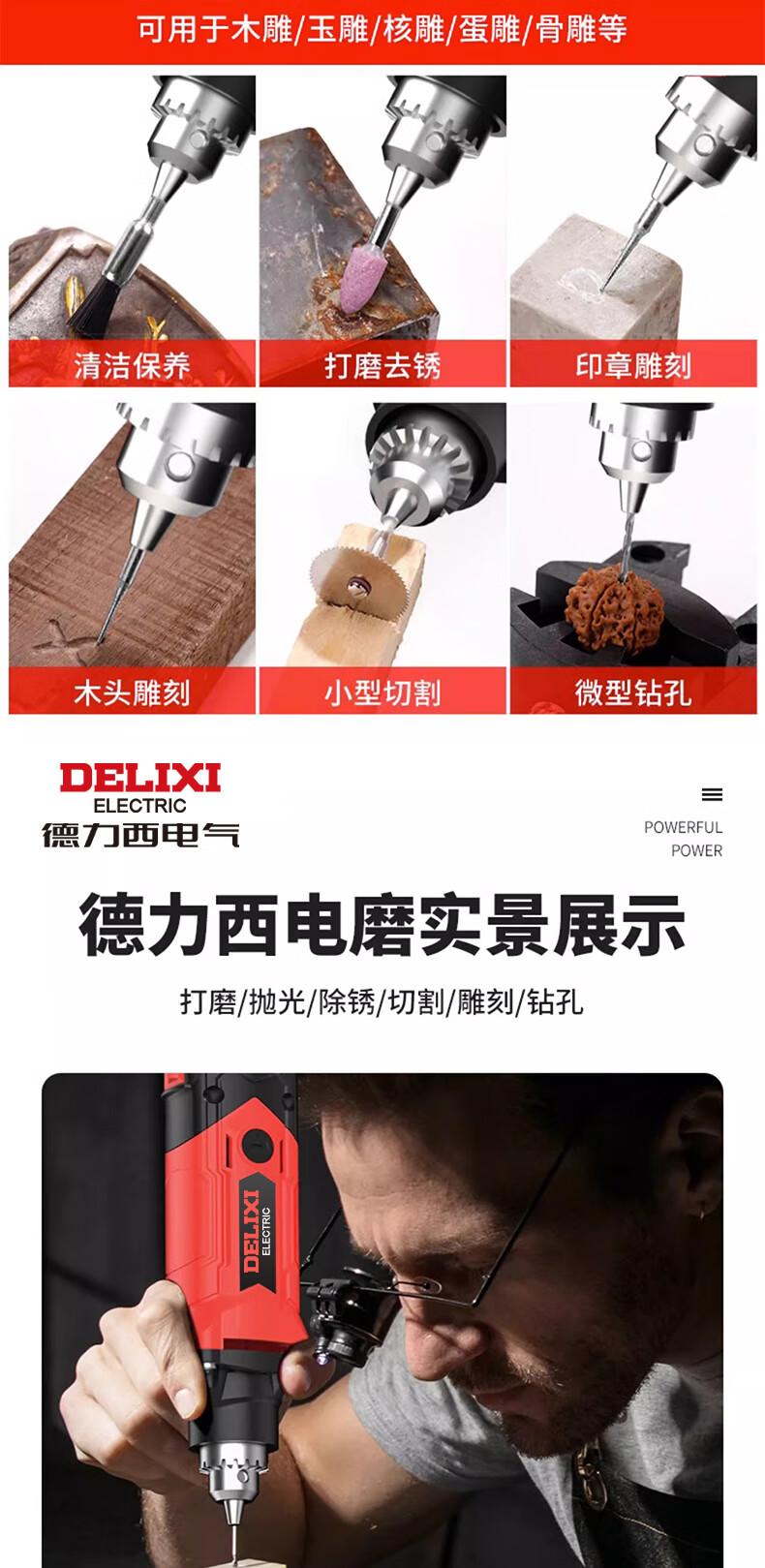 Delixi electric grinder high-power small handheld speed adjustment polishing jade wood carving cutting tool polishing artifact fortune model 285W six-speed speed adjustment + 64-piece set