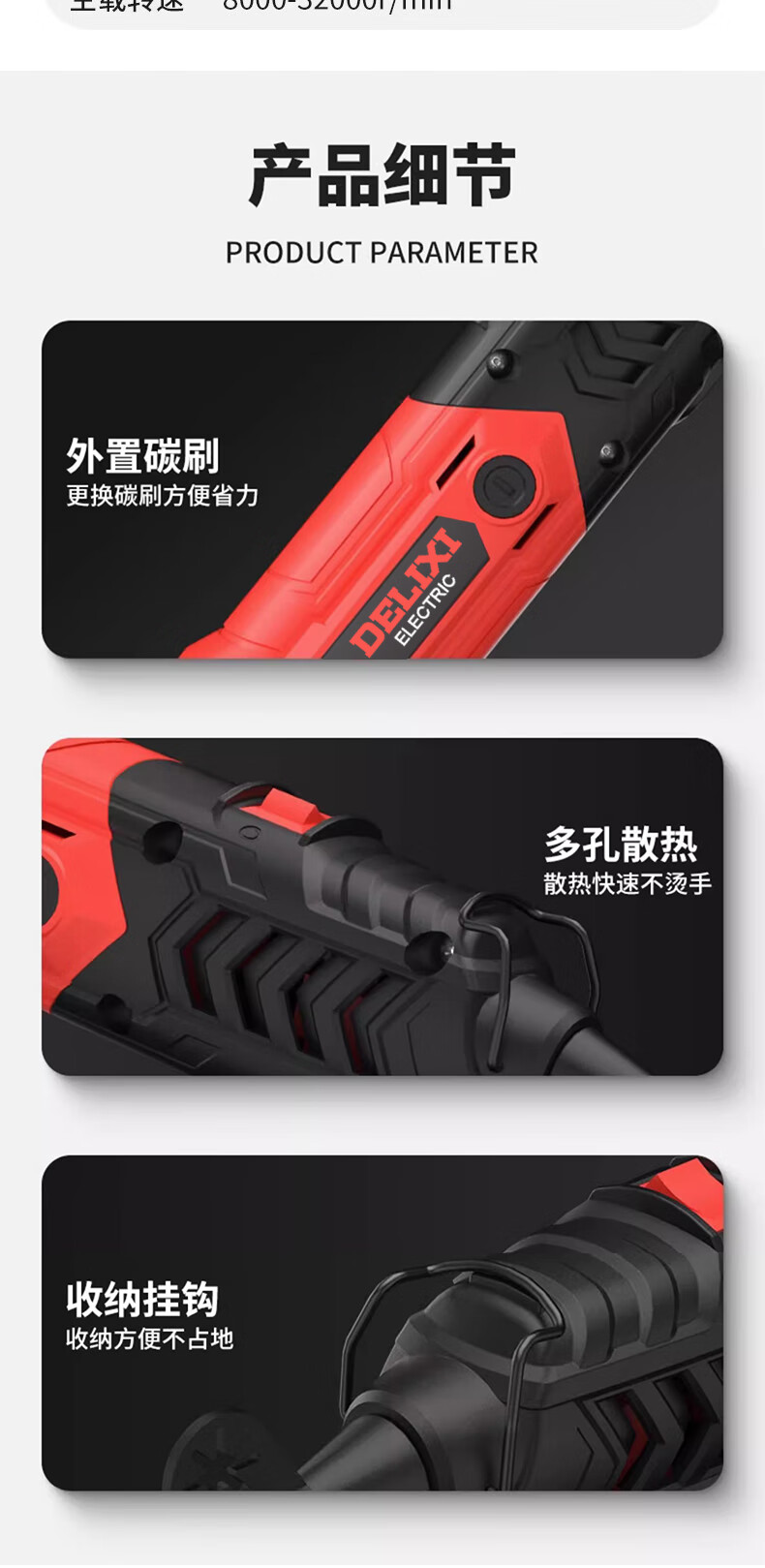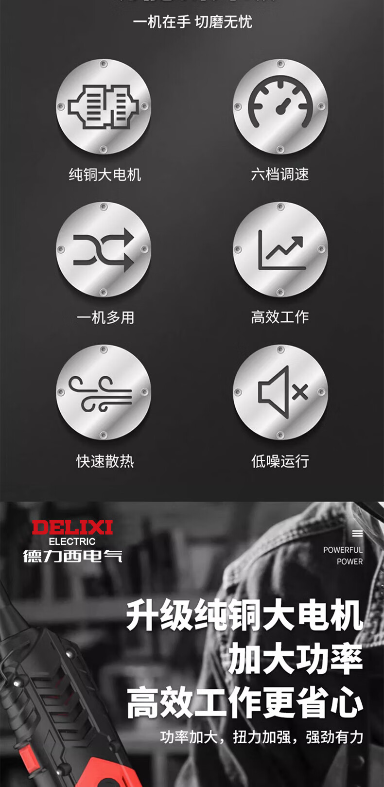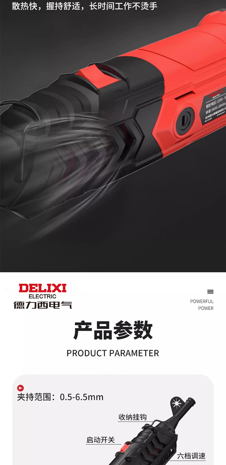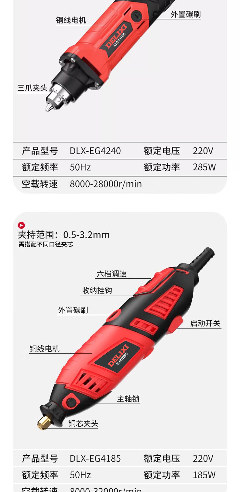 Delixi electric grinder high-power small handheld speed adjustment polishing jade wood carving cutting tool polishing artifact fortune model 285W six-speed speed adjustment + 64-piece set