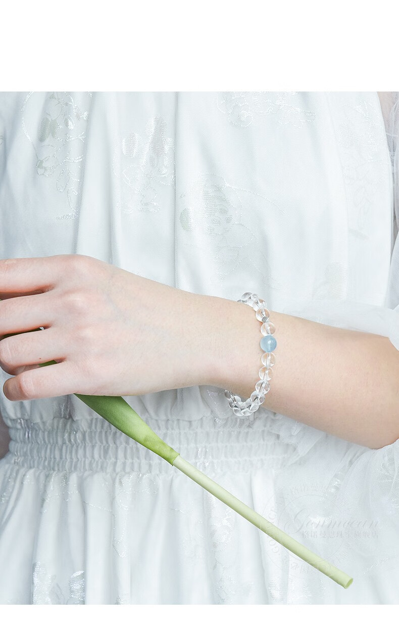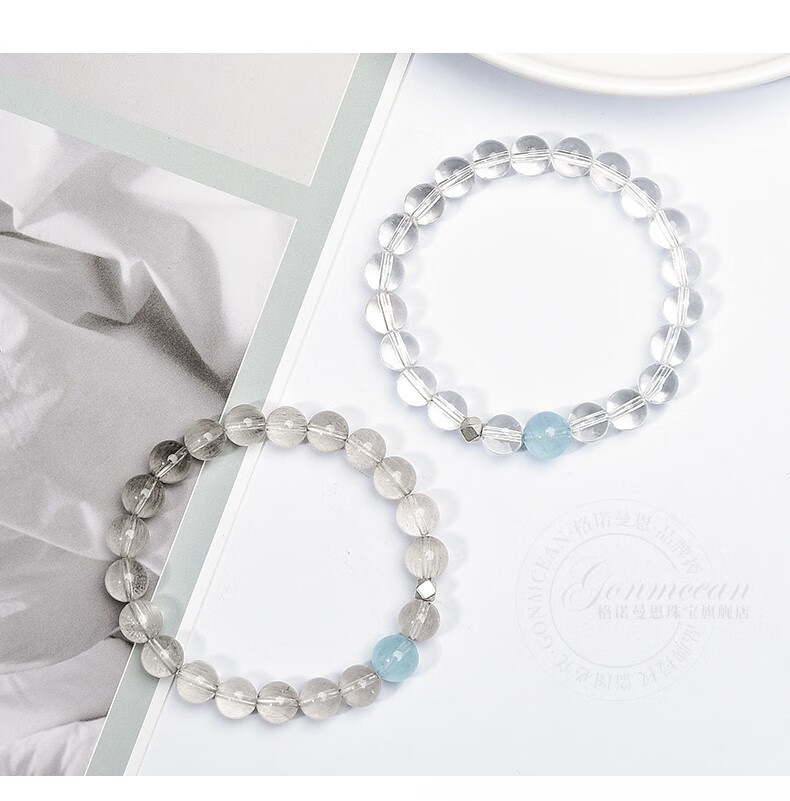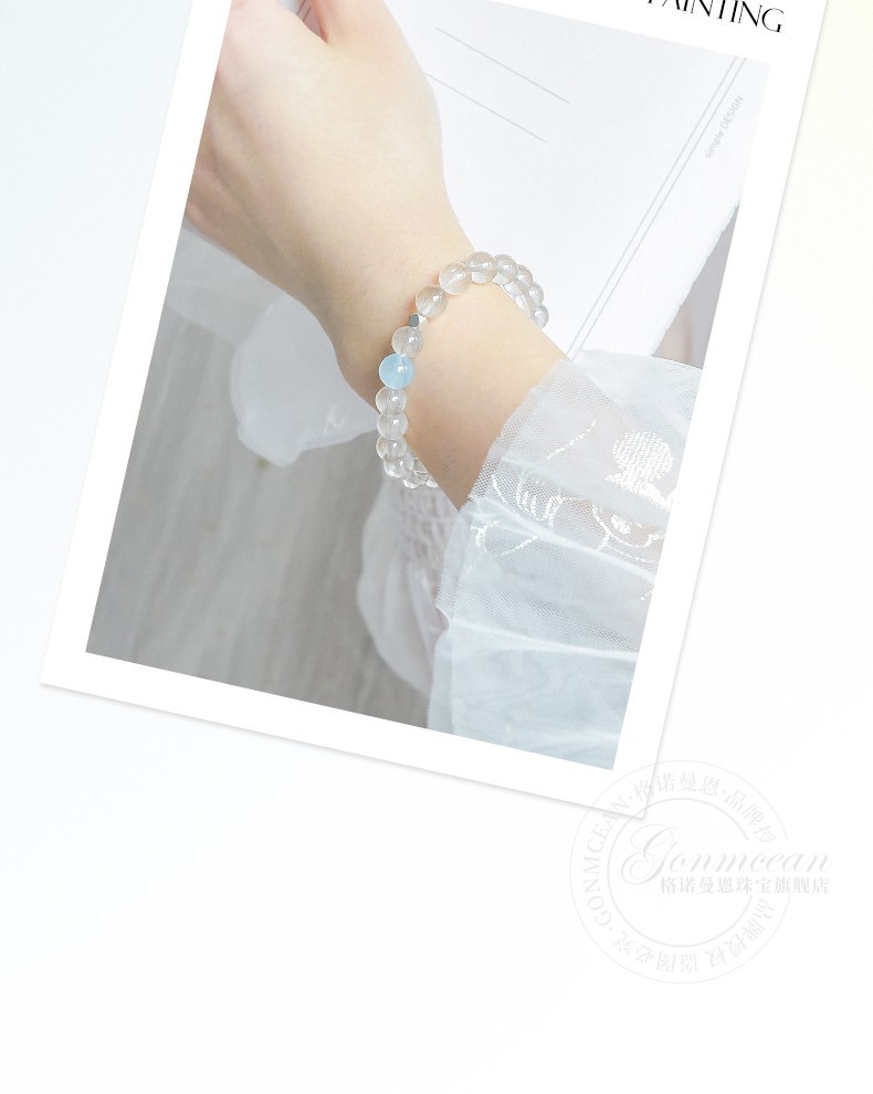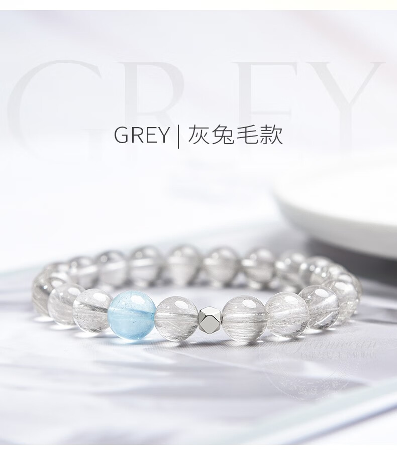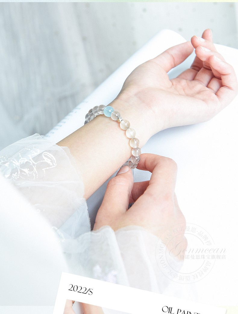 GONMCEAN white crystal bracelet for female students, aquamarine gray rabbit hair crystal bracelet jewelry, simple gift, gray rabbit hair style