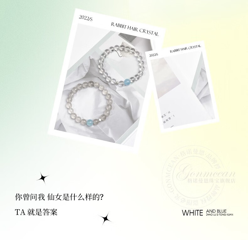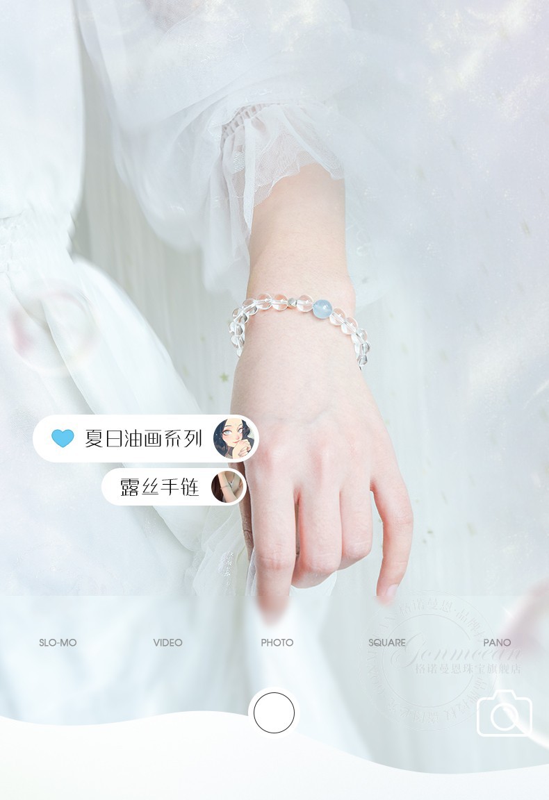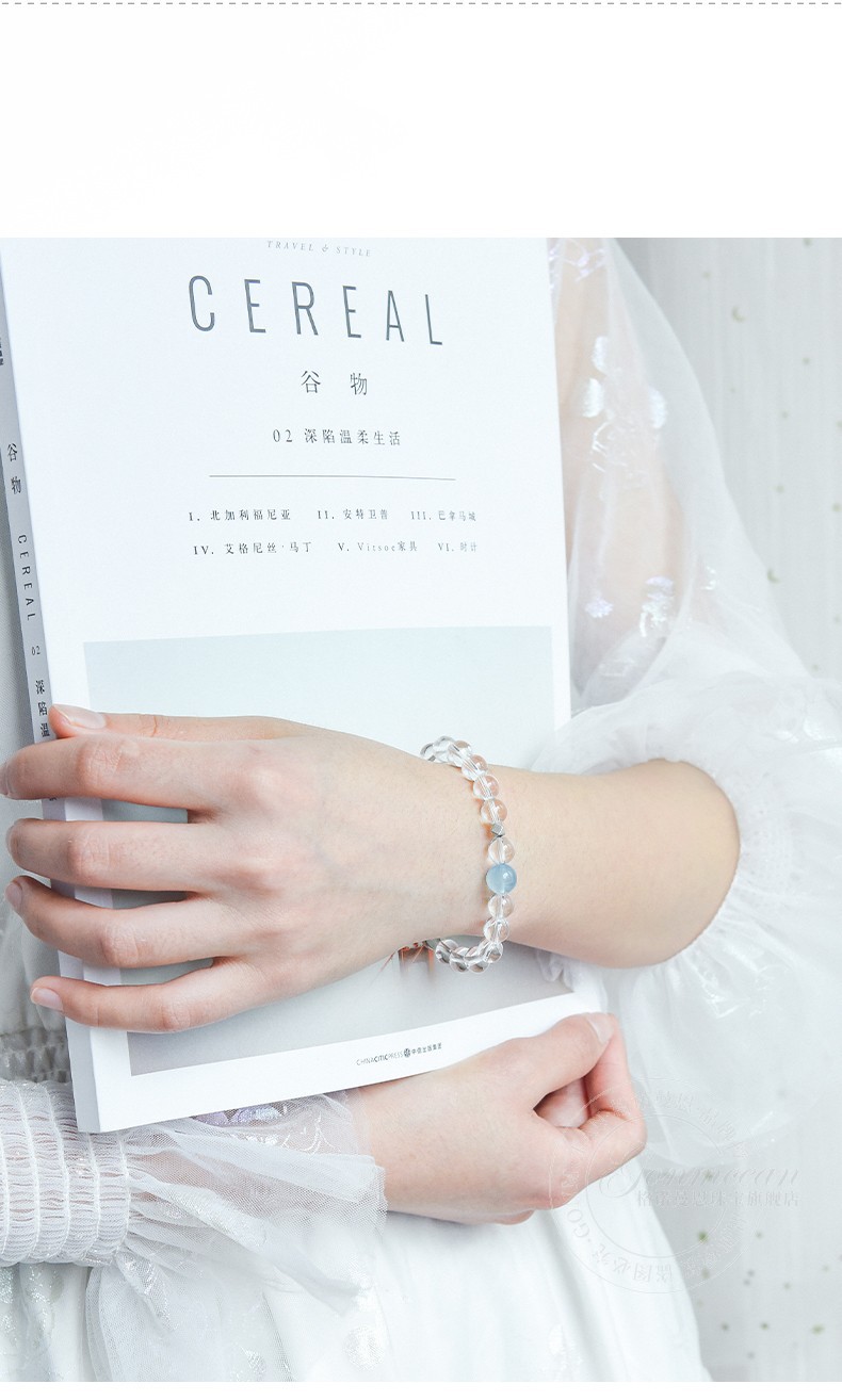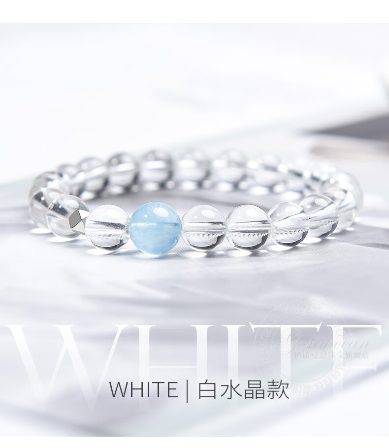GONMCEAN white crystal bracelet for female students, aquamarine gray rabbit hair crystal bracelet jewelry, simple gift, gray rabbit hair style