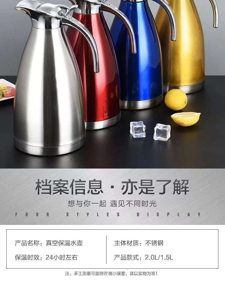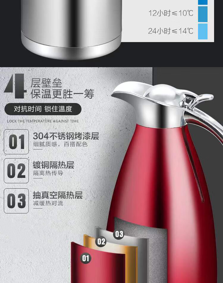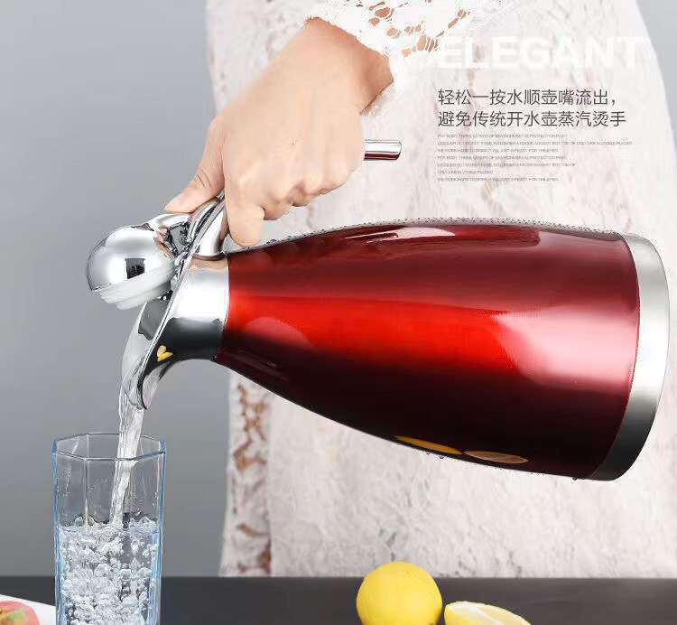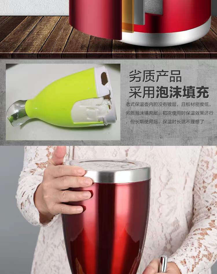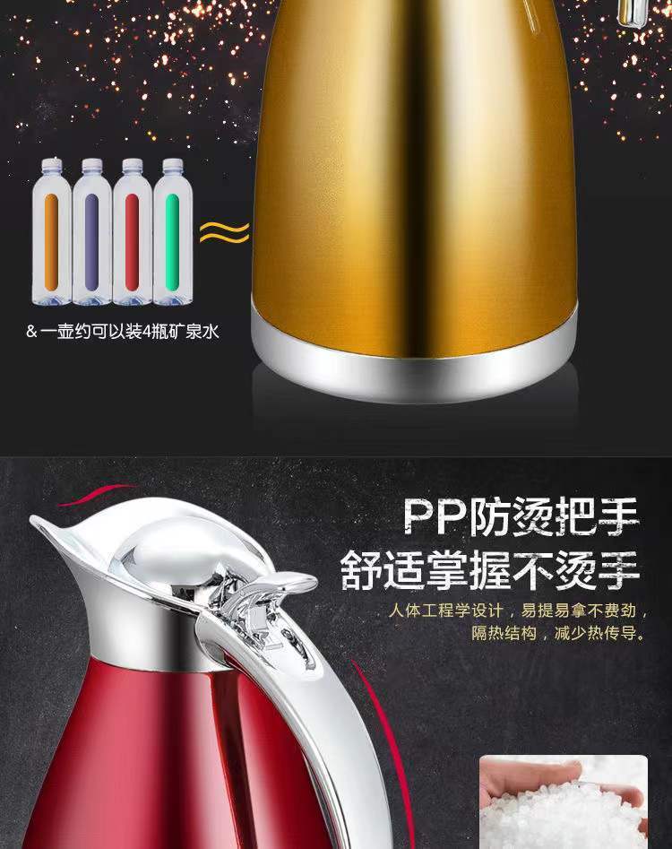 Poqing stainless steel vacuum insulated kettle household large-capacity thermos flask hot water bottle thermos kettle 2 liters L Chinese red large capacity 2L (vacuum insulated kettle)