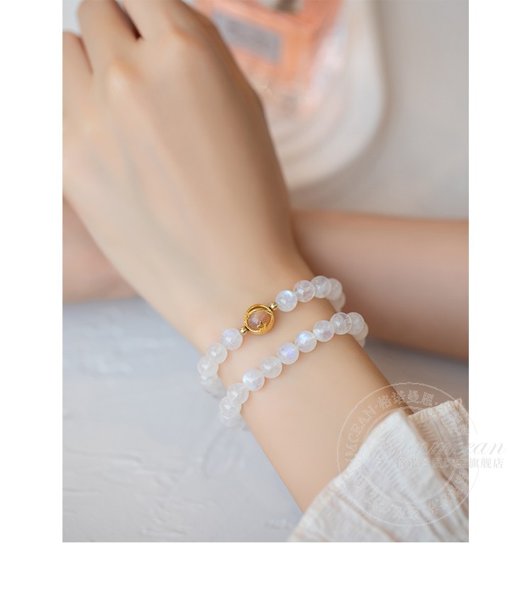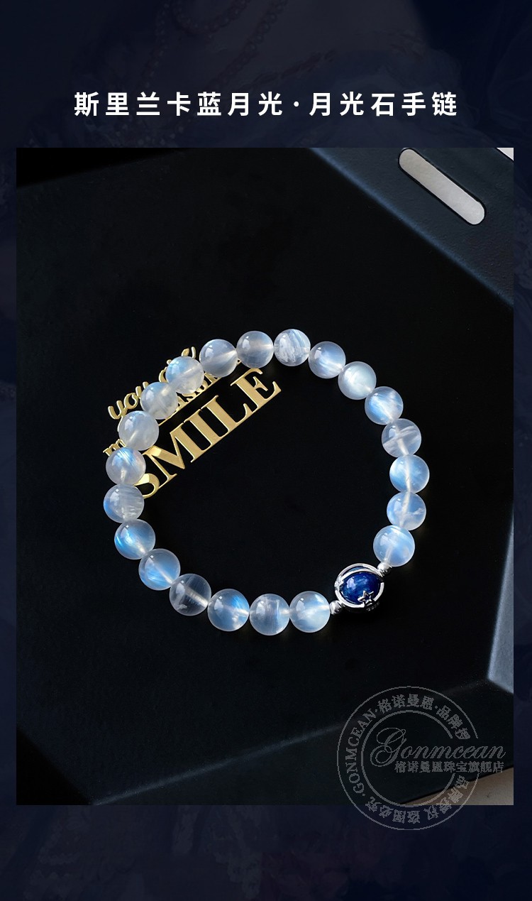 GONMCEAN Sri Lankan Moonstone Bracelet Women's Crystal Buddha Beads Bracelet Silver Jewelry Gift Labradorite Ice Blue Moon Kyanite 8mm