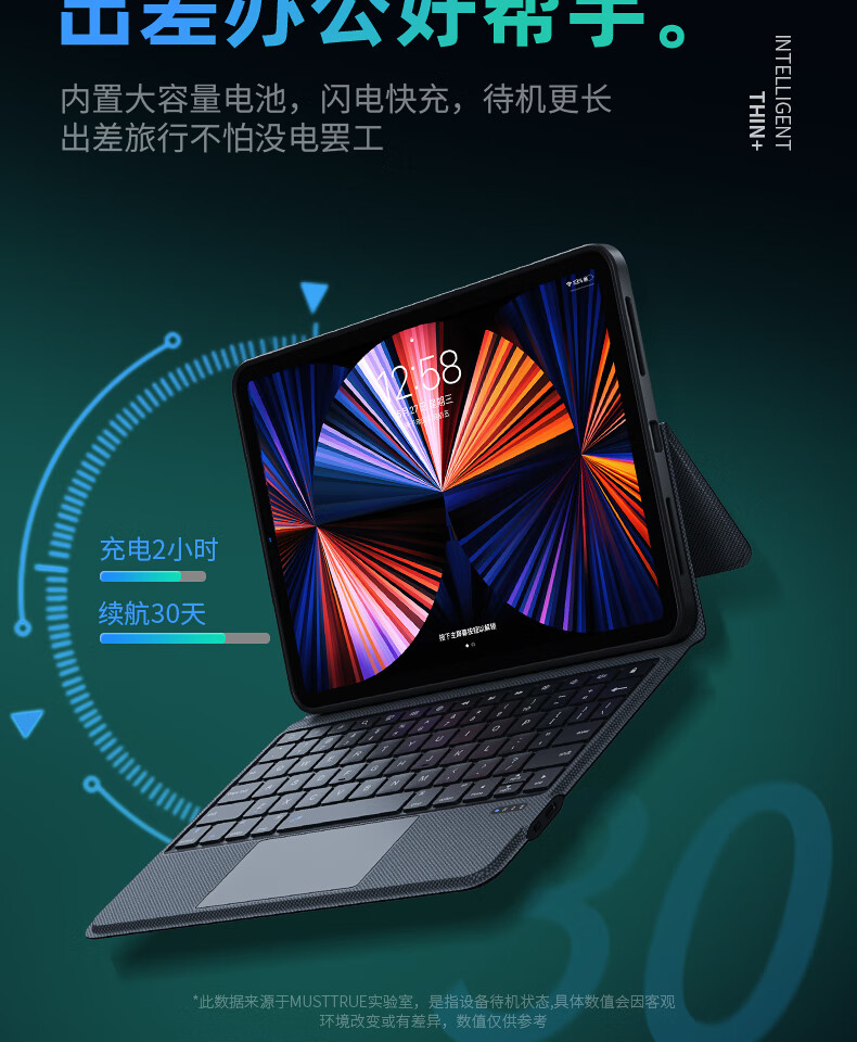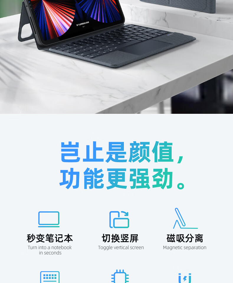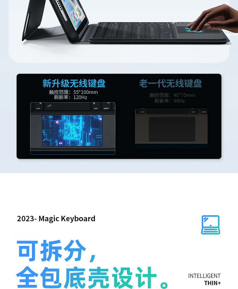 MUSTTRUE Apple iPad Keyboard Case 9th Generation 2021 10.2-inch Magic Bluetooth Keyboard Detachable Magnetic Tablet Case Touch Control Integrated Thin and Light Keyboard + Magnetic Protective Case Suitable for iPad 7/8/9th Generation 10.2-inch