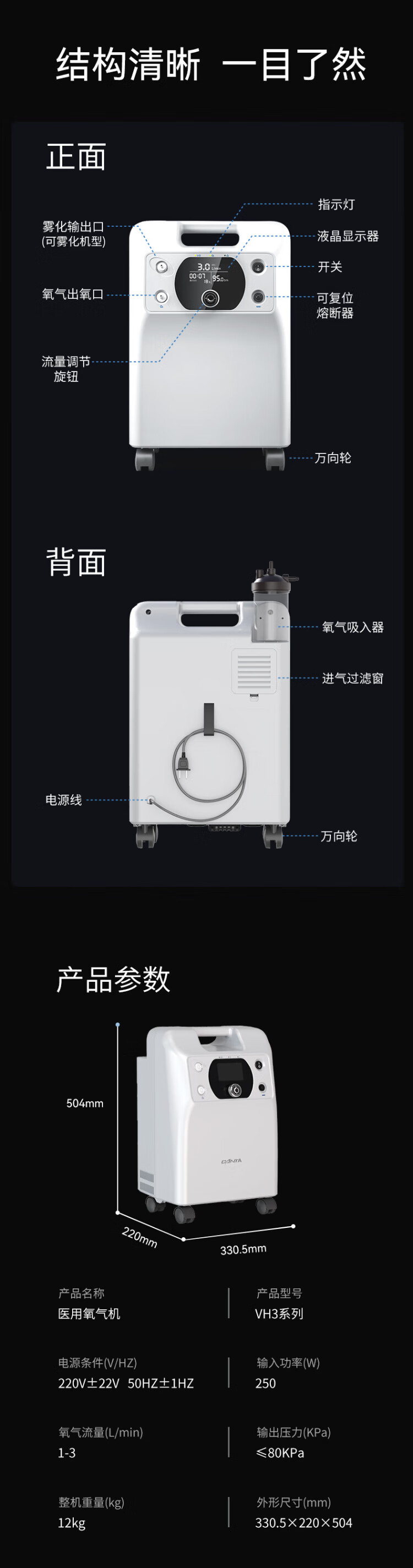 Turtle Medical Oxygen Concentrator 3L Increases Oxygen Concentration Lightly Upgrades Oxygen Inhaler for Elderly Pregnant Women Oxygen Machine VP3 Oxygen Bag