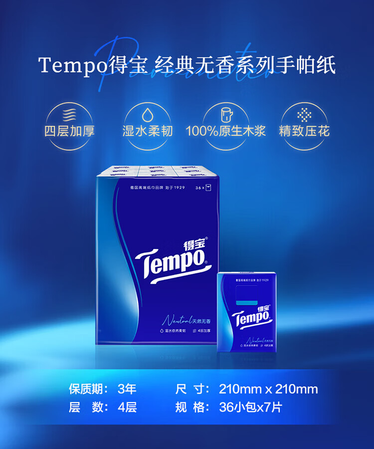 Depot Tempo Depot paper towels 7 pieces 36 small packs natural unscented handkerchief paper 4-layer tissues portable napkins classic unscented handkerchief paper 4 layers 7 sheets * 36 packs