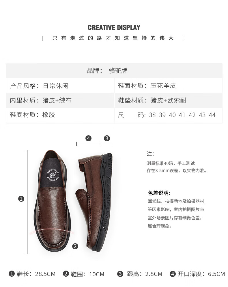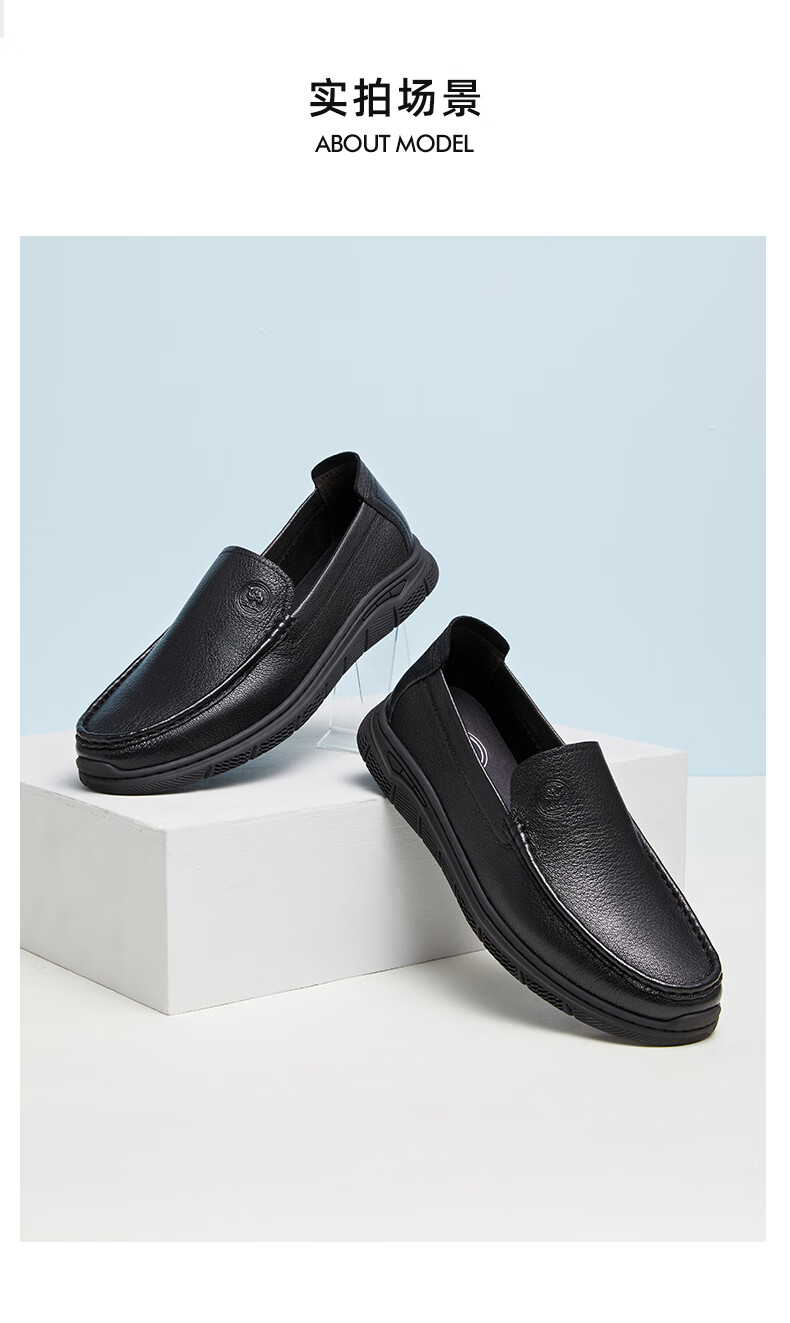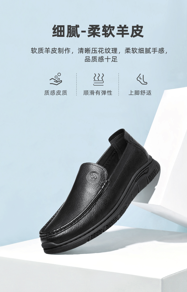 Camel (CAMEL) new soft-soled slip-on leather shoes for men, business casual shoes, light and comfortable loafers, black 41