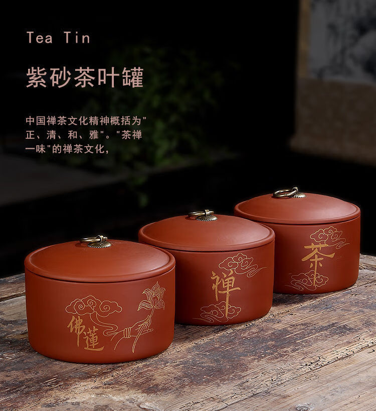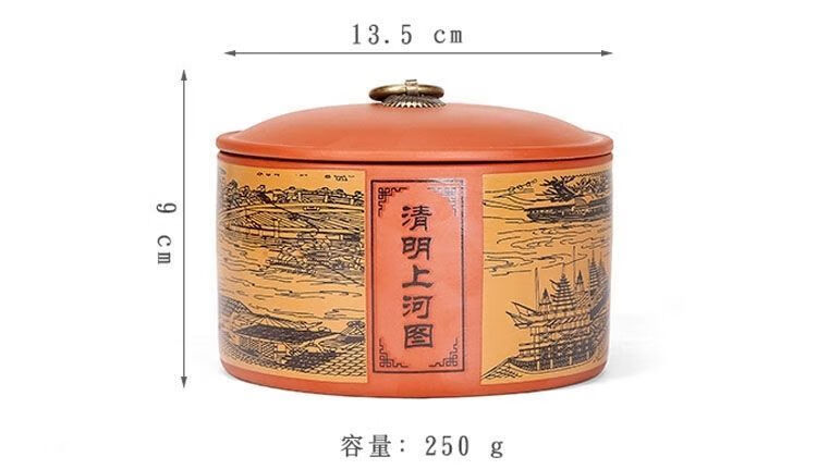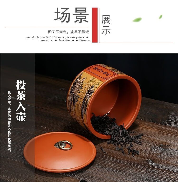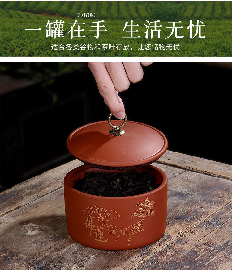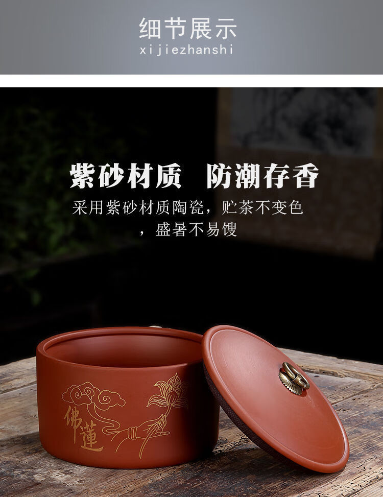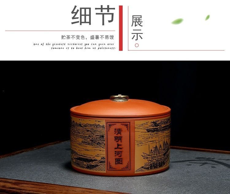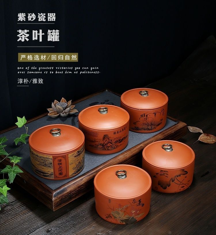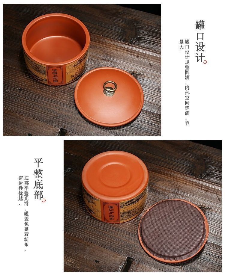 Yujia Road Large Ceramic Tea Can Purple Clay Material Household Pu'er Tea Sealed Storage Tea Packaging Can Fuchun Mountain Residence Picture