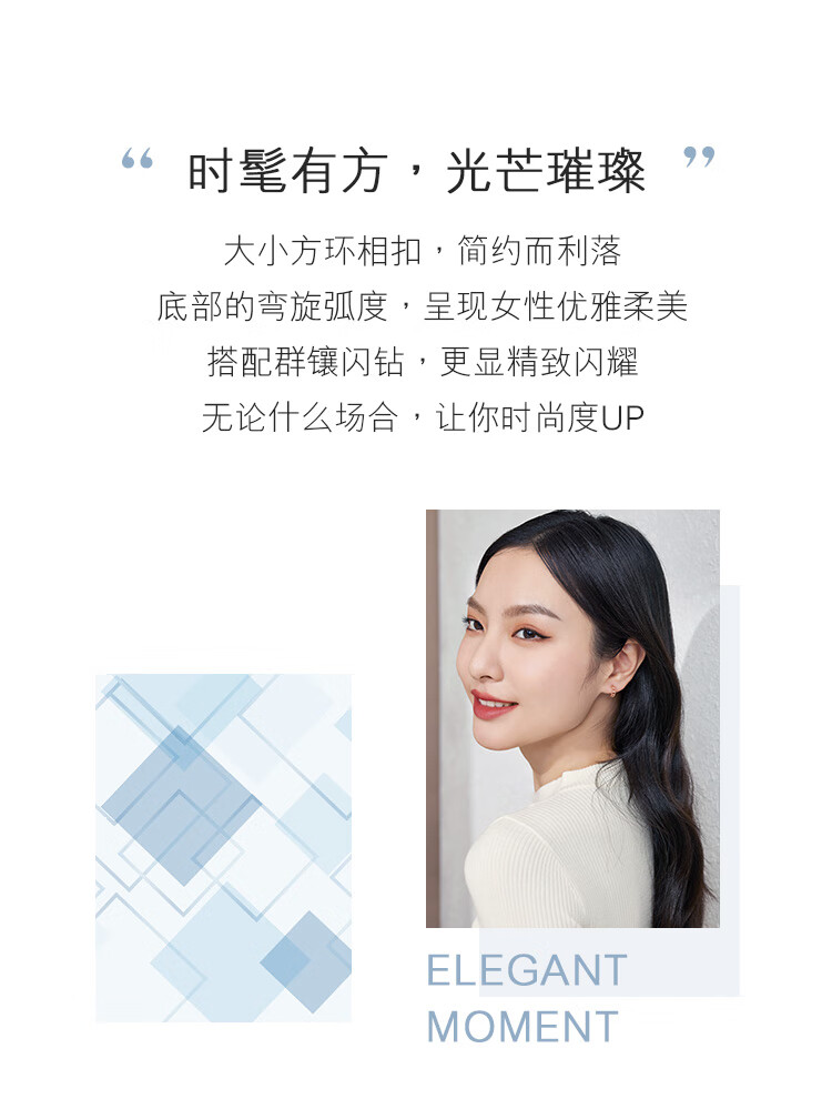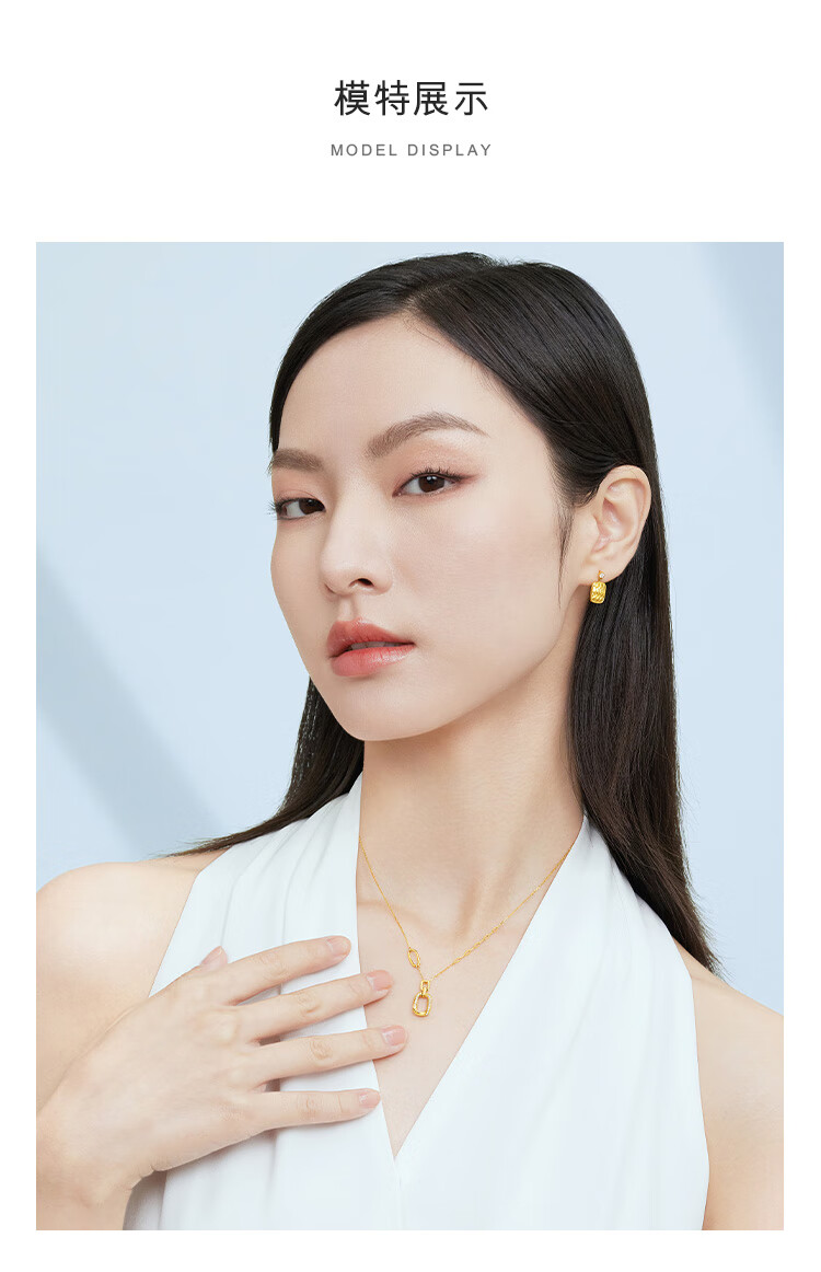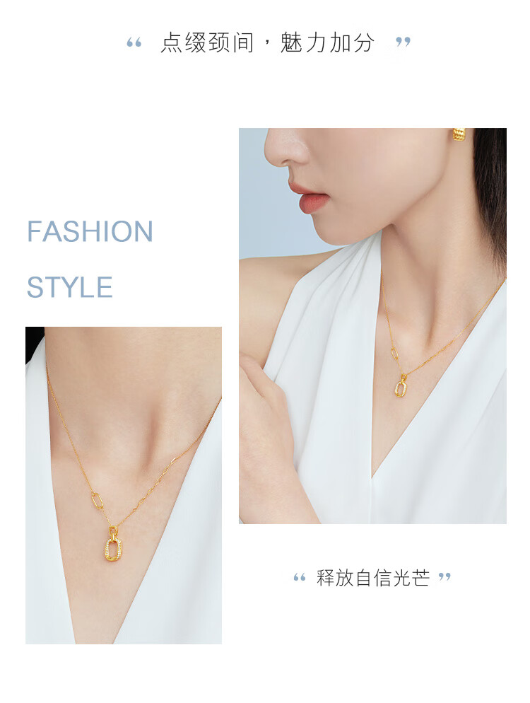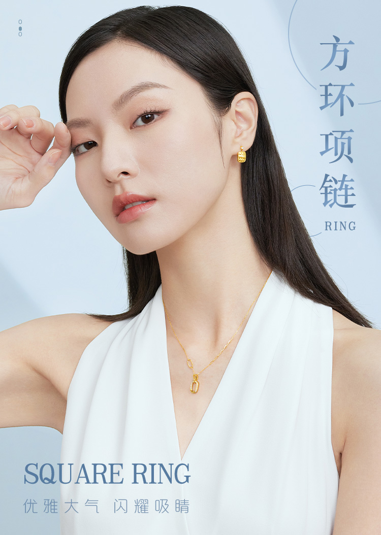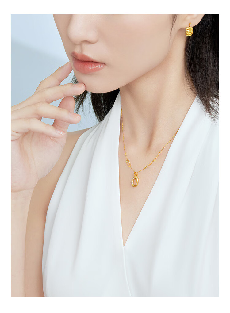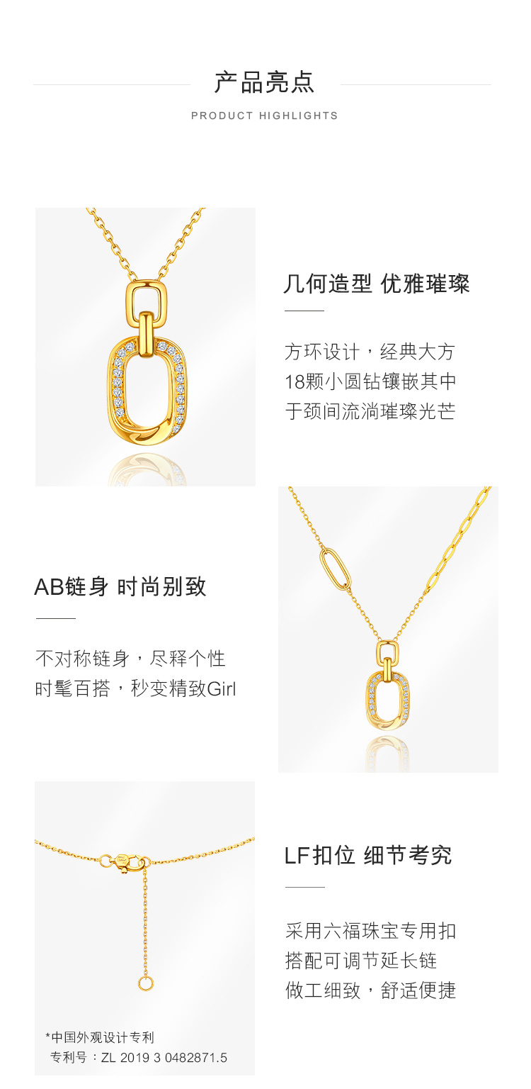 Lukfook Jewelry 18K gold square ring diamond necklace set chain gift cMDSKN0082Y total weight 3.03 grams