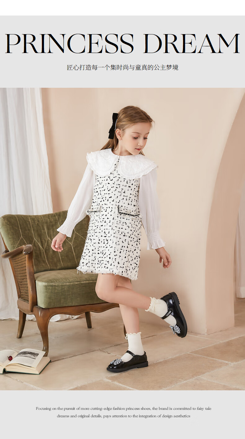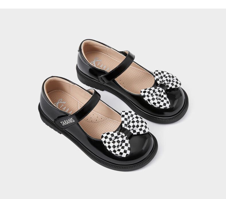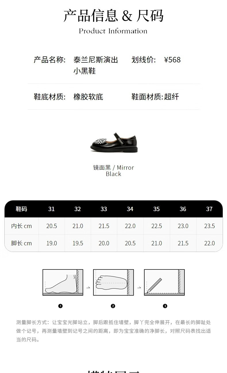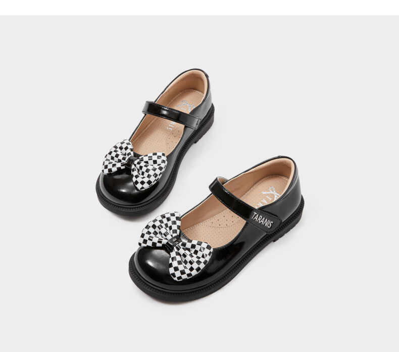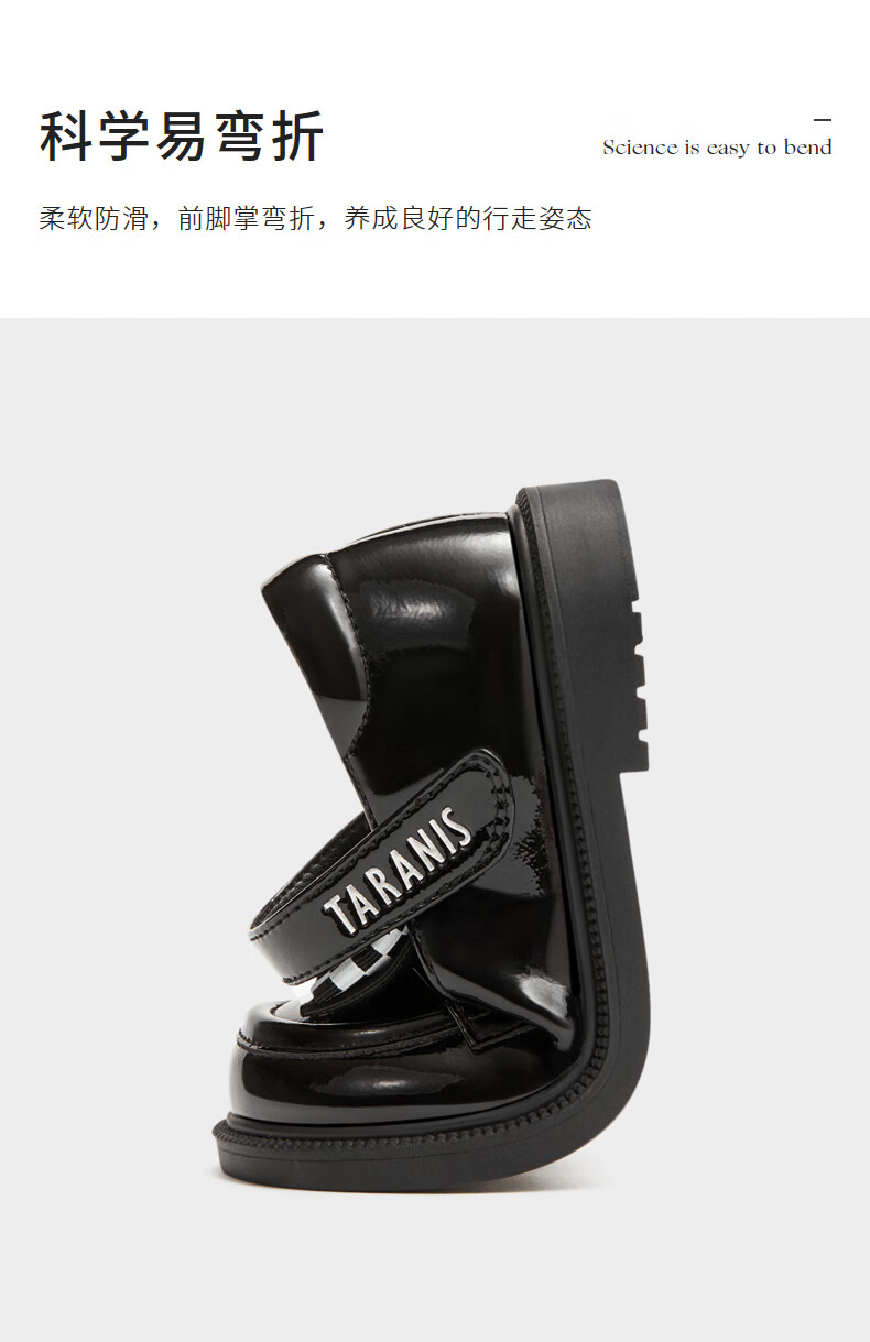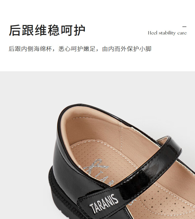 Tyrannis girls' leather shoes spring new children's black leather shoes performance etiquette black leather shoes campus style mirror black 31 inner length 20.5cm