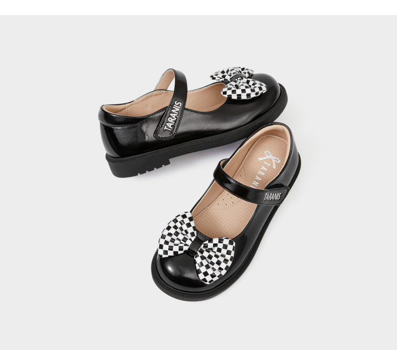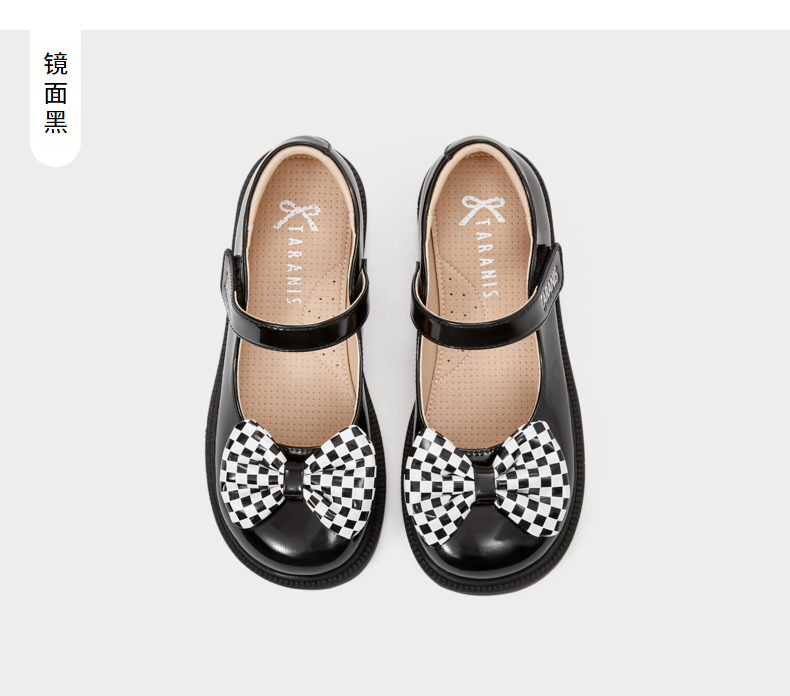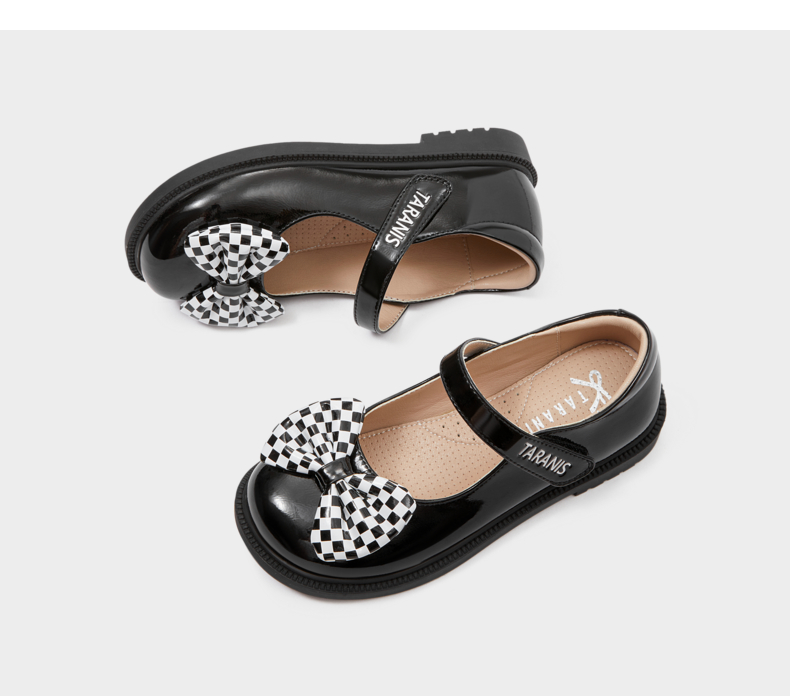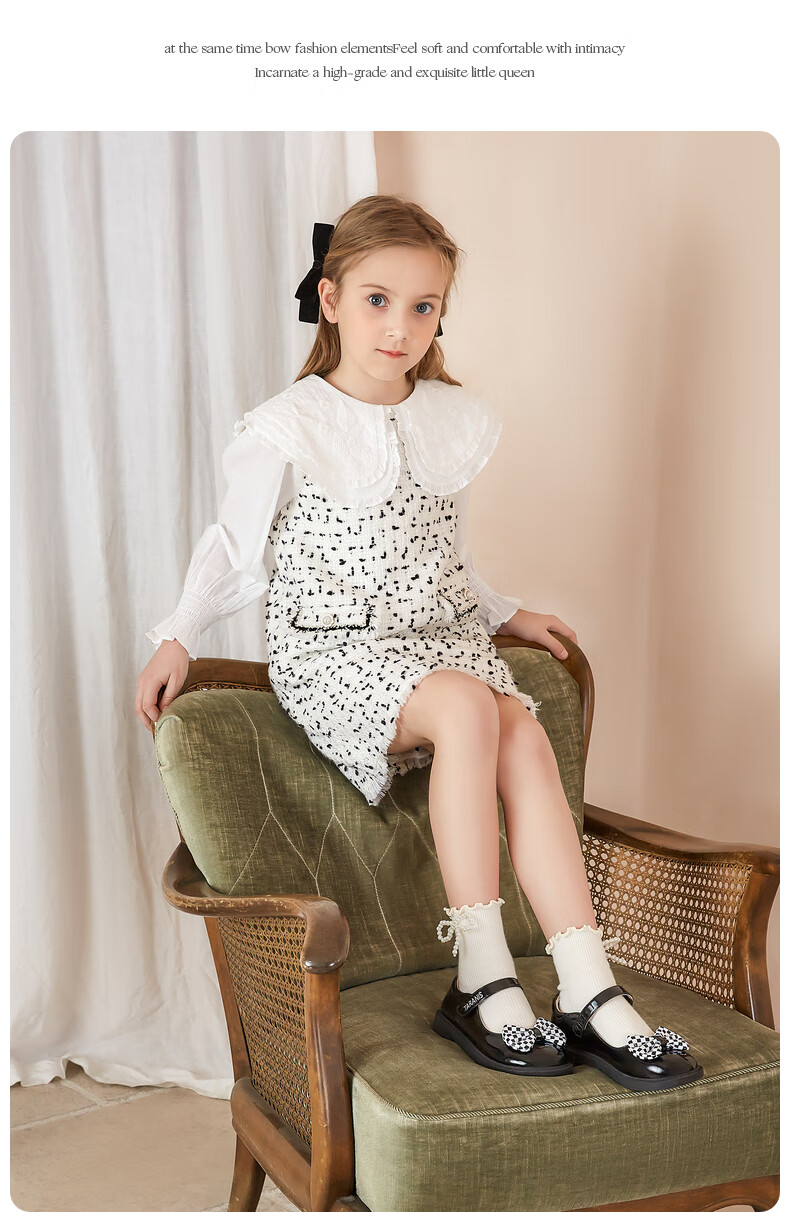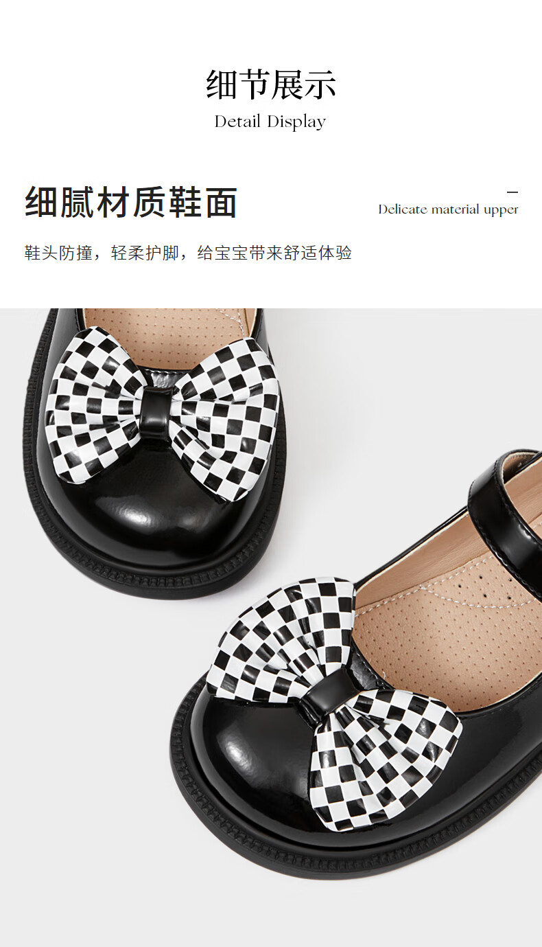 Tyrannis girls' leather shoes spring new children's black leather shoes performance etiquette black leather shoes campus style mirror black 31 inner length 20.5cm