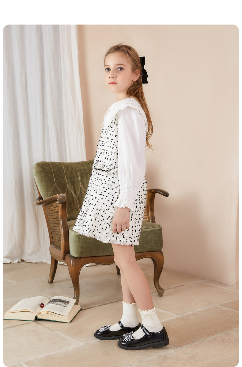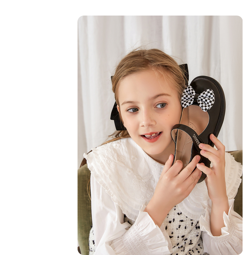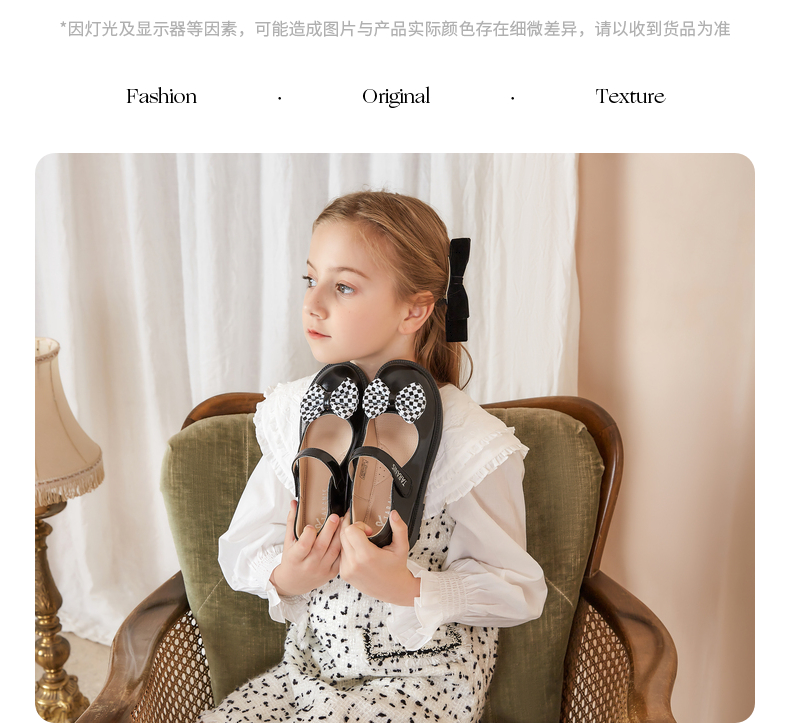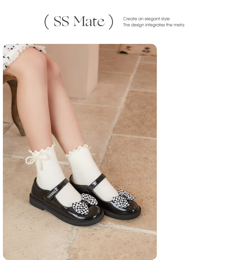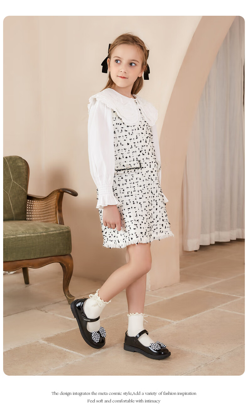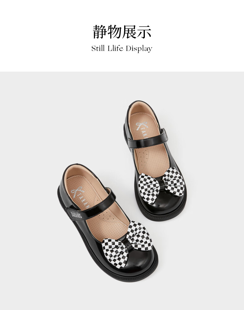 Tyrannis girls' leather shoes spring new children's black leather shoes performance etiquette black leather shoes campus style mirror black 31 inner length 20.5cm