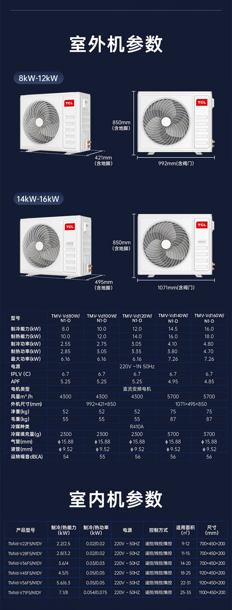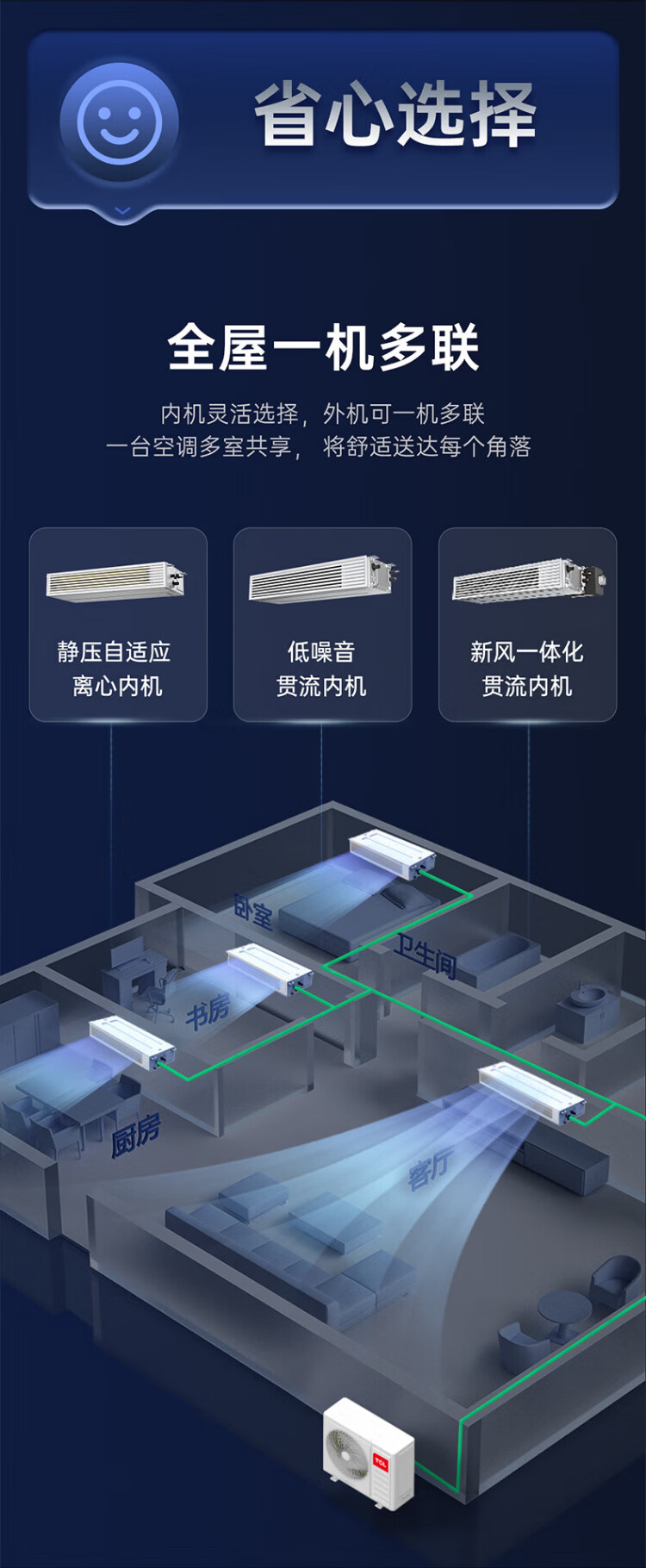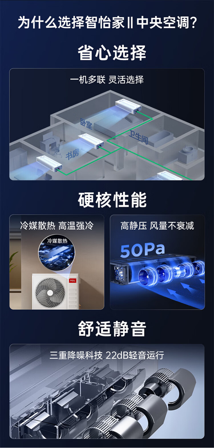 TCL household small blue wing fresh air central air conditioner 3/4/5 HP one to two three four five duct machine 6/7/10 HP variable frequency one level energy efficiency hidden whole house air conditioner multi-split 4 HP one to three free survey cross flow level one