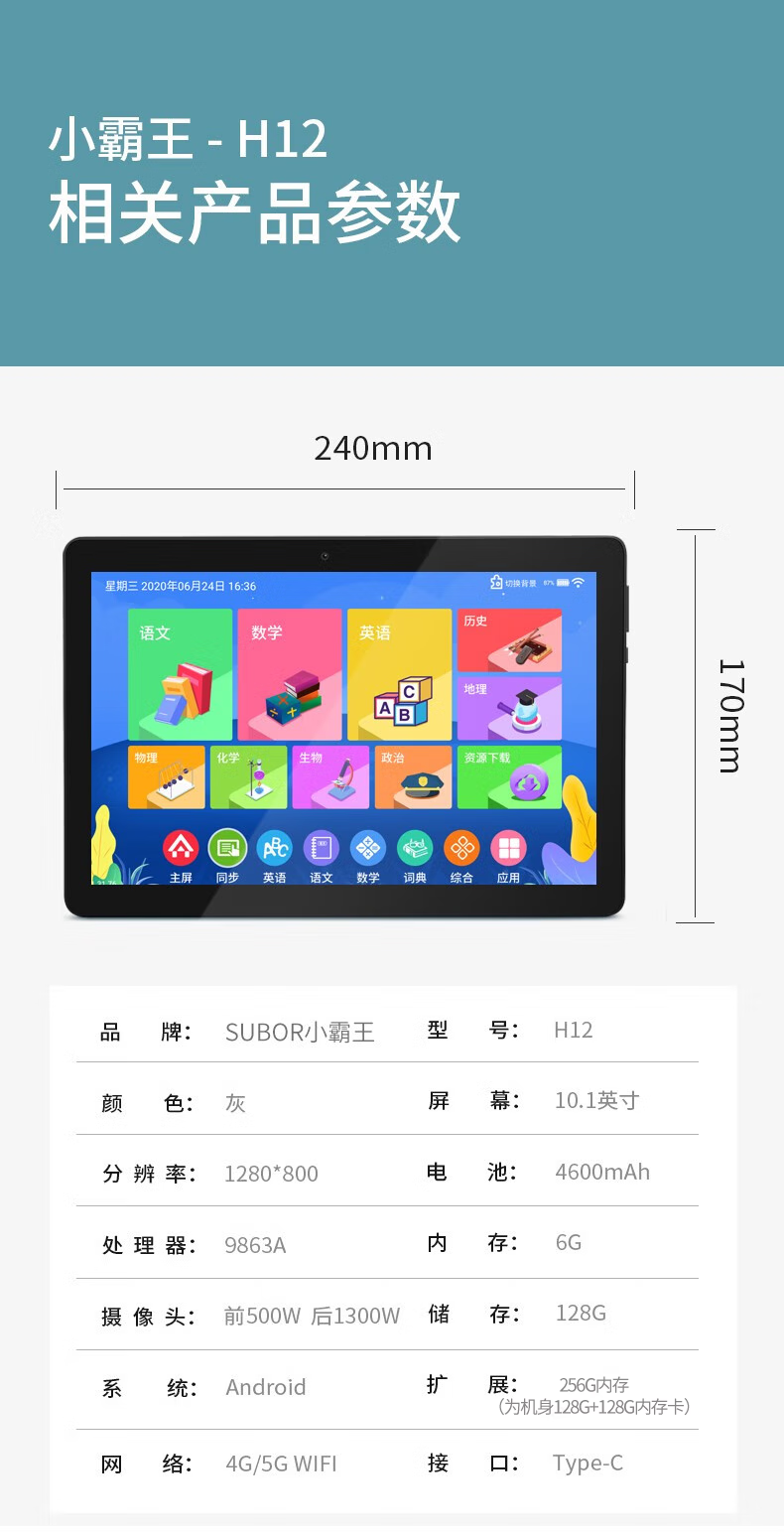 Xiaobawang H12 Tablet Learning Machine English Tutoring Machine Primary School Junior High School High School Textbook Course Synchronization Student Children AR Smart Eye Finger Reading Intelligent Point Reading Machine Eight-Core 4G+128G Nine Textbook Synchronization