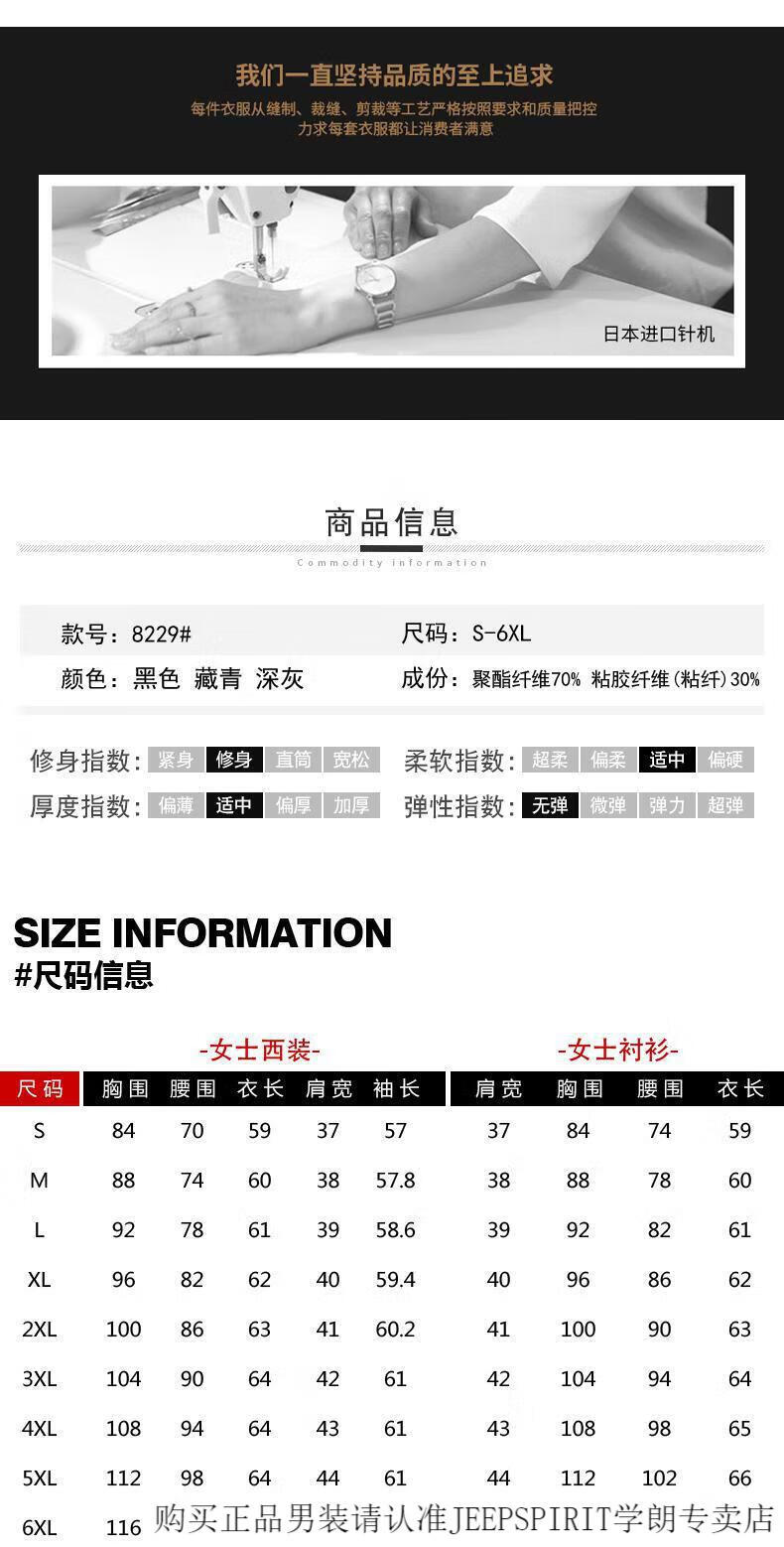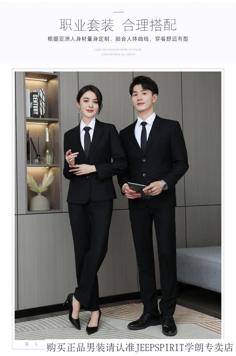 JEEP SPIRIT Men's Suit Suit Male College Student Formal Wear Teacher Interview Men's Suit Jacket Autumn and Winter Professional Wear 3-piece Set Women's Black Jacket + Pants + Shirt 3XL