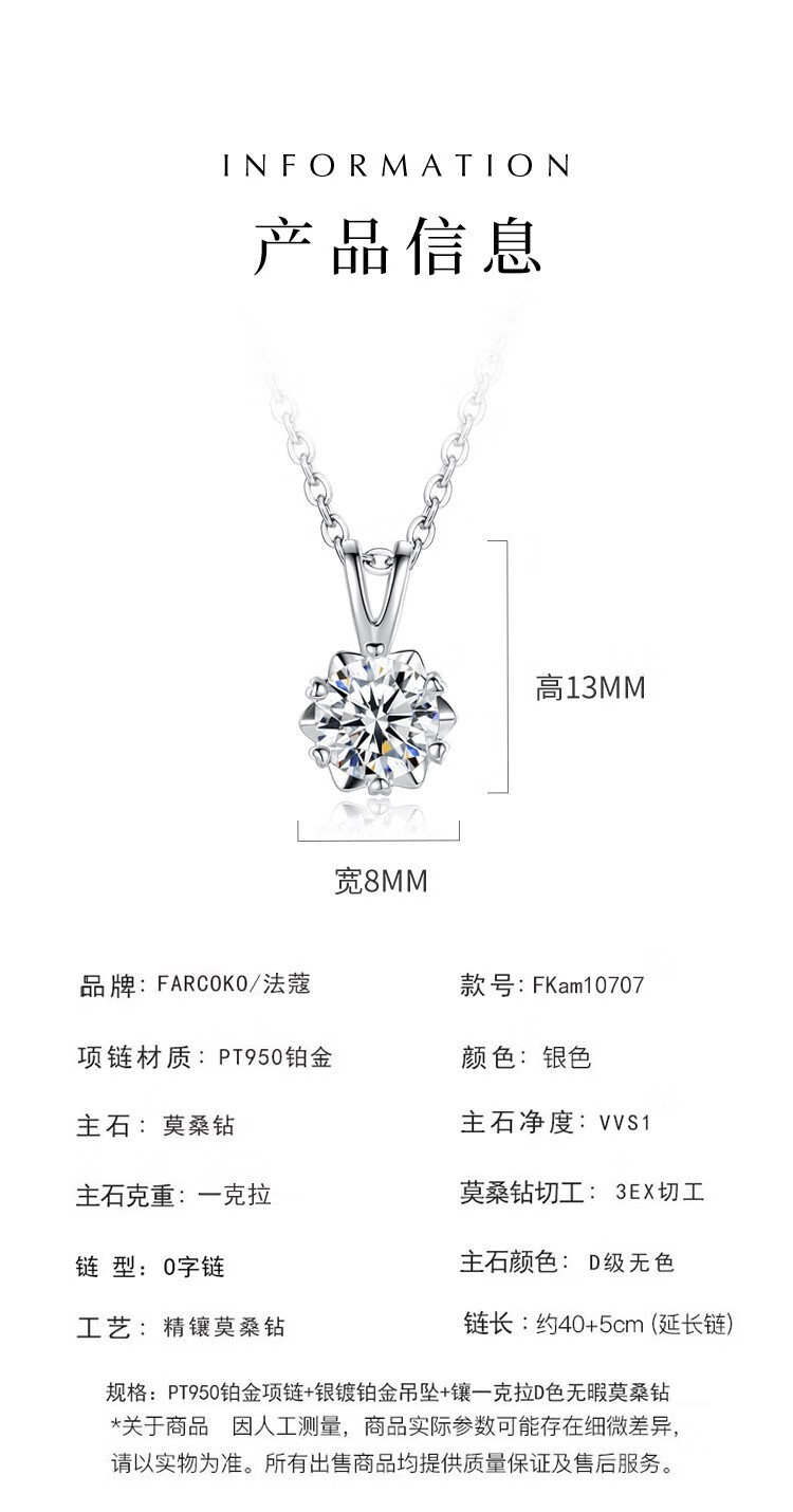 Farcoko PT950 Platinum Necklace for Women Hexagram Platinum Practical Heartfelt Birthday Gift for Girlfriend and Wife Platinum Necklace + Brilliant Hexagram SF Express
