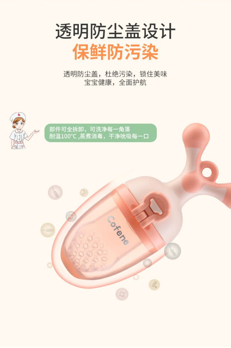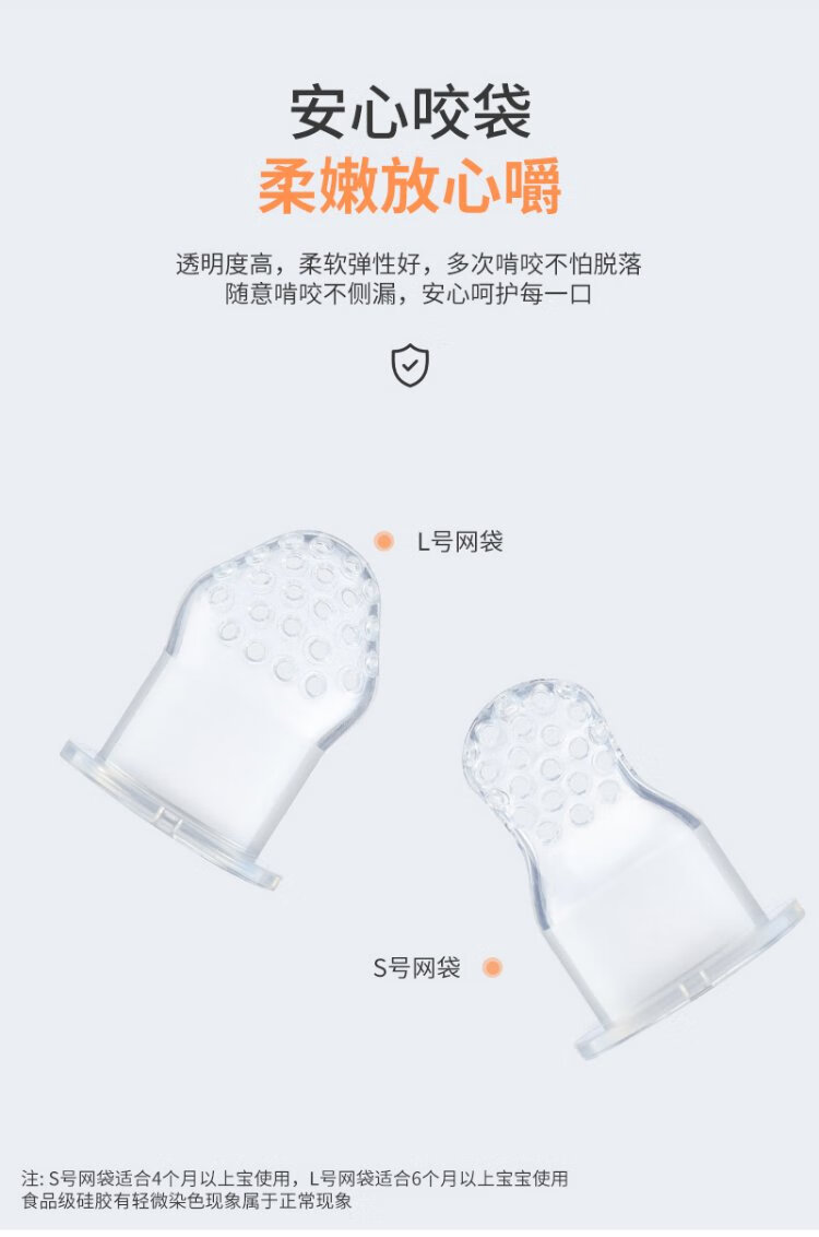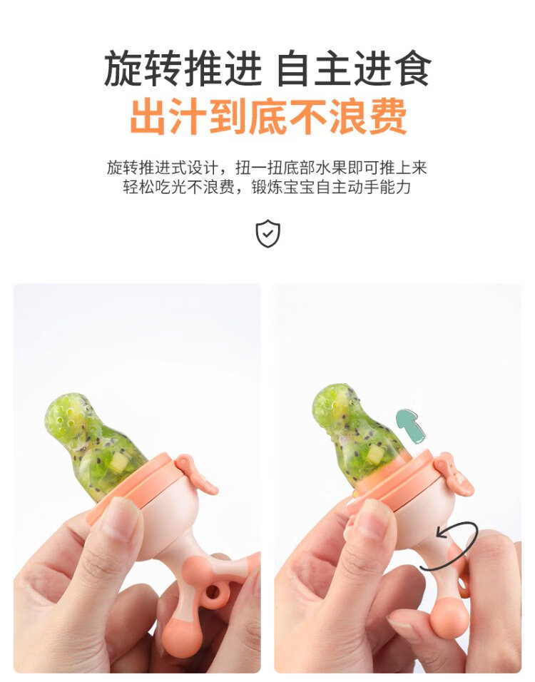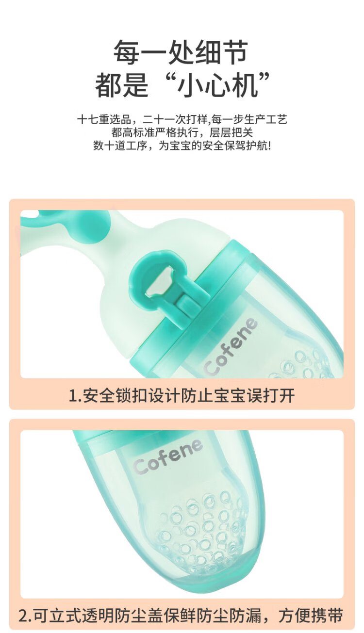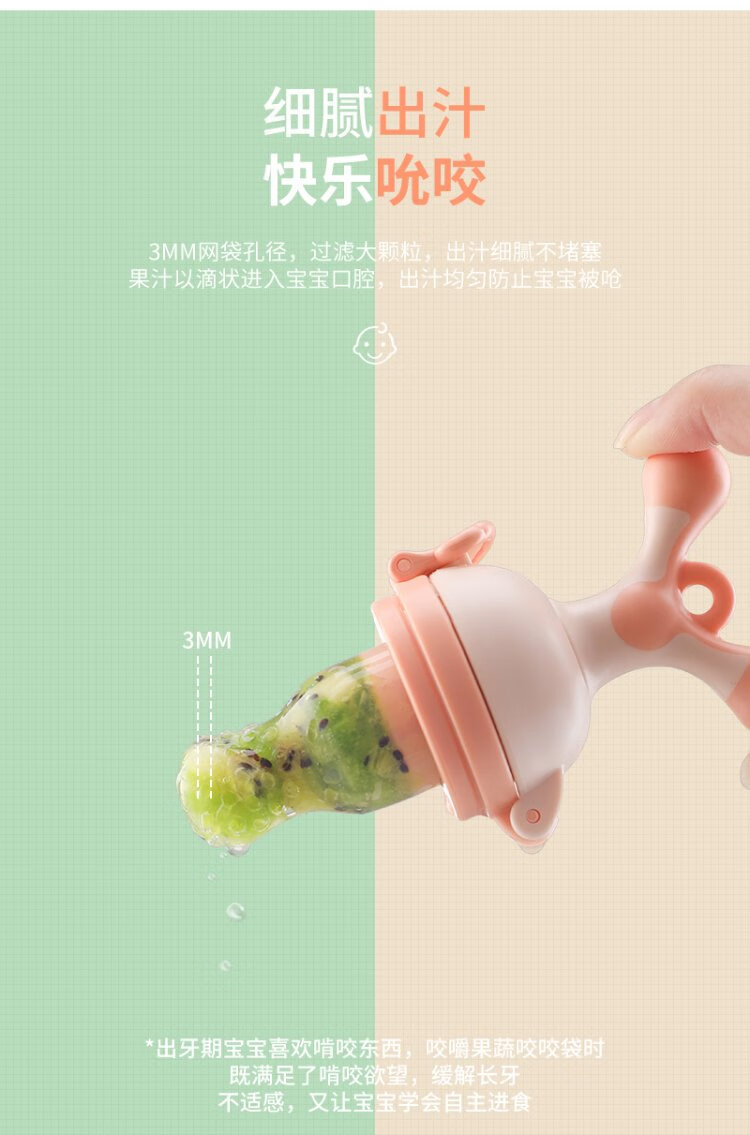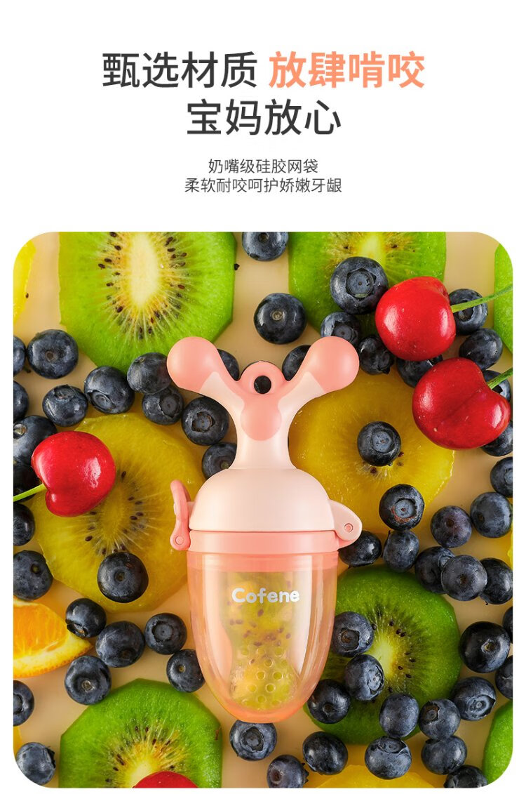 Cofene Bite Baby Food Bite Bag Fruit and Vegetable Teether Baby Fruit Food Complementary Pushable Pushable Bite Water Green (Size + L) + Anti-drop Chain