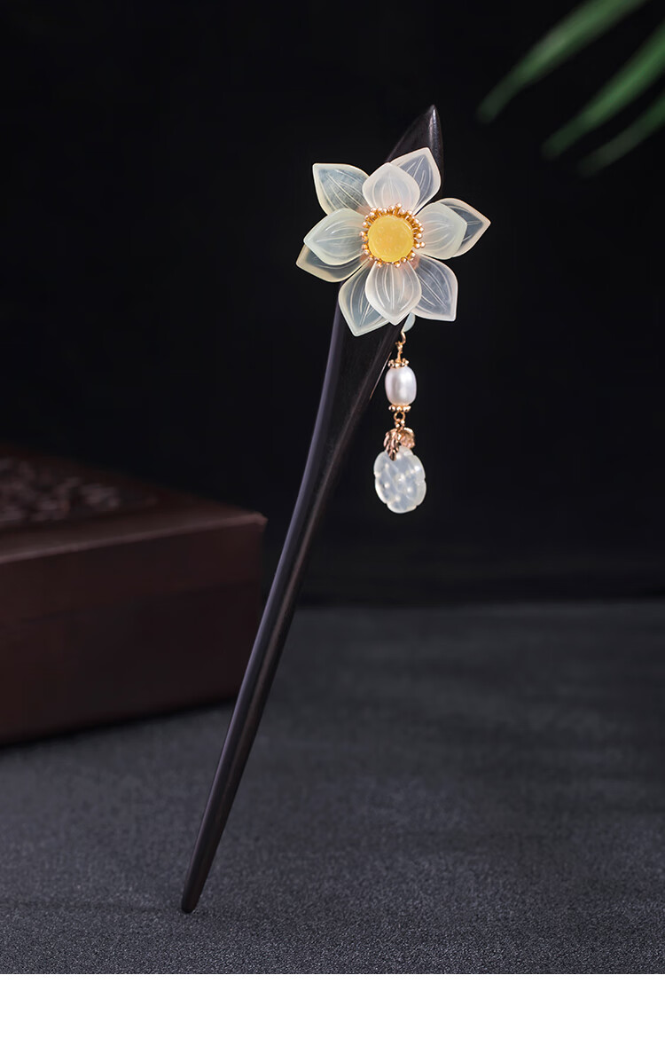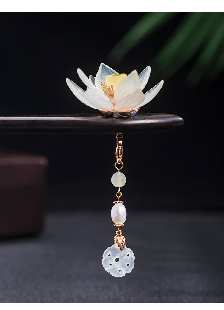 Meng Junchen's black sandalwood jade lotus hairpin, ancient style Hanfu hairpin, updo hairpin, step shaking tassel birthday gift for girlfriend, lotus tassel hairpin