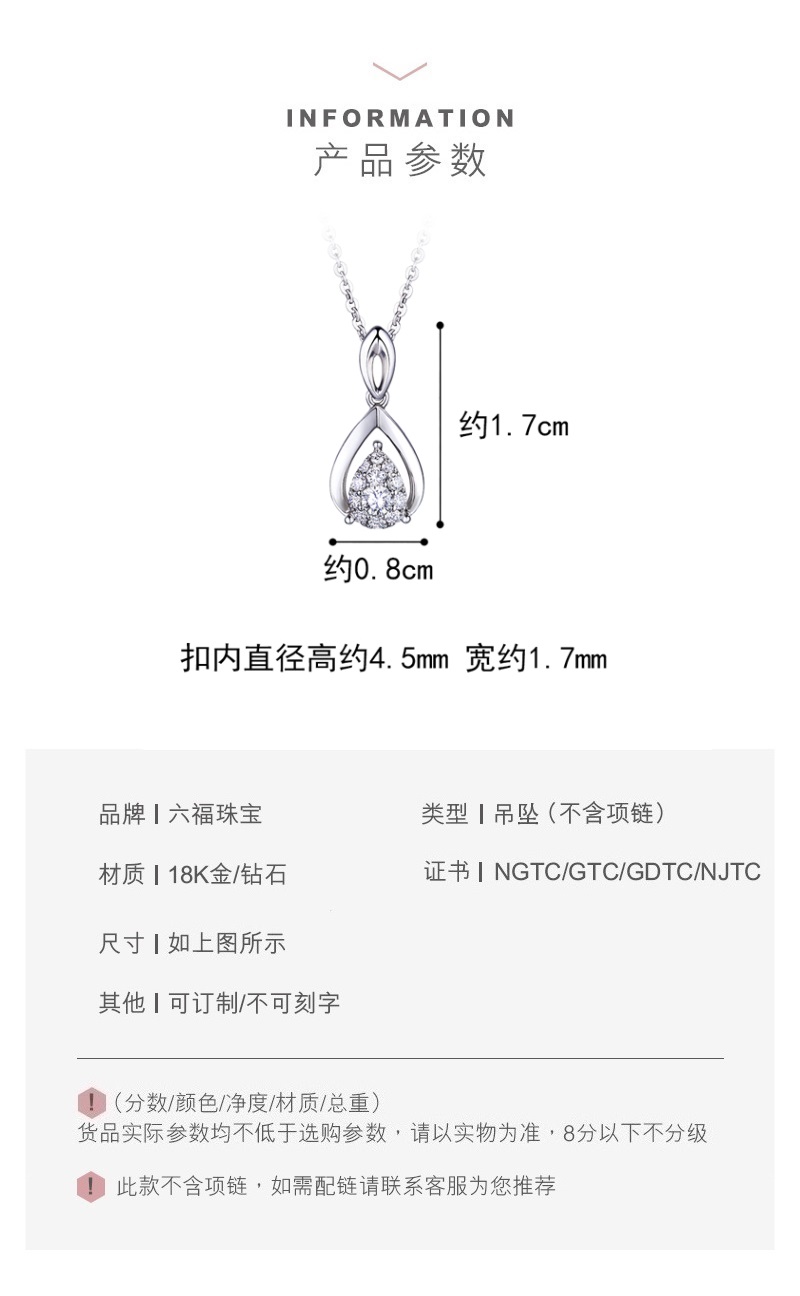 Lukfook Jewelry Liangju Series 18K Gold Water Drop Shape Diamond Pendant Pendant without Necklace Two Colors Available CL-29629 Total Weight 0.91g Rose Color