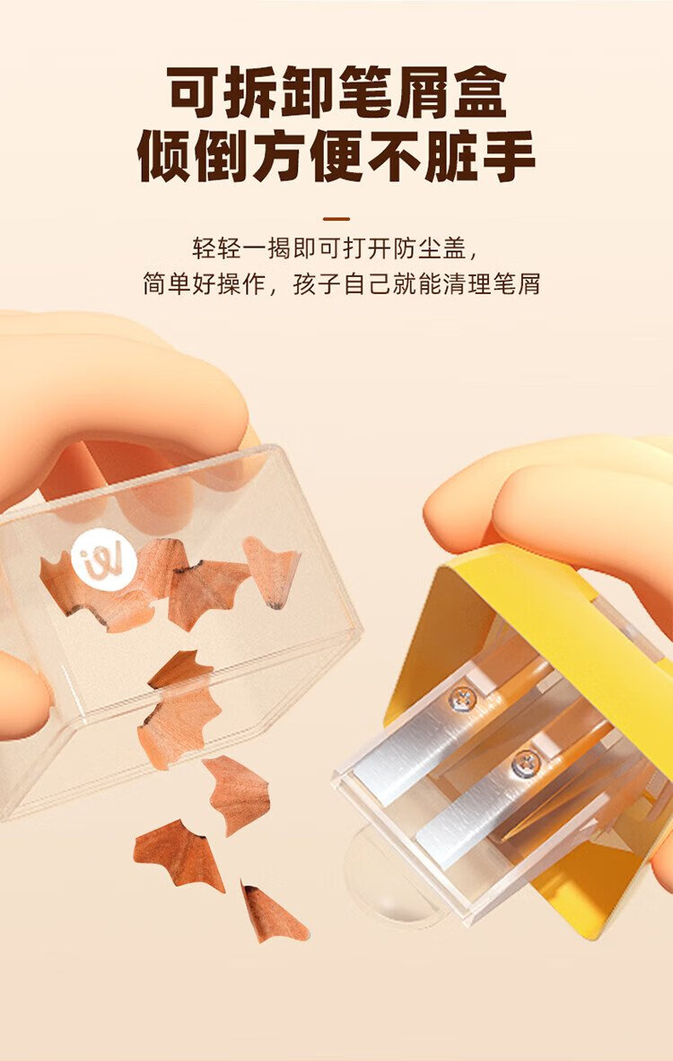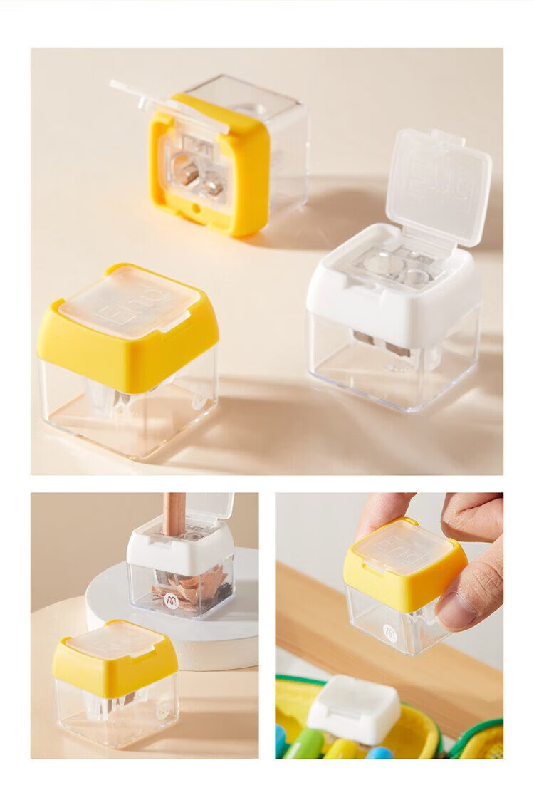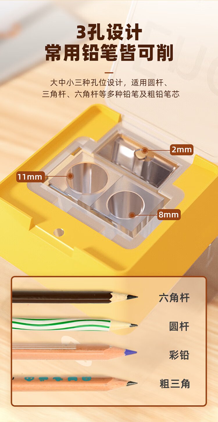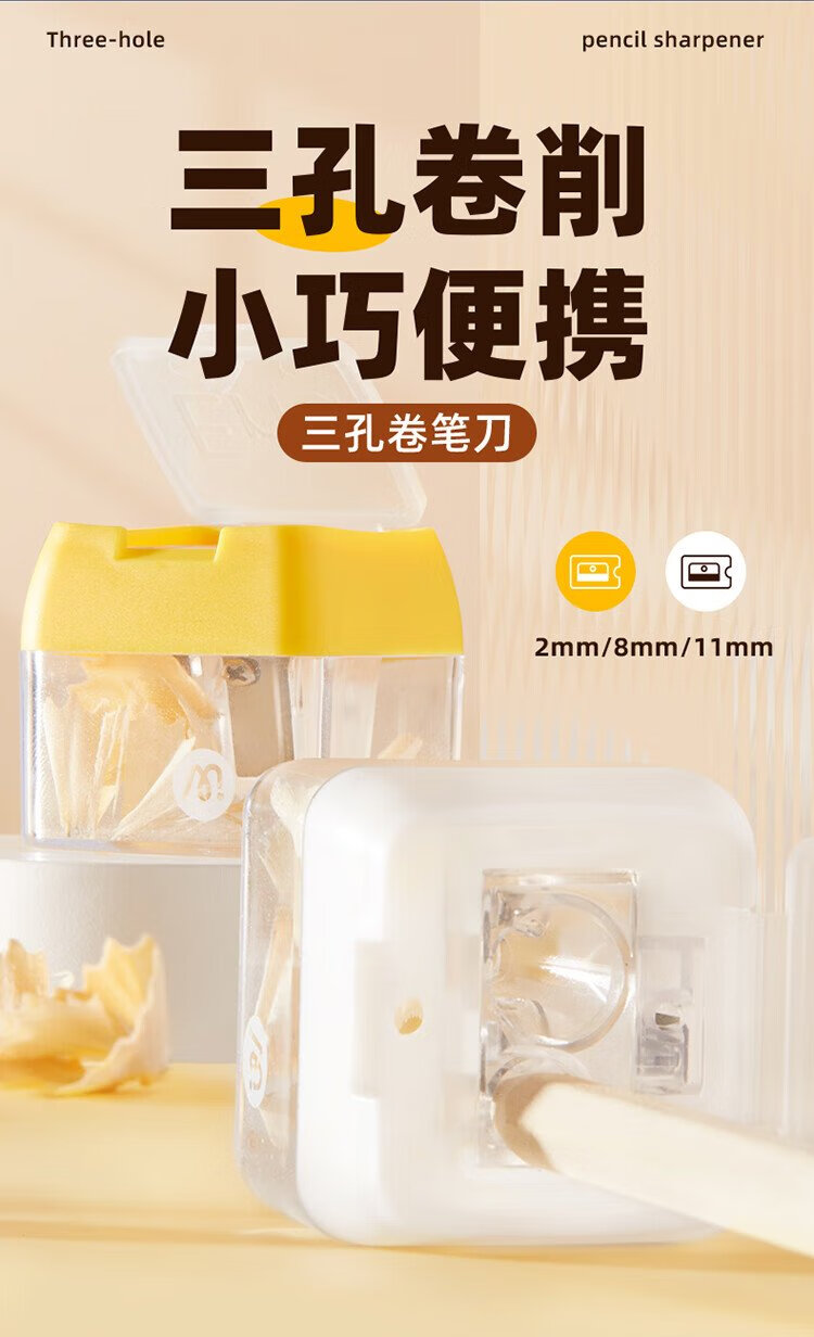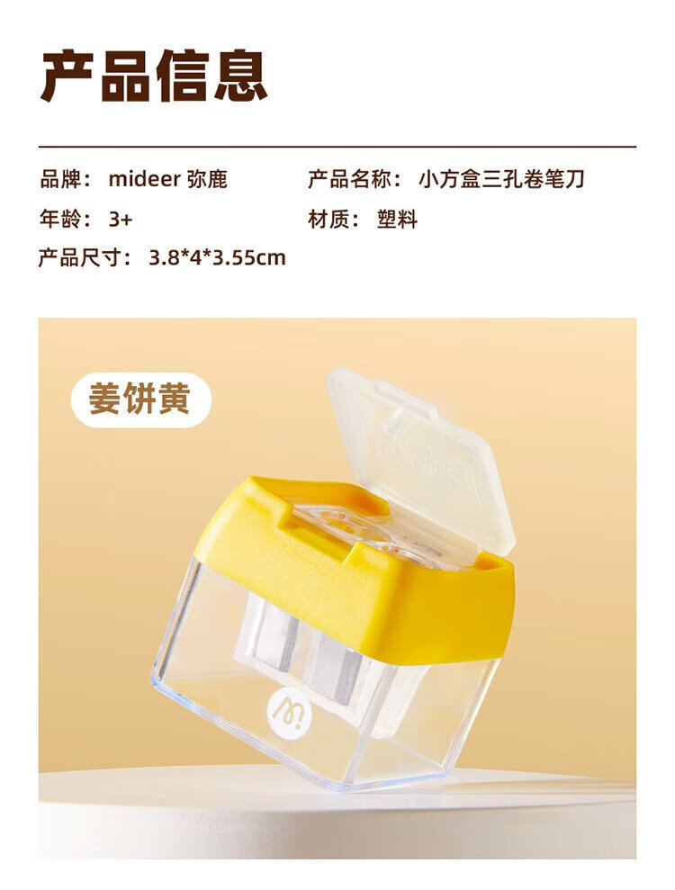 Mideer three-hole pencil sharpener, special pencil sharpener for primary school students, small pencil sharpener, special pencil sharpener for kindergarten children, 3-hole pencil sharpener - yellow 1 pack