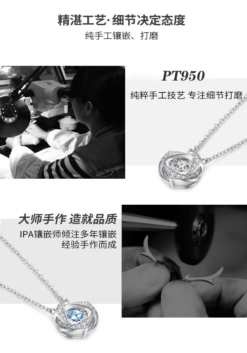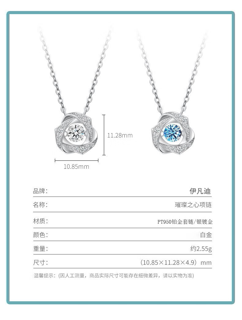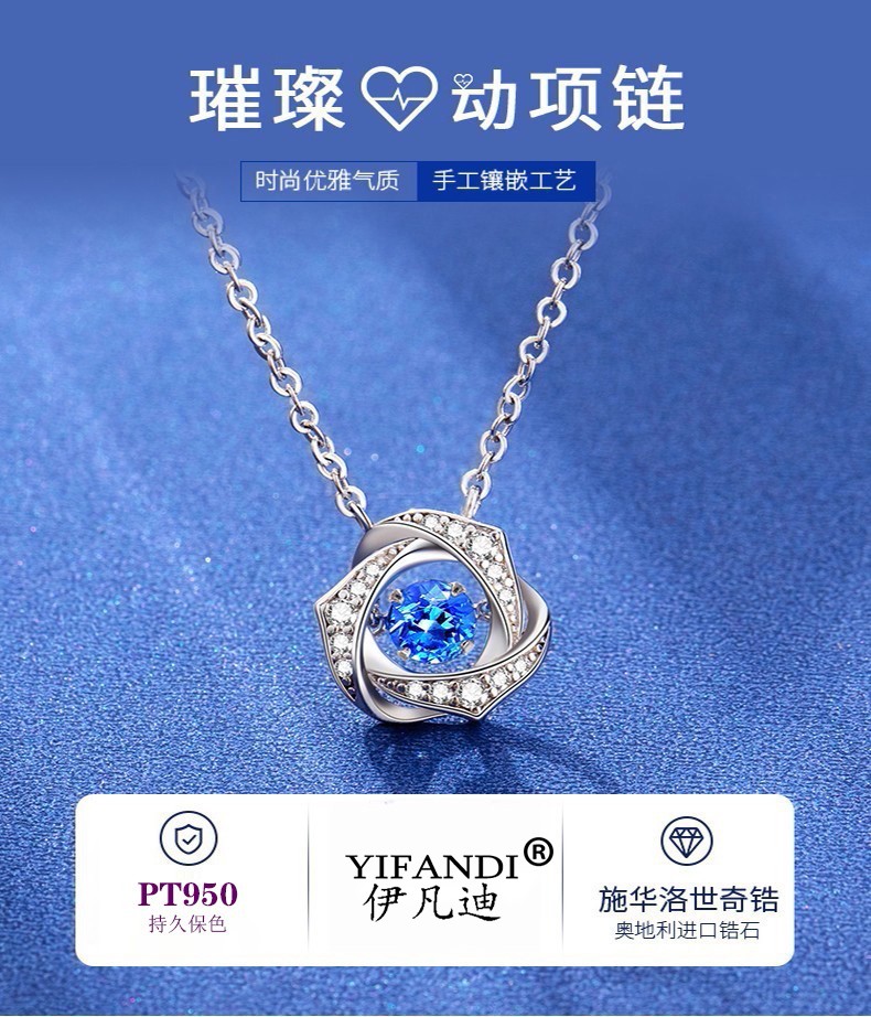 Ifandi platinum necklace for girls PT950 platinum fashion jewelry Chinese Valentine's Day birthday gift for girlfriend and wife Platinum beating heart necklace blue