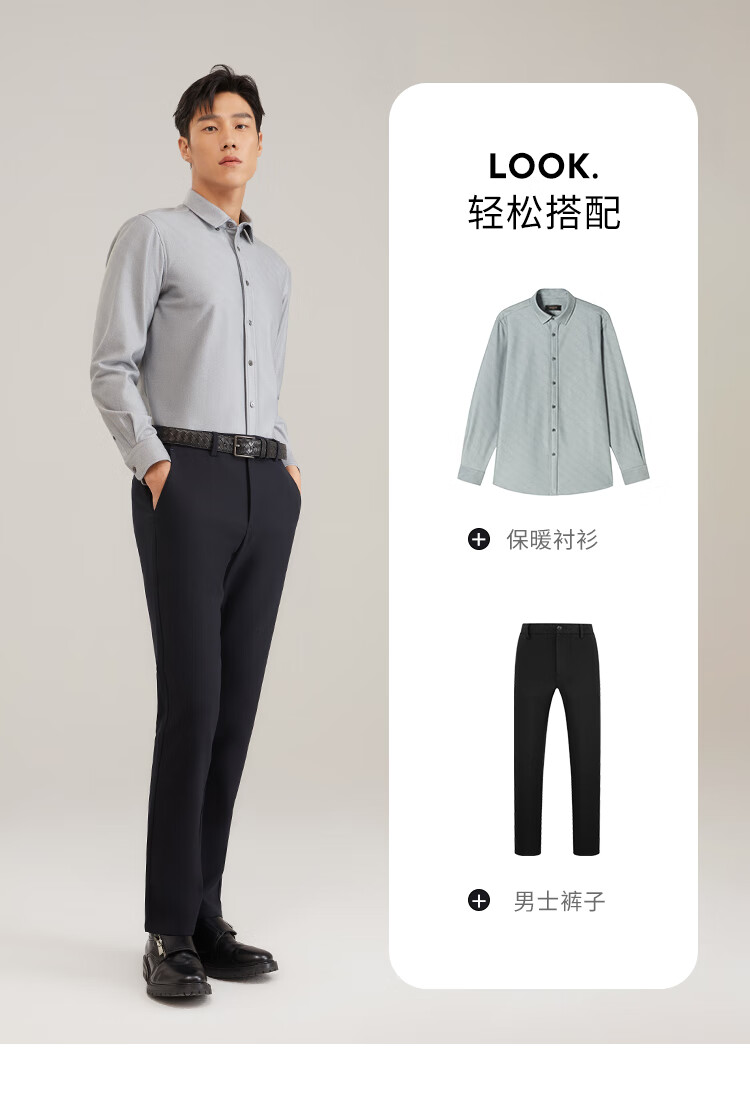 YOUNGOR рубашка с длинными рукавами мужская осенне-зимняя мужская терморубашка из смесовой ткани с термоподкладкой теплая и удобная серая VLBN119759DBA 41