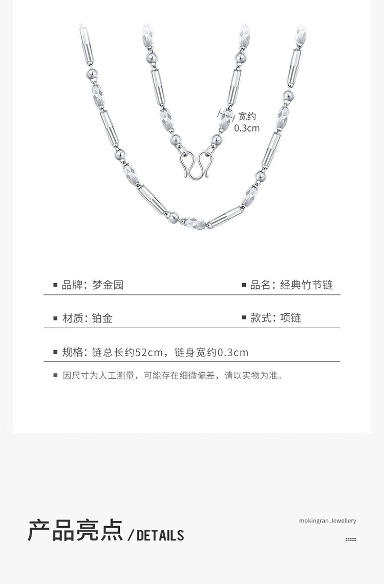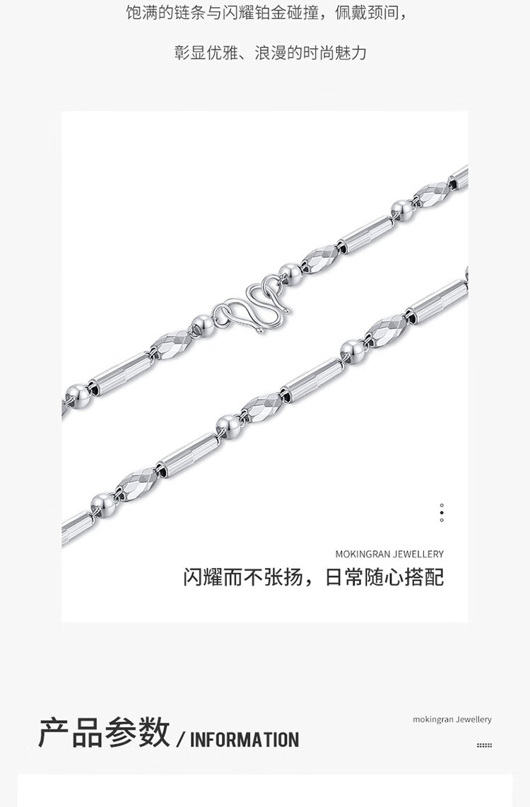 Mengjinyuan Platinum Necklace PT950 Platinum Olive Bead Necklace Domineering Boss Chain Looks Thick Gift for Boyfriend 52cm Approximately 12.14g