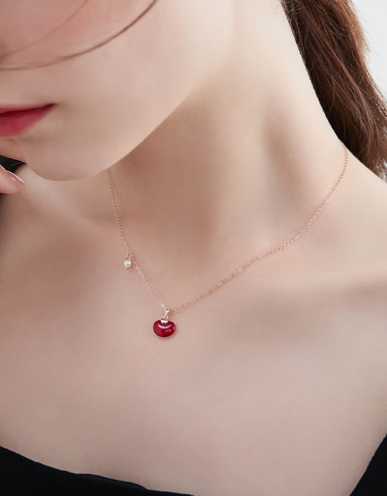 Farcoko Acacia Red Bean Necklace for Women Red Bean Pendant High-end Light Luxurious Clavicle Chain Heartfelt Birthday Gift for Girlfriend Fast Delivery in the Same City Acacia Red Bean Necklace